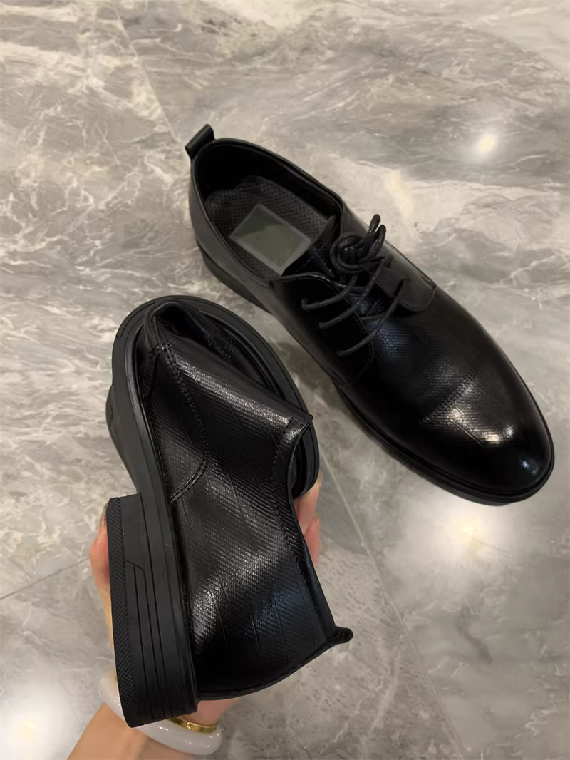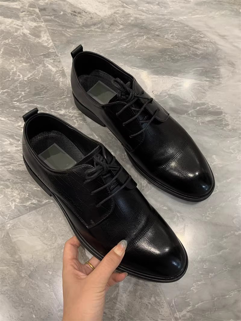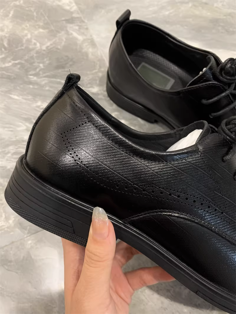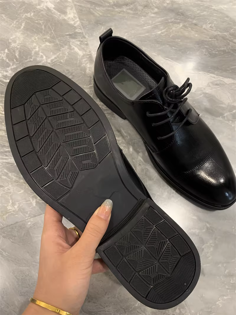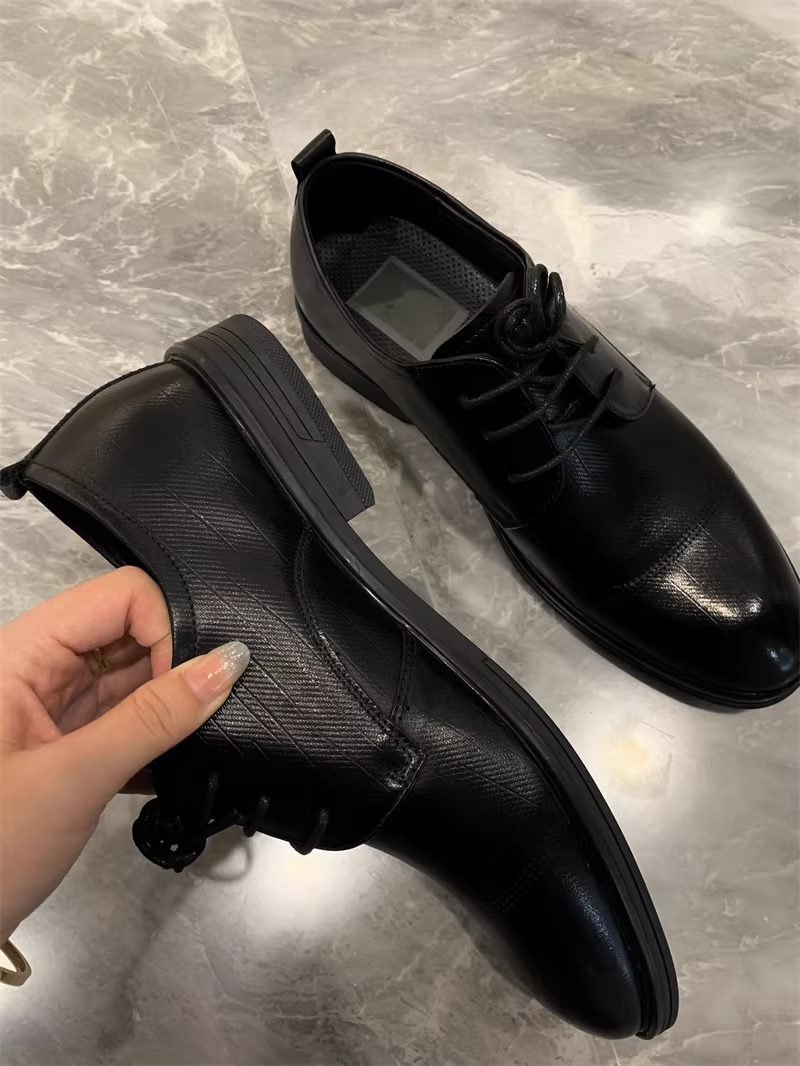 Da bò cao cấp Don Quixote! Độ bóng cao cấp + kết cấu tuyệt vời! Giày da buộc dây mũi tròn, phong cách kinh doanh lịch sự dành cho nam