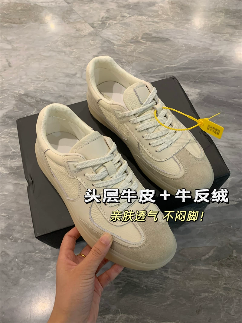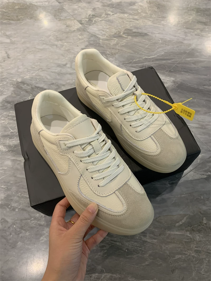 - Da bò lớp một Don Quixote + da lộn bò! Giày thể thao nhẹ, giản dị, đa năng, giày tập luyện của Đức, giày trắng dành cho nam.