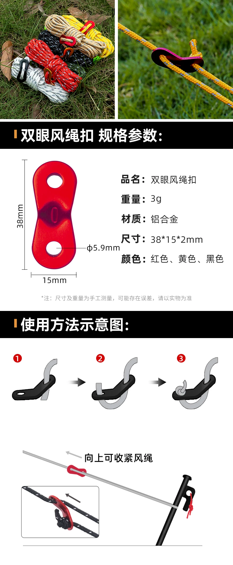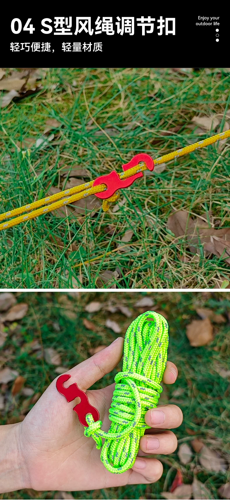 Dây buộc lều cắm trại ngoài trời, chống gió, khóa bằng hợp kim nhôm, dây kéo chữ S, khóa điều chỉnh, khóa dây đôi chống trượt