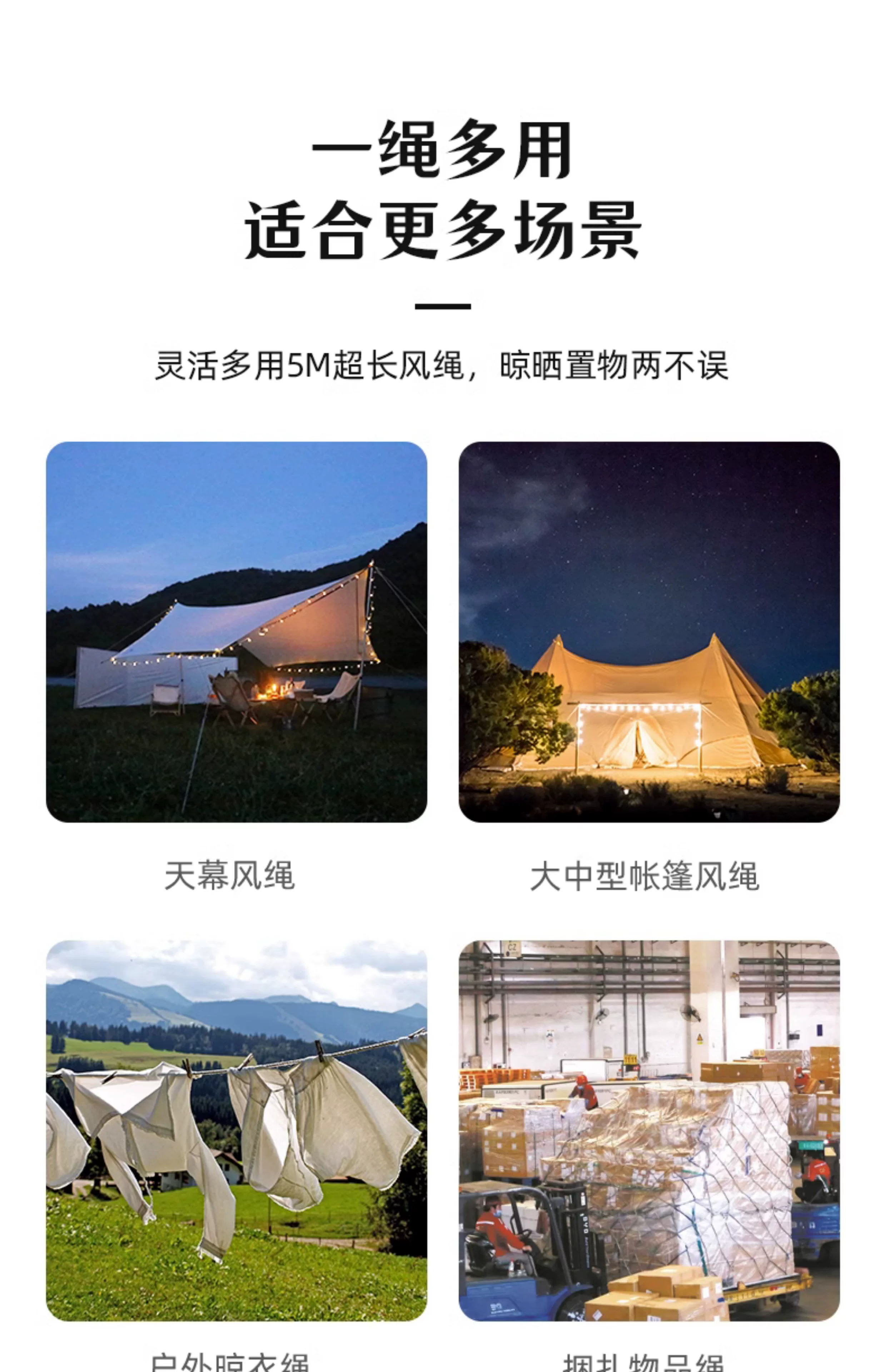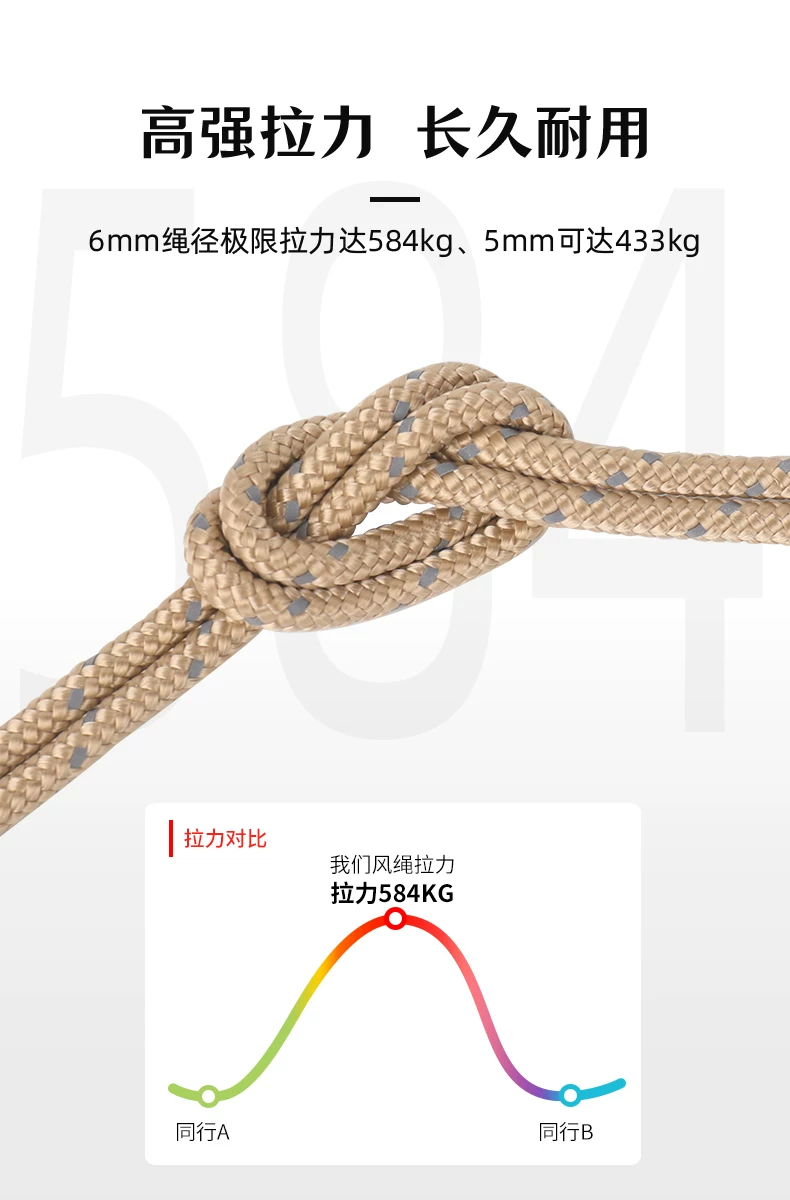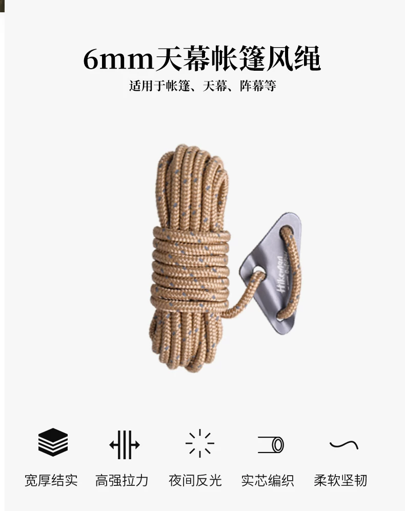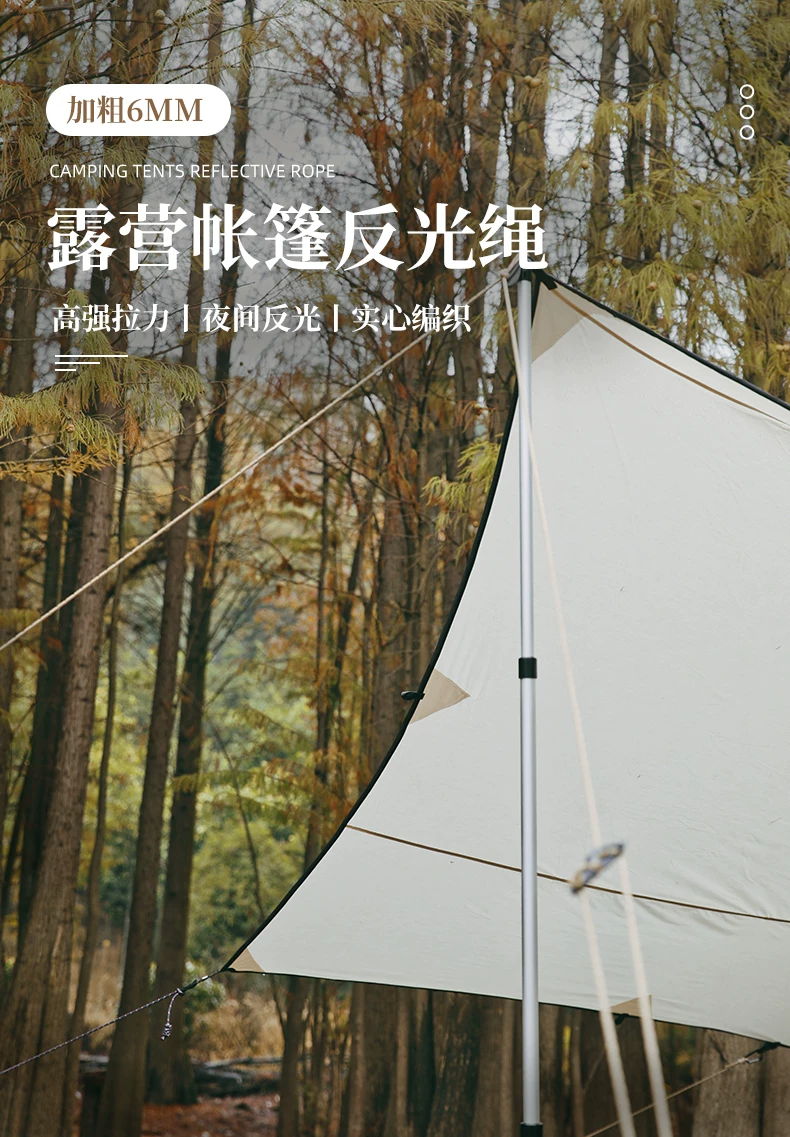 - Dây buộc lều ngoài trời dày 6mm, chống gió, dùng để cố định mái che cắm trại, có phản quang, khóa điều chỉnh hình tam giác, dây kéo