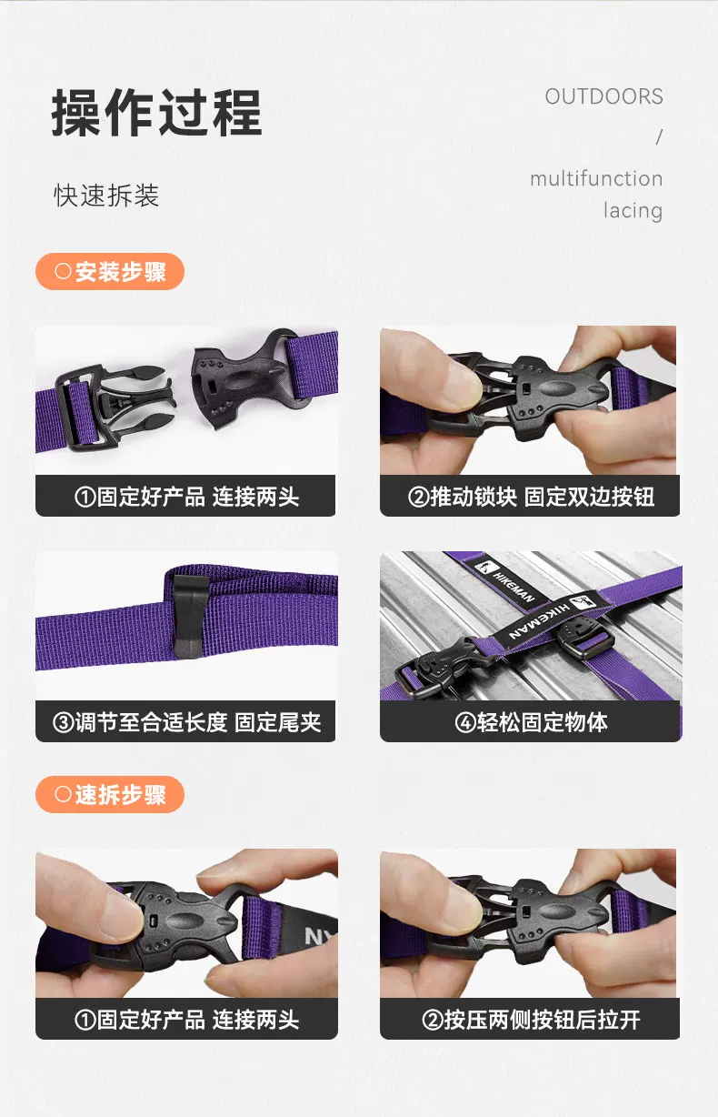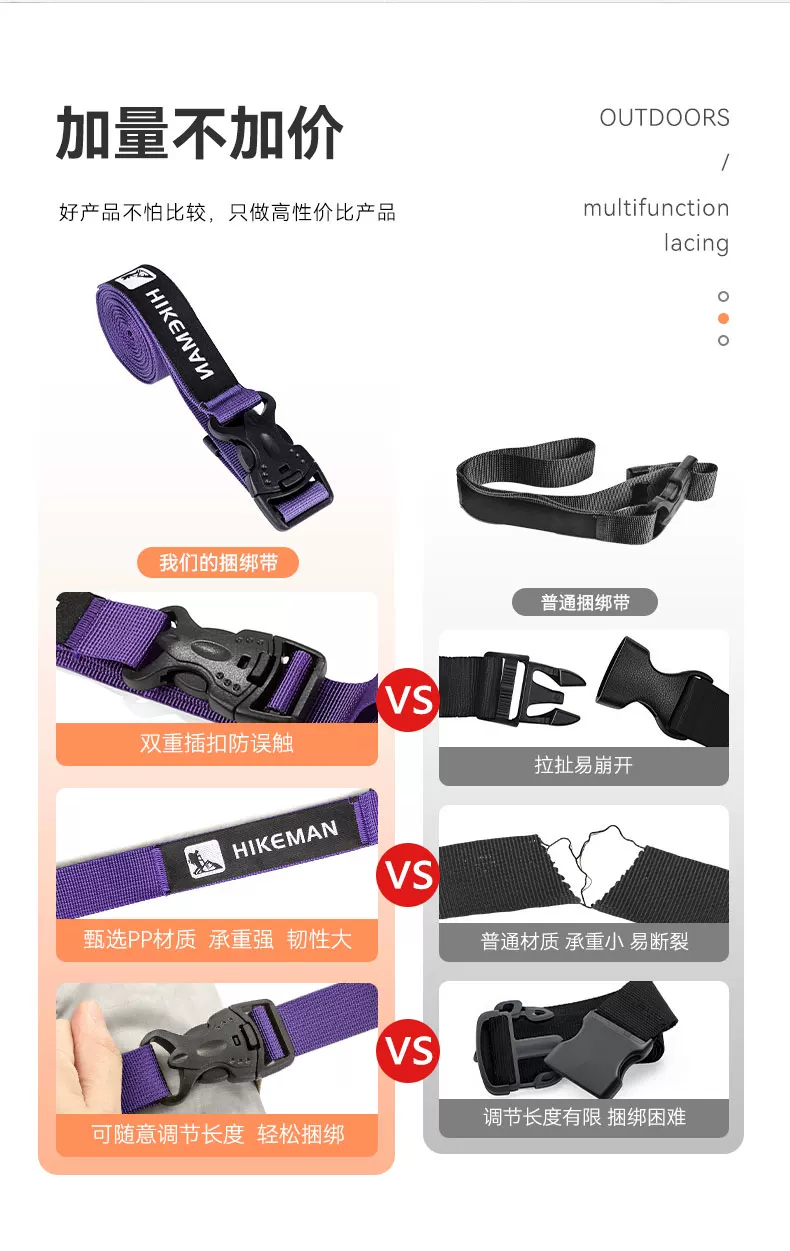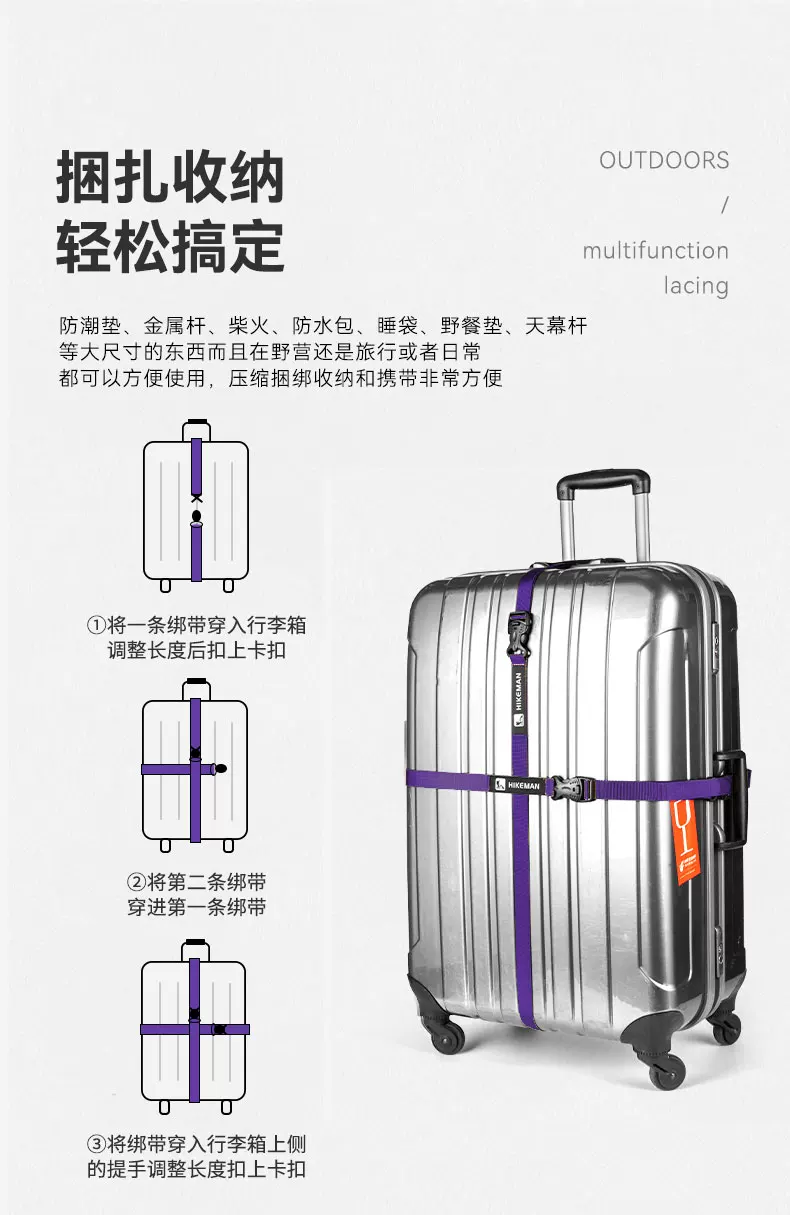 - Dây đai đa năng dùng cho hành lý, lều ngoài trời, ba lô, túi ngủ, buộc, cố định, siết dây, đóng gói thiết bị cắm trại