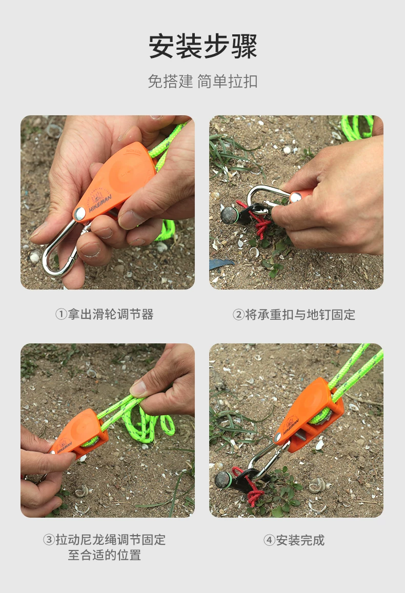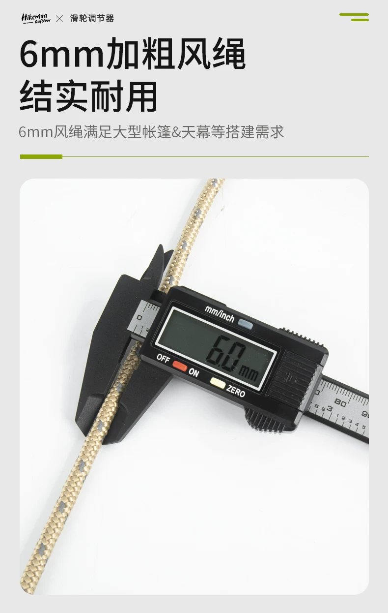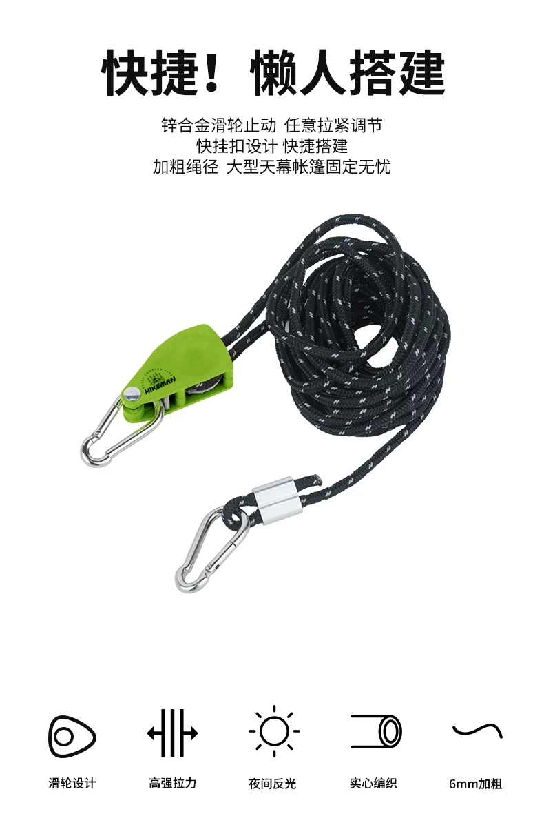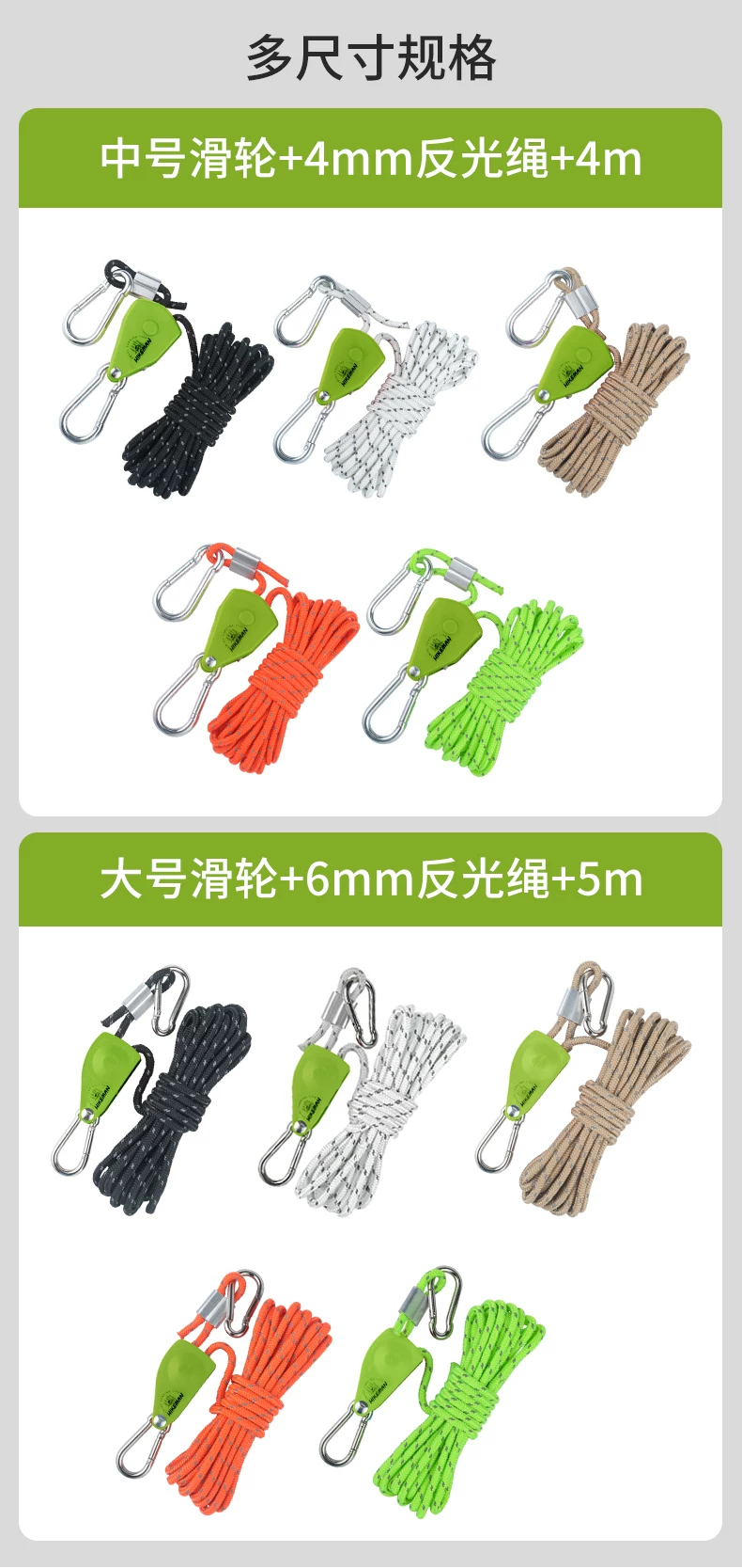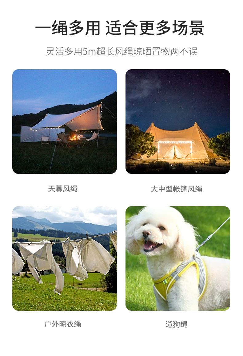 - Dây kéo dù ngoài trời phản quang chống trơn trượt, dày 6mm, có bộ điều chỉnh lực căng nhanh, dùng cho lều, mái che