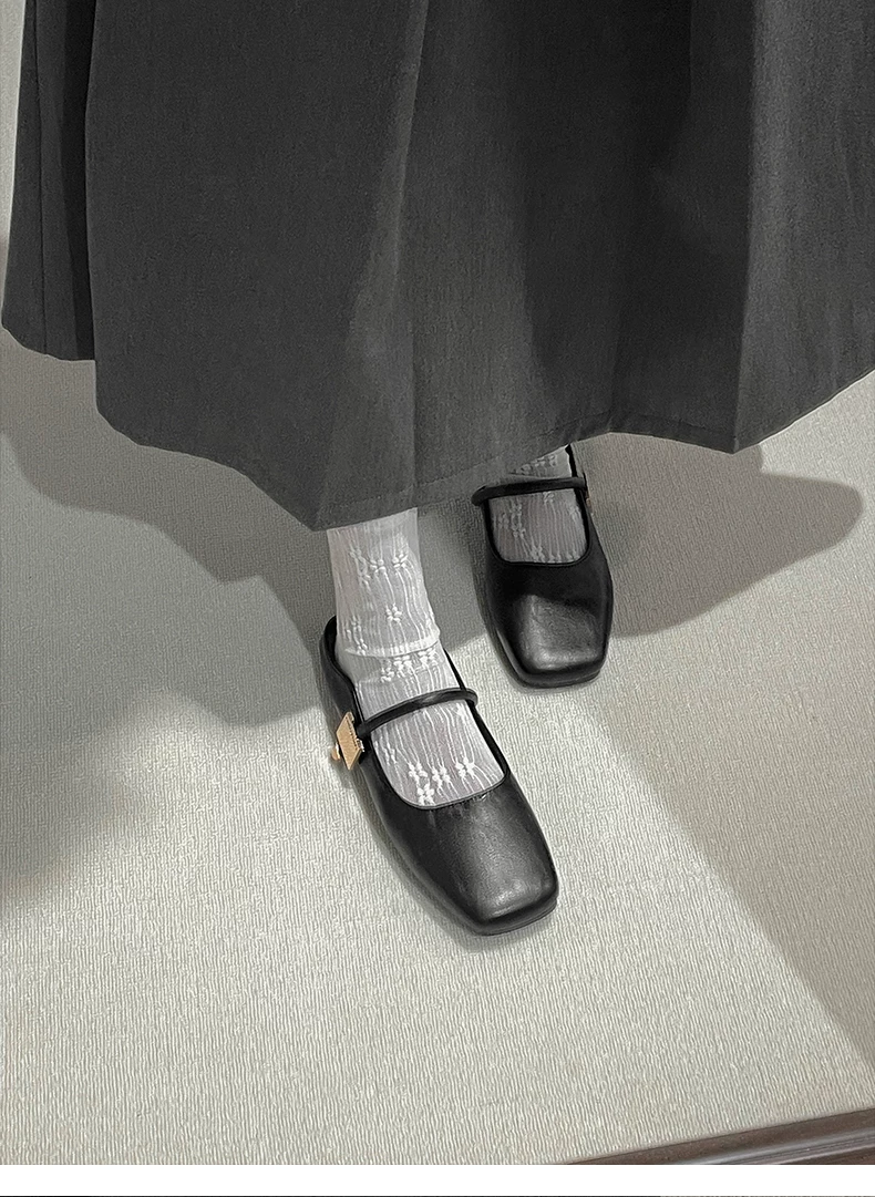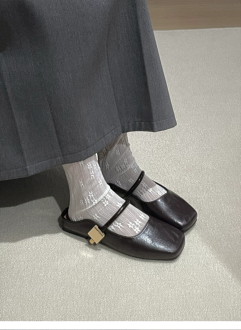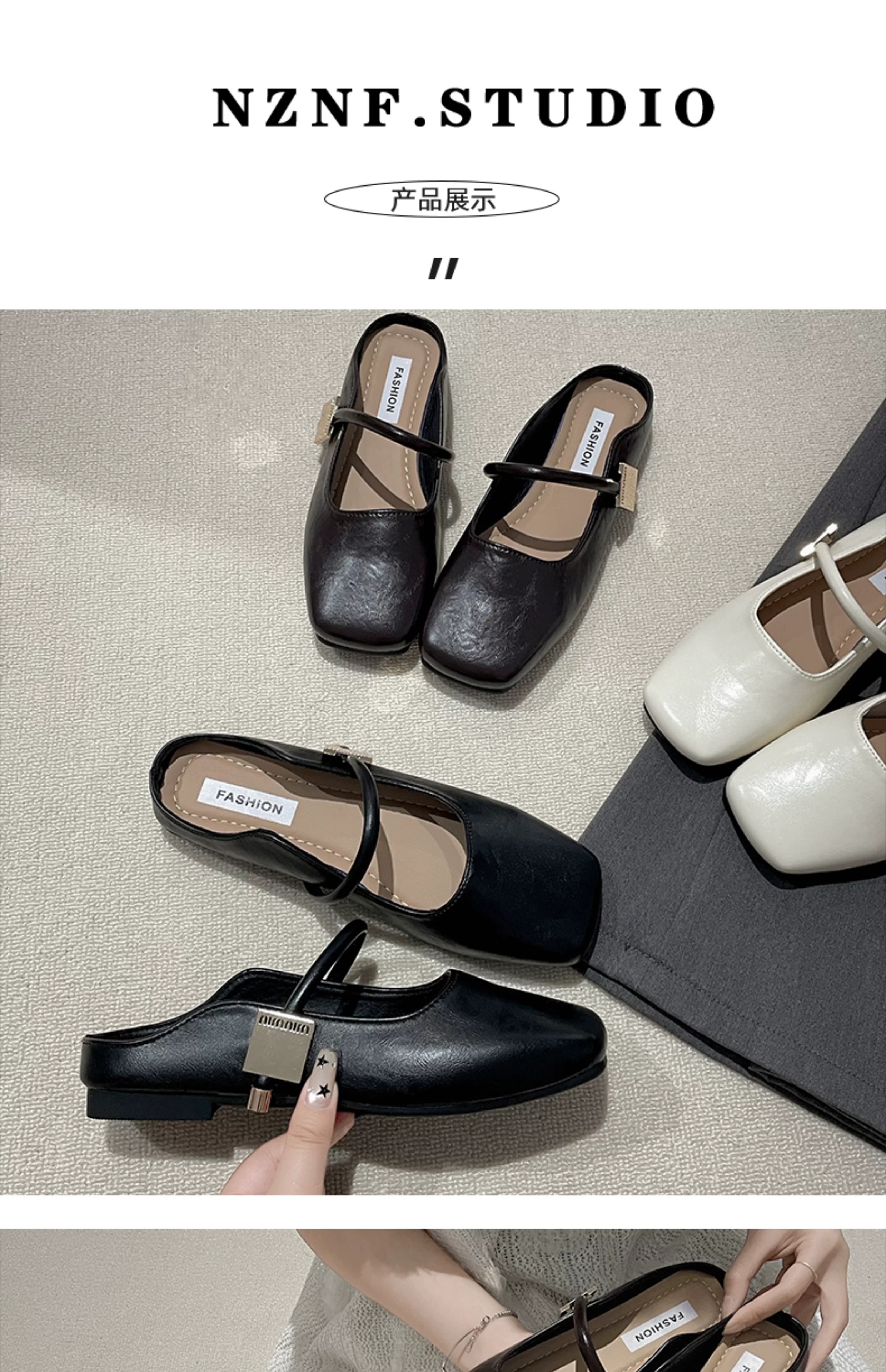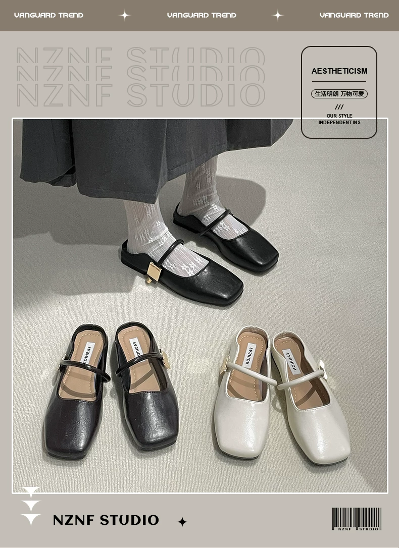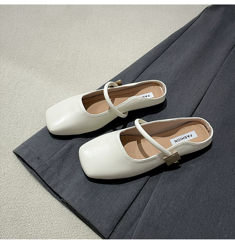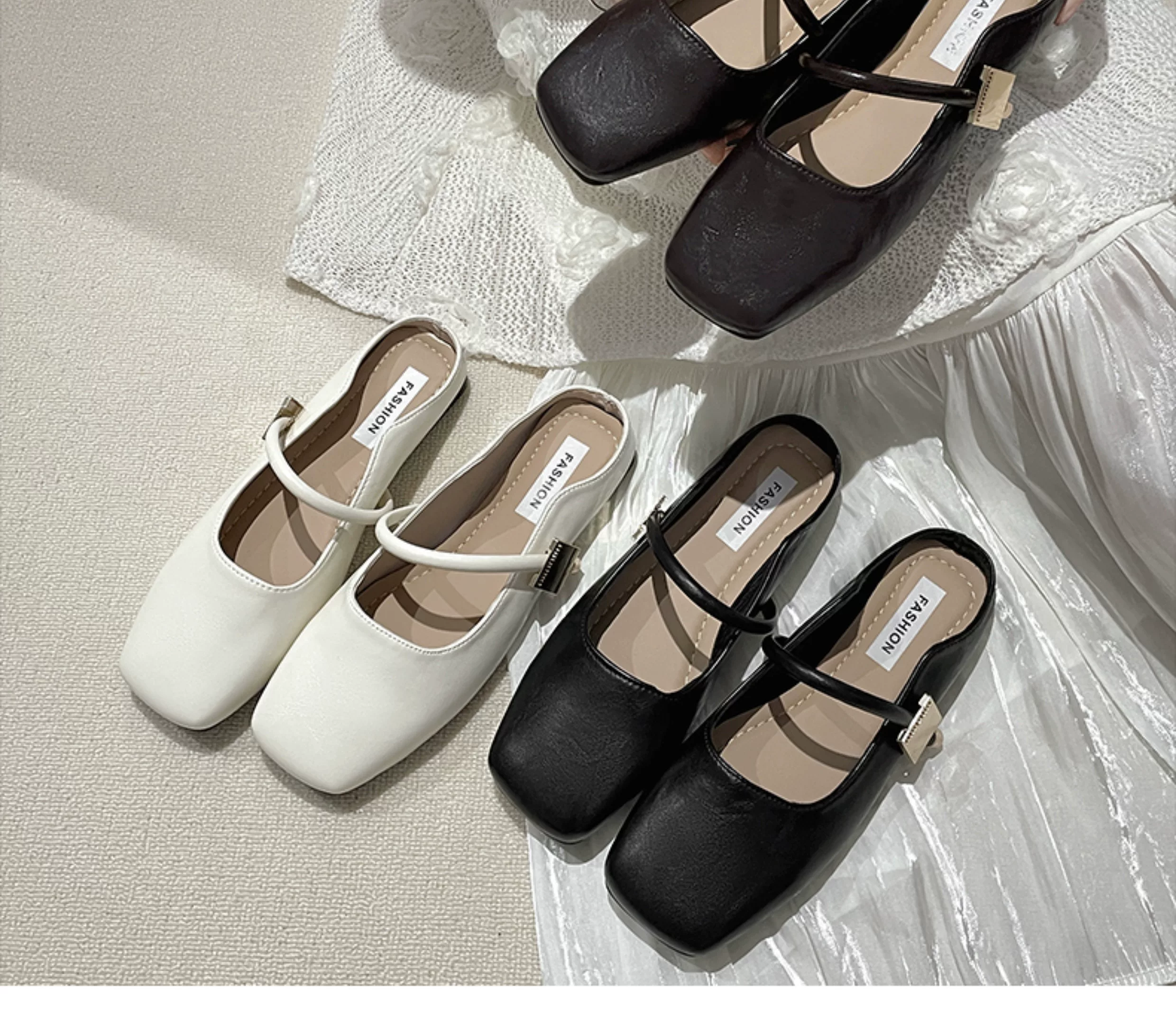 - Dép bệt đế bằng mũi kín kiểu retro đen tăng chiều cao dành cho nữ, đi ngoài trời mùa hè, kiểu mới 2025, dép quai ngang mũi vuông kiểu Pháp đế mềm.