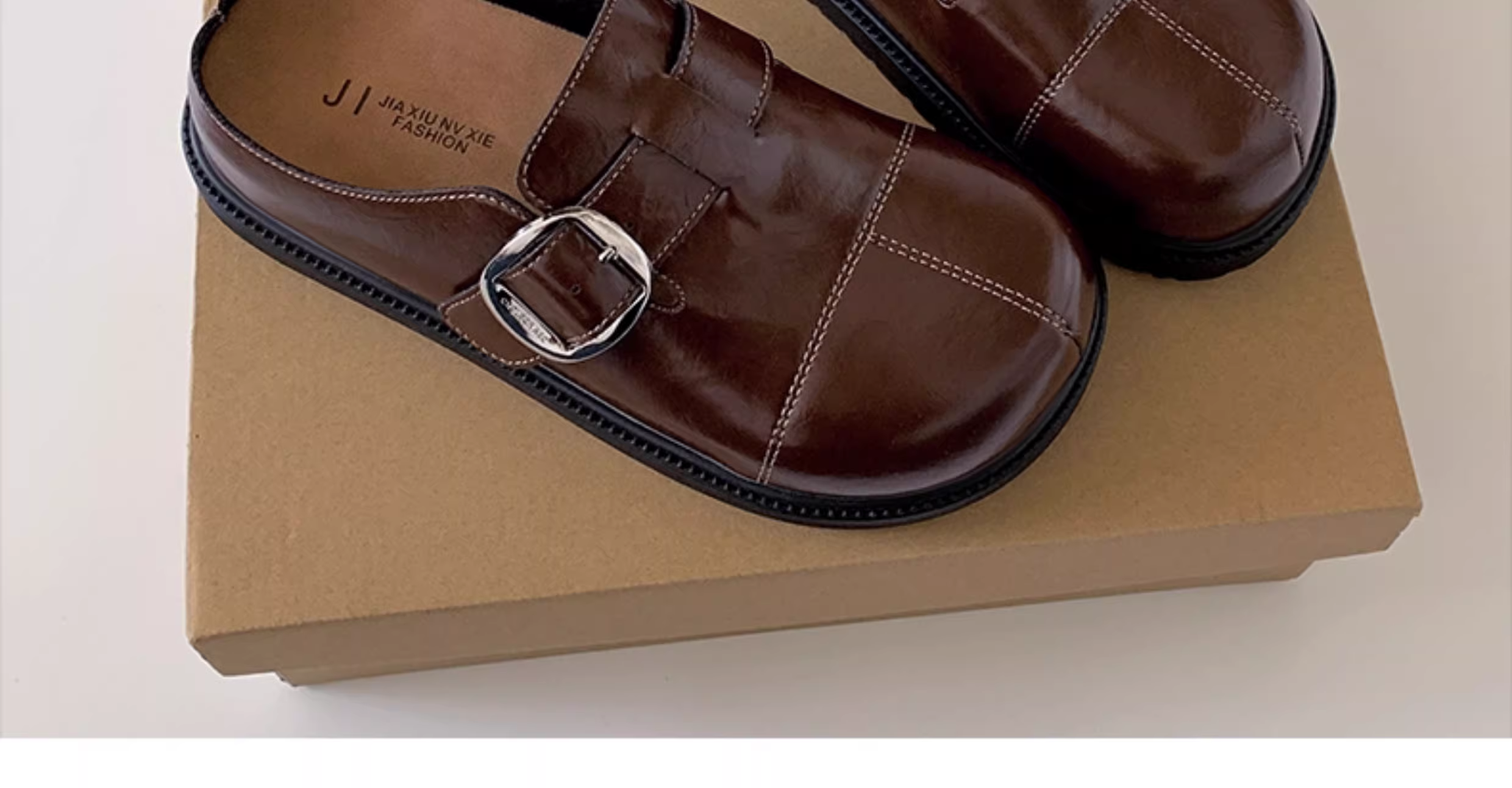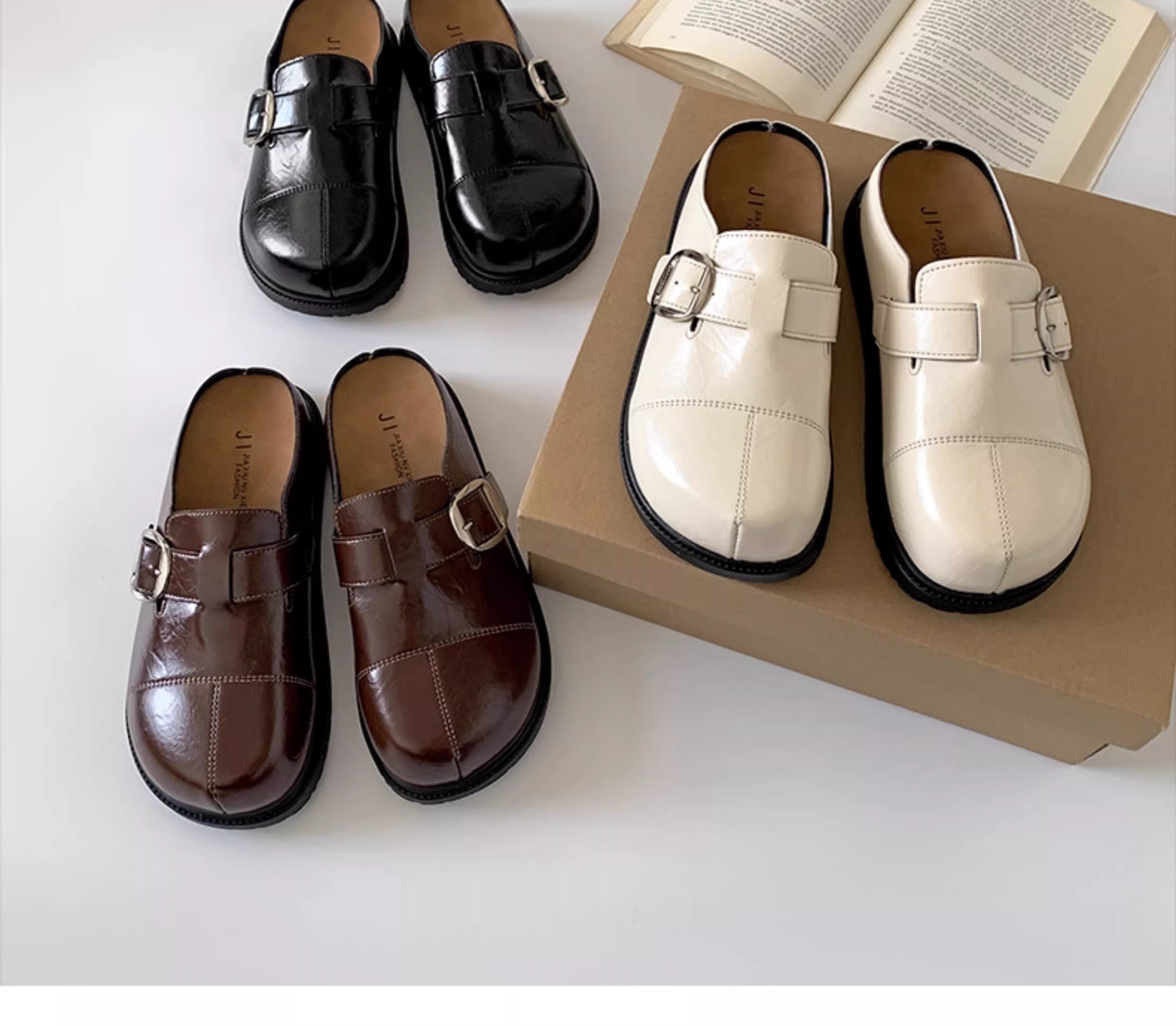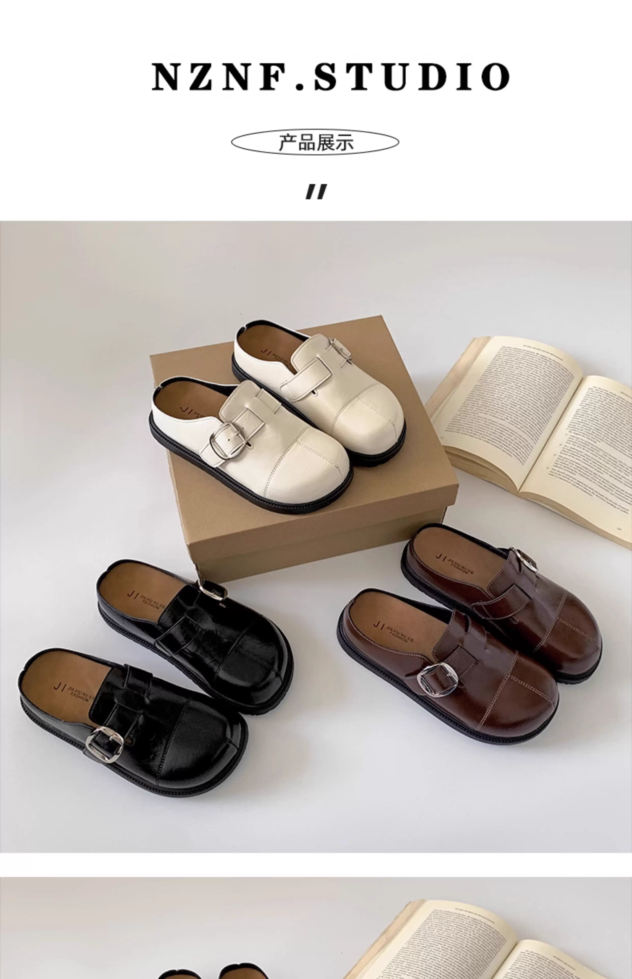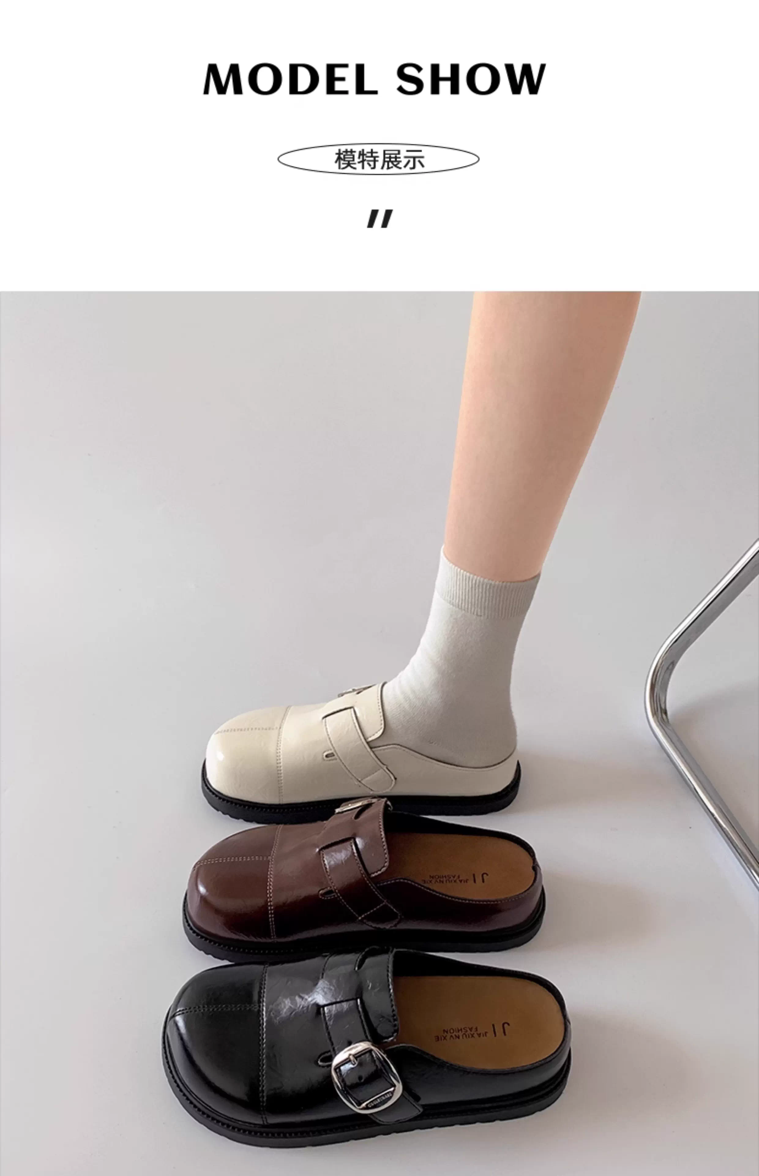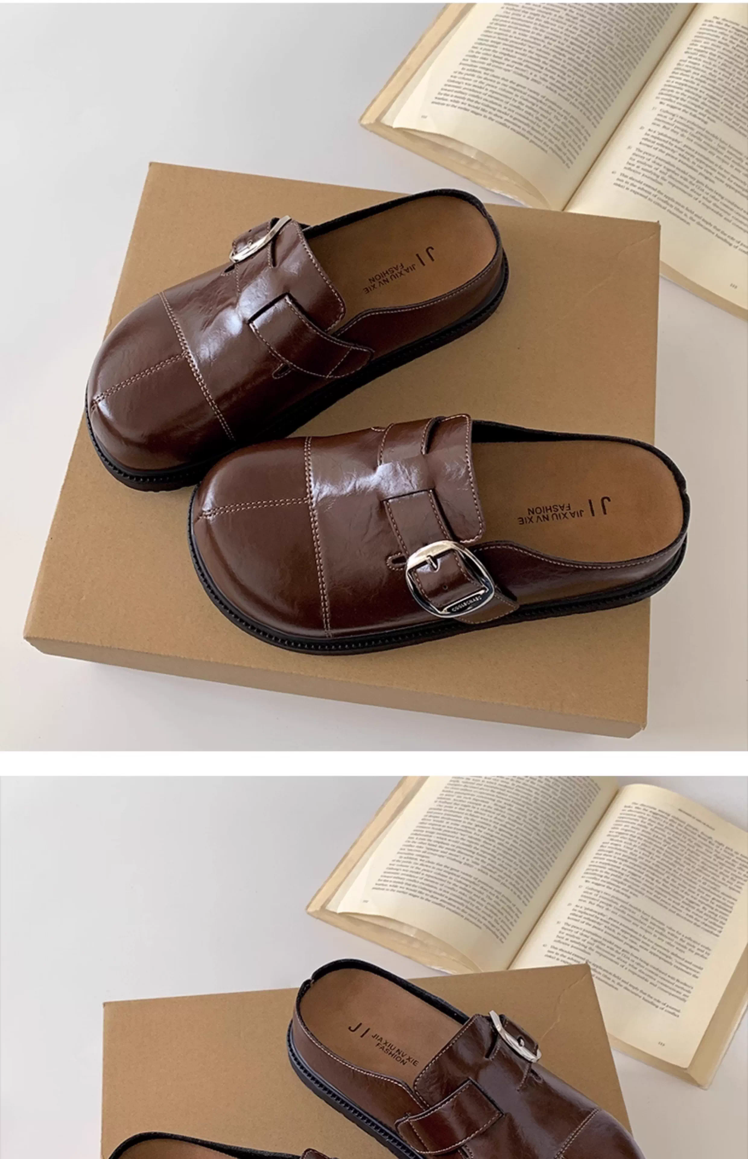 Dép bệt nữ màu trắng cổ điển, chống trơn, mũi kín, kiểu mới mùa thu 2025, đế mềm tăng chiều cao, kiểu Birkenstock.