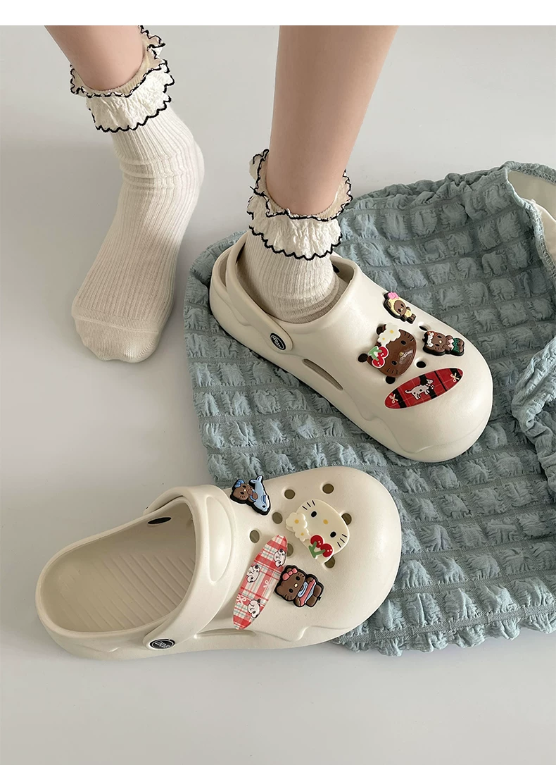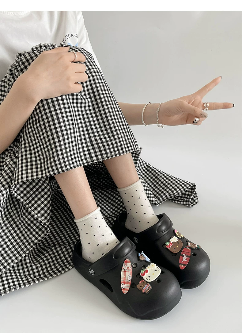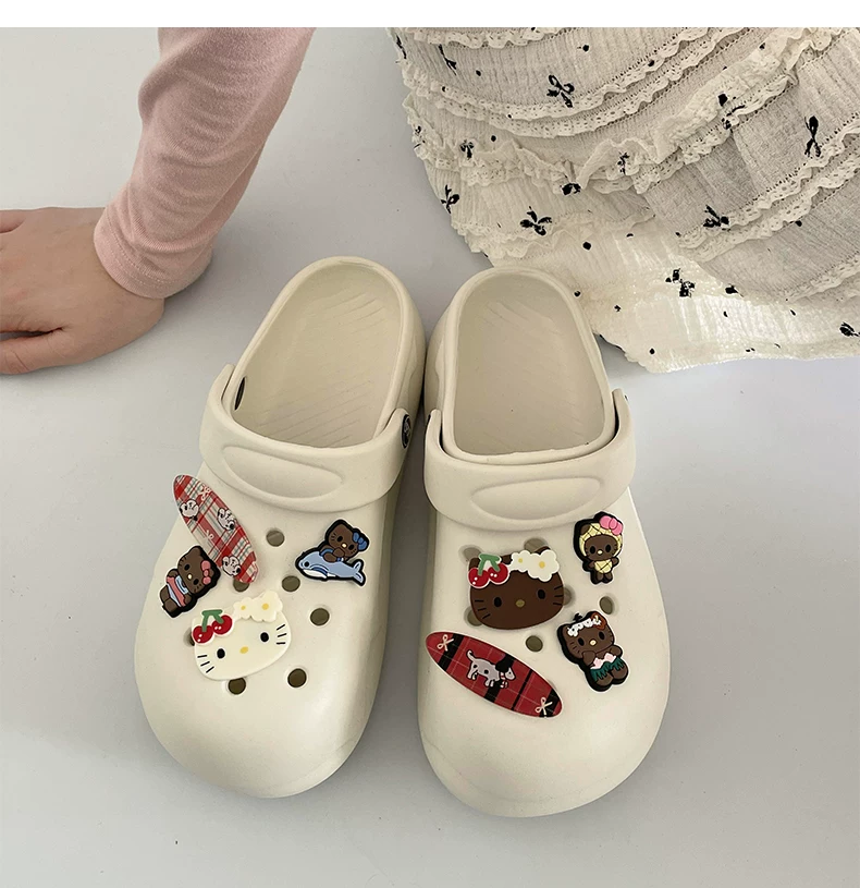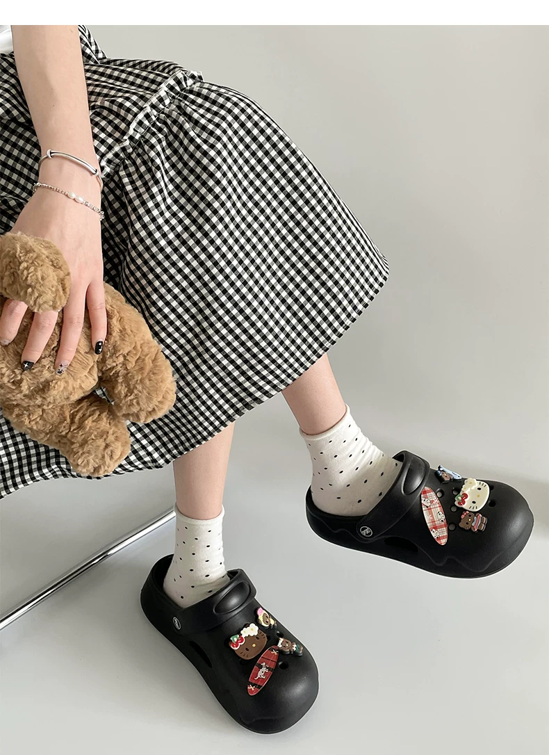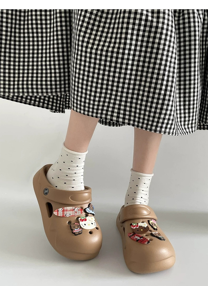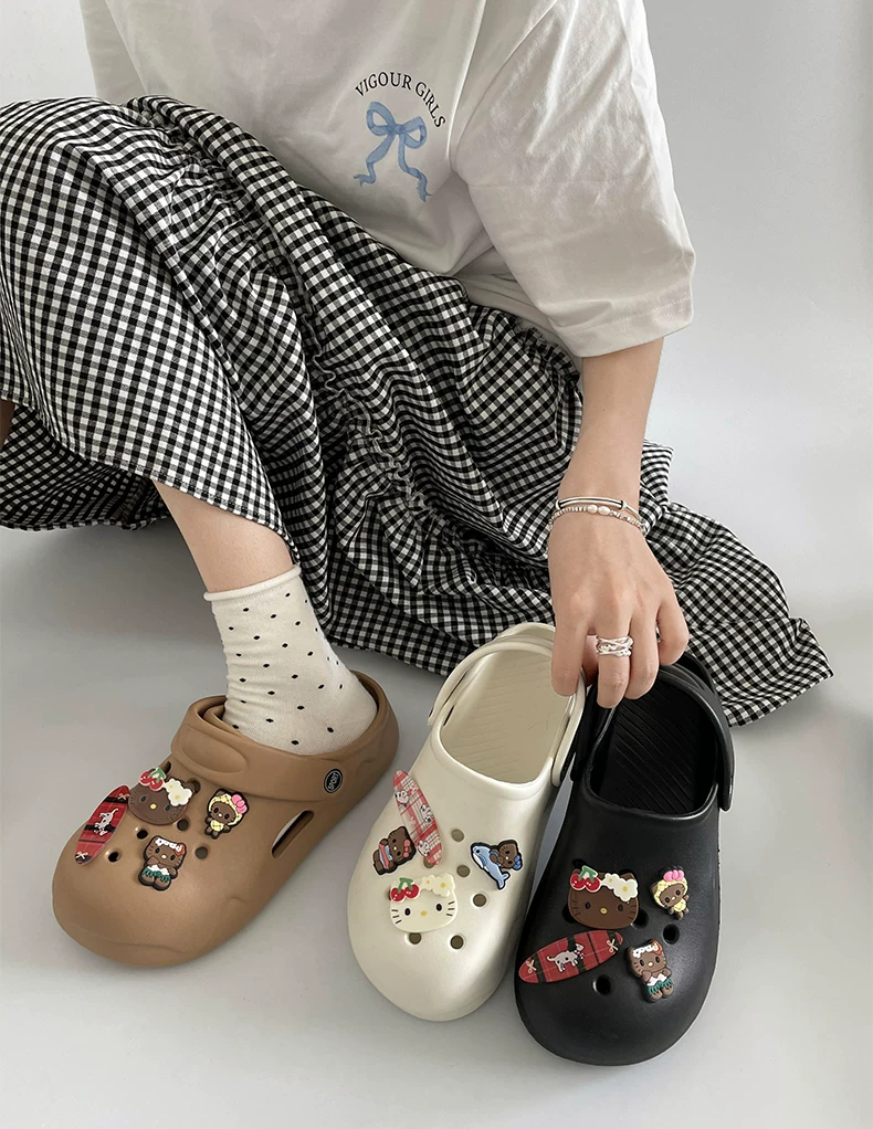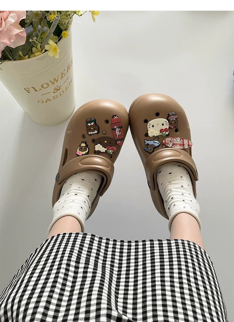 Dép clog đế dày siêu hot của người nổi tiếng mạng xã hội, mẫu mới hè 2025, đi ngoài trời, dễ thương và thoải mái, kiểu kín mũi.