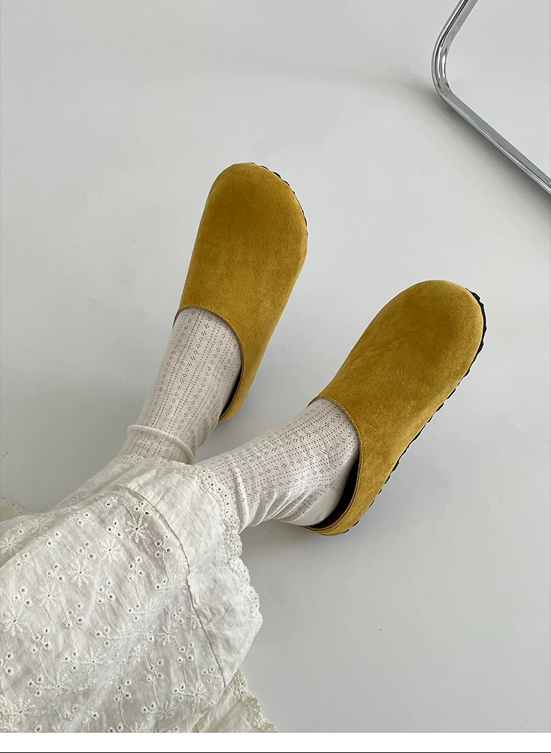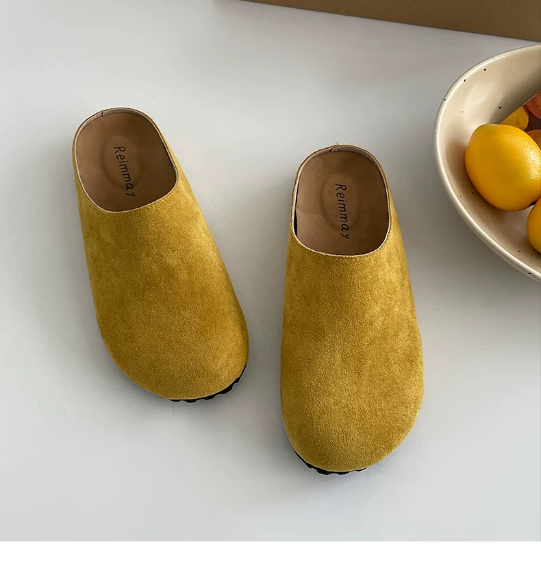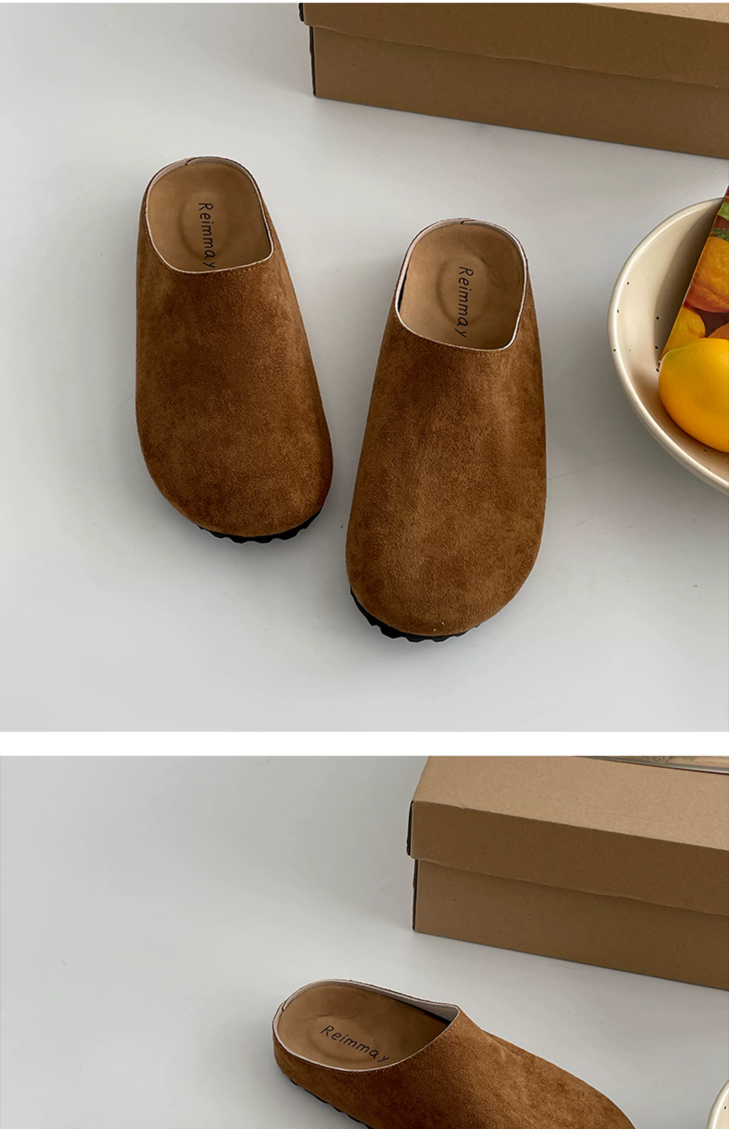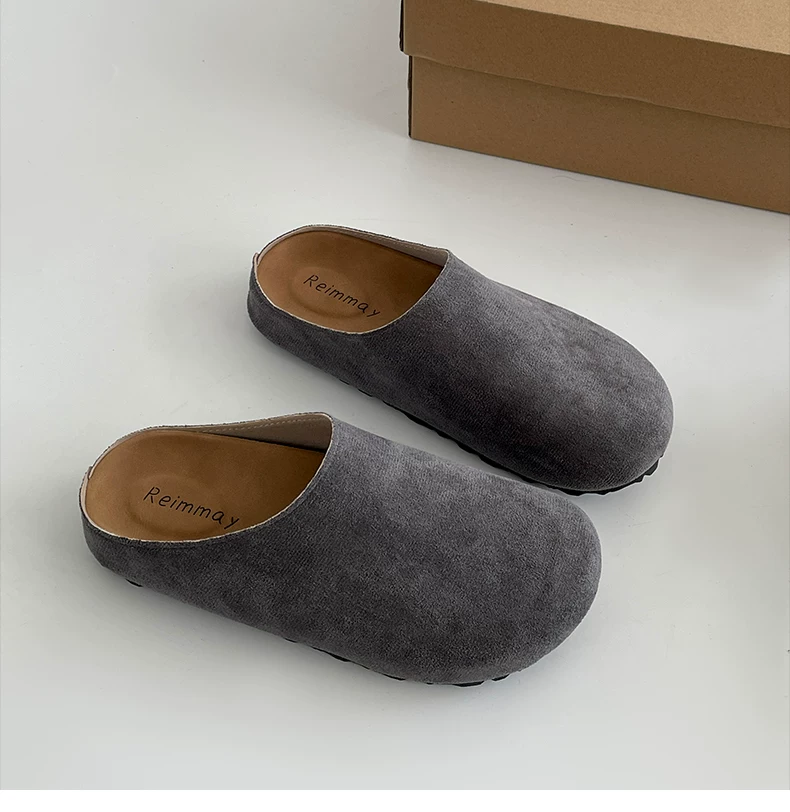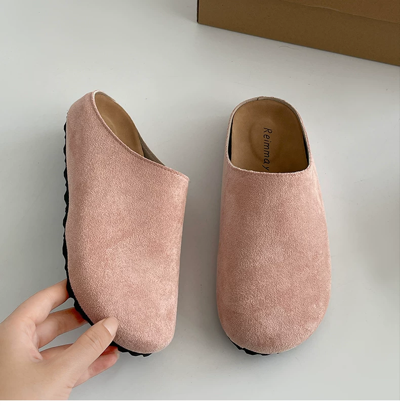 Dép đế bằng phong cách retro màu trắng có đế nâng chiều cao ẩn dành cho nữ, thích hợp để mang ngoài trời, giày Birkenstock đế mềm nửa đế kiểu mới mùa thu đông 2025.