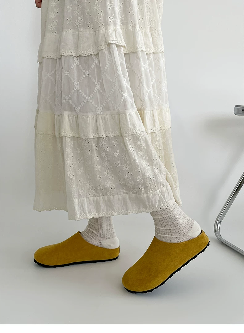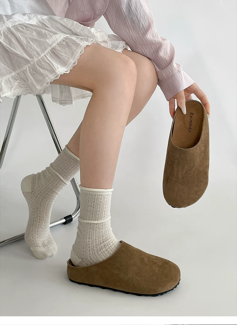 - Dép đế bằng phong cách retro màu trắng có đế nâng chiều cao ẩn dành cho nữ, thích hợp để mang ngoài trời, giày Birkenstock đế mềm nửa đế kiểu mới mùa thu đông 2025.