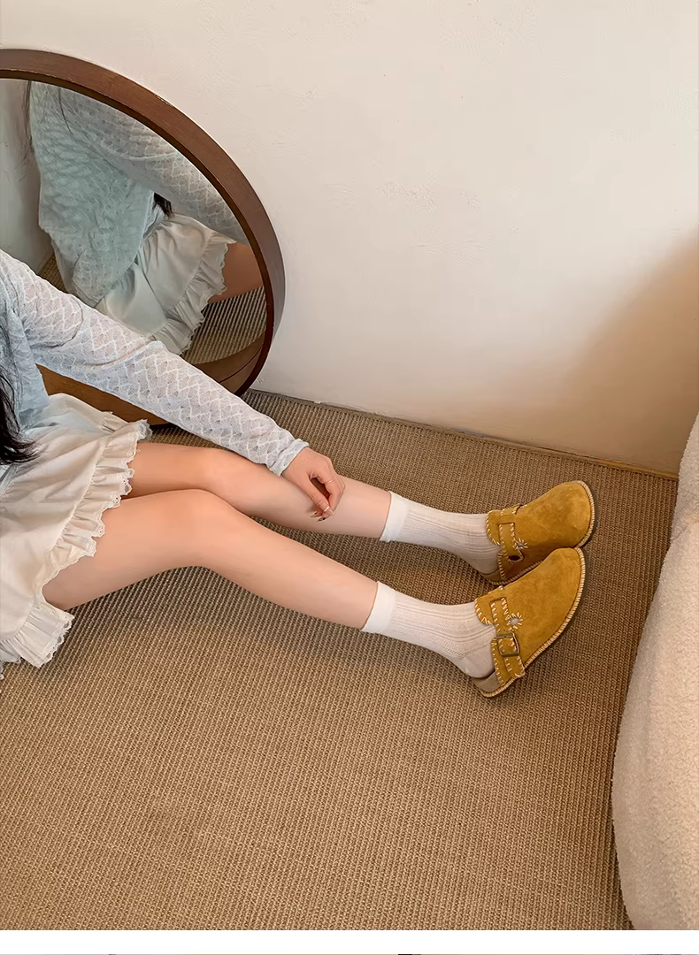 - Dép lê mũi tròn kiểu retro phổ biến dành cho nữ, áo khoác ngoài mùa thu, giày Birkenstock nửa đế màu hồng đa năng chống trơn trượt mới năm 2025