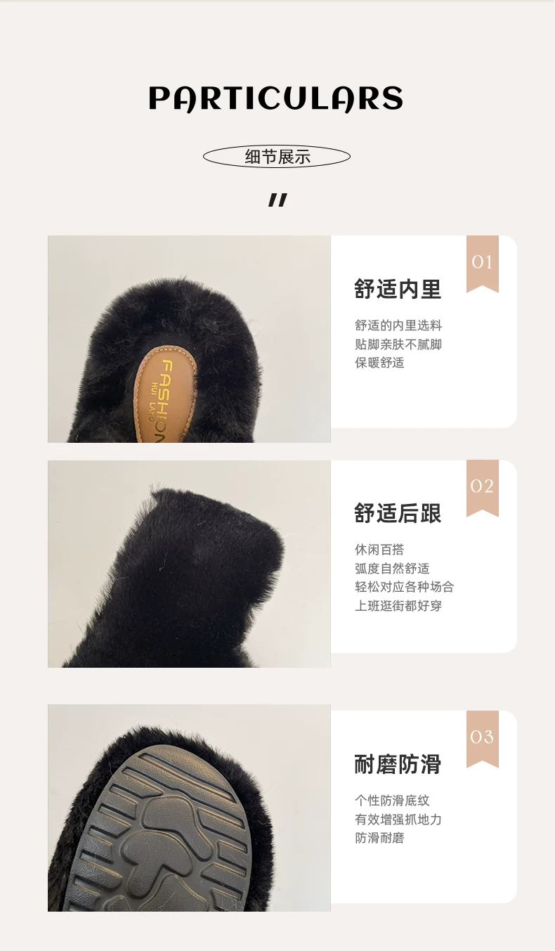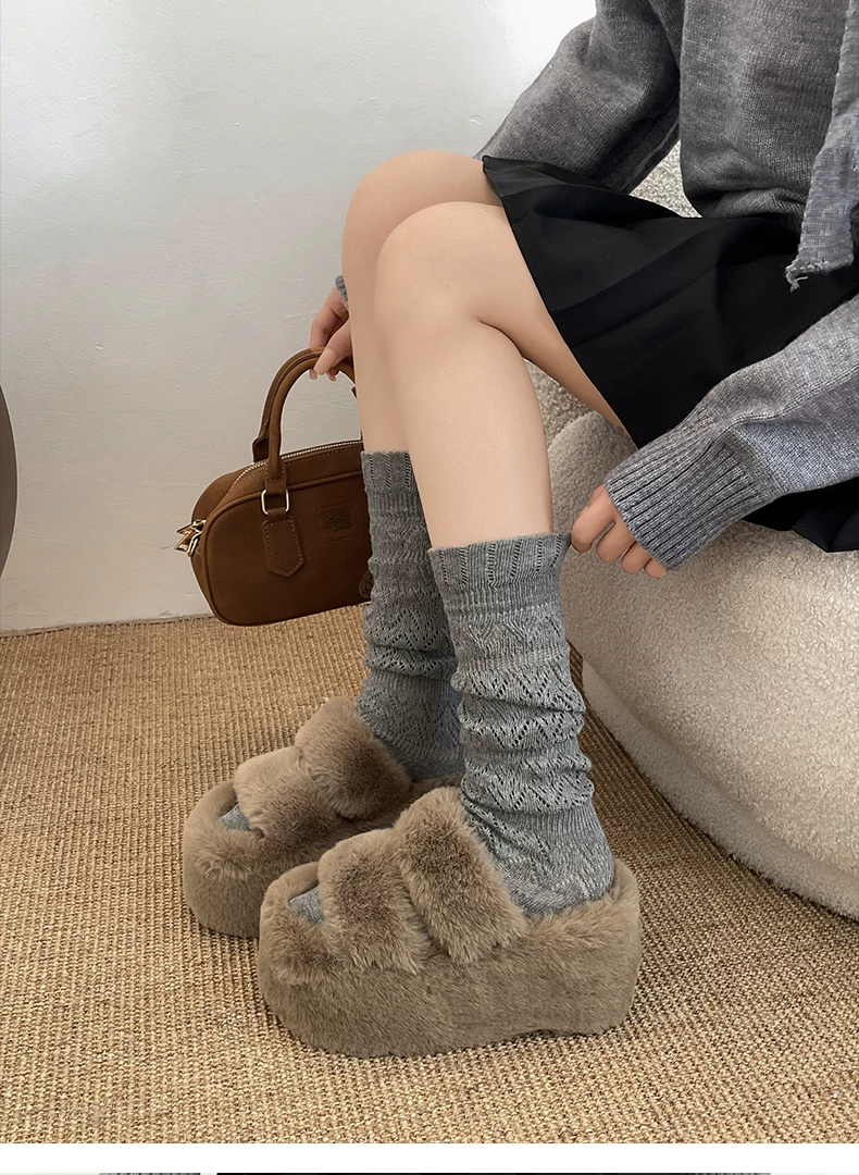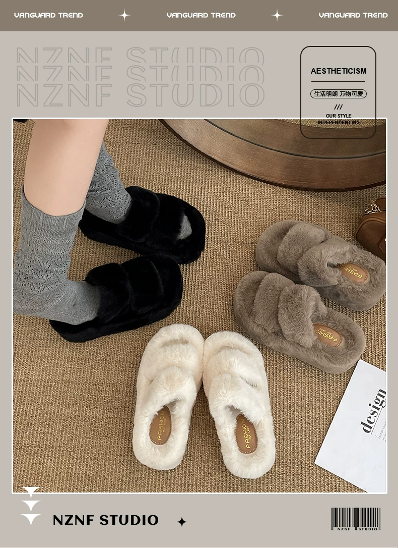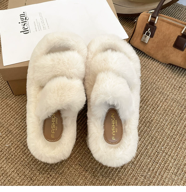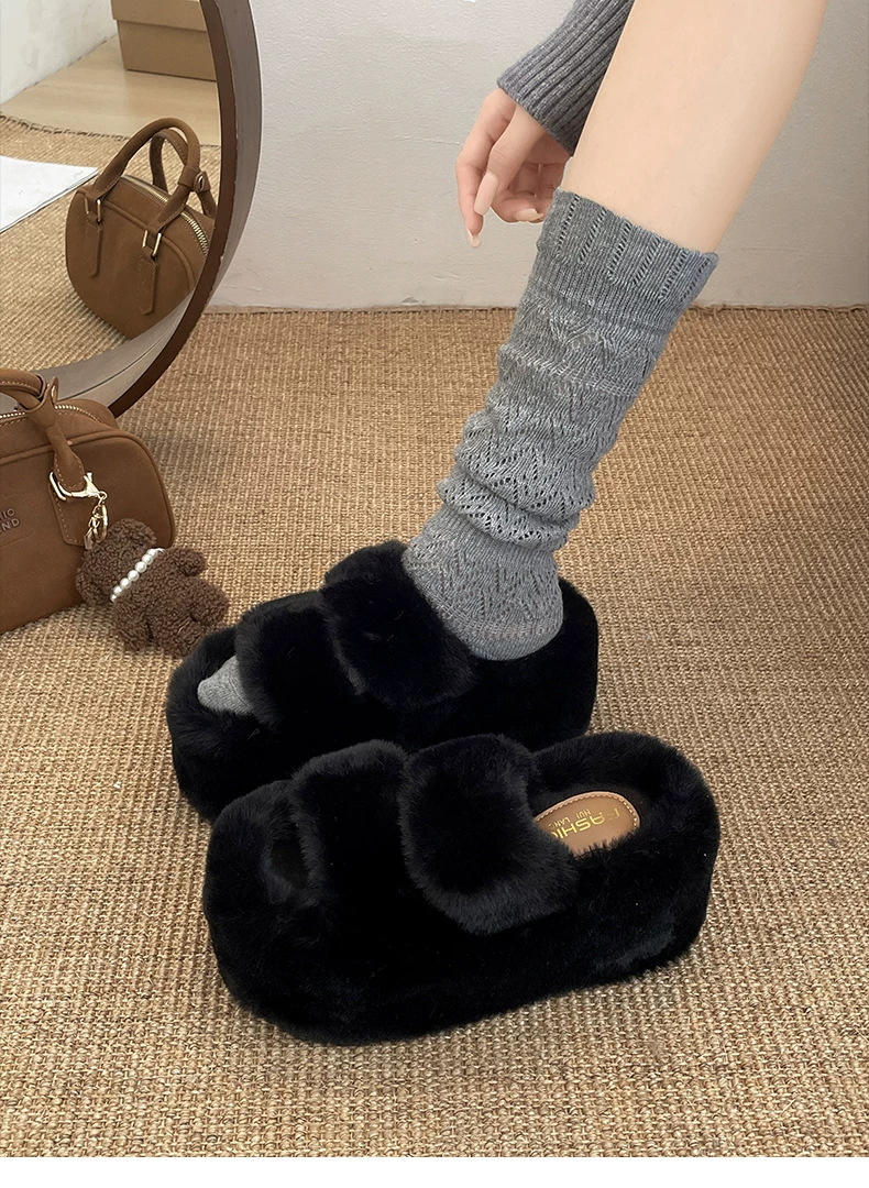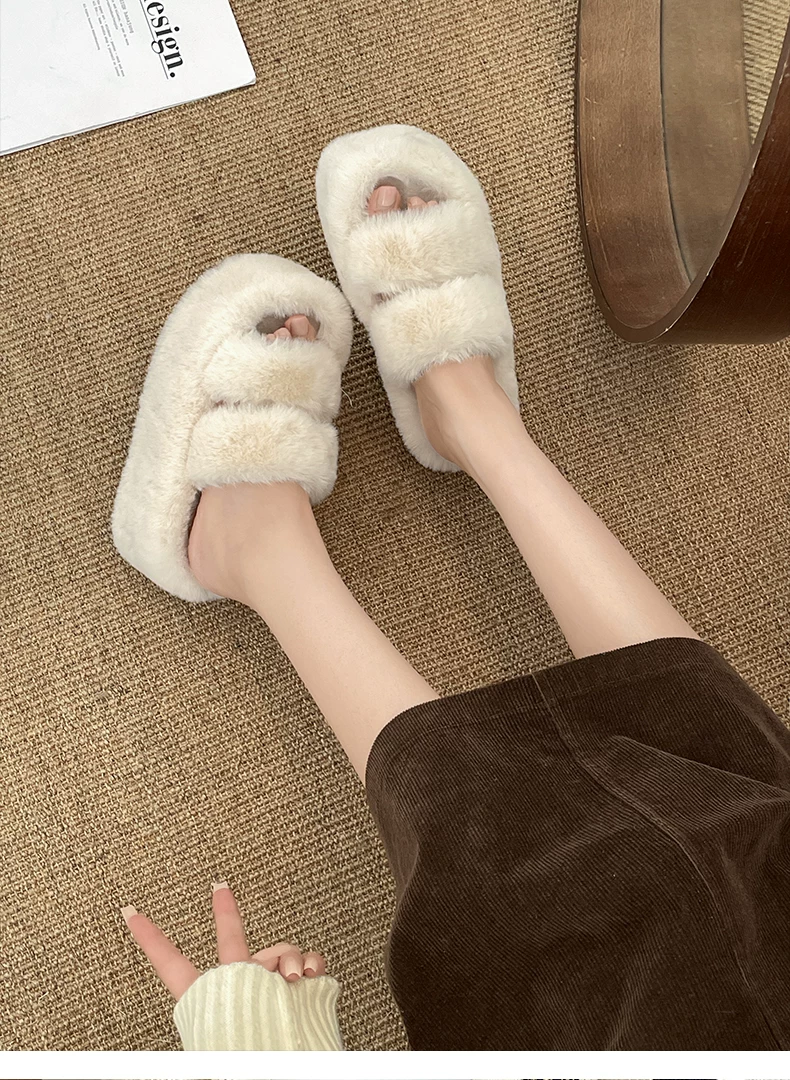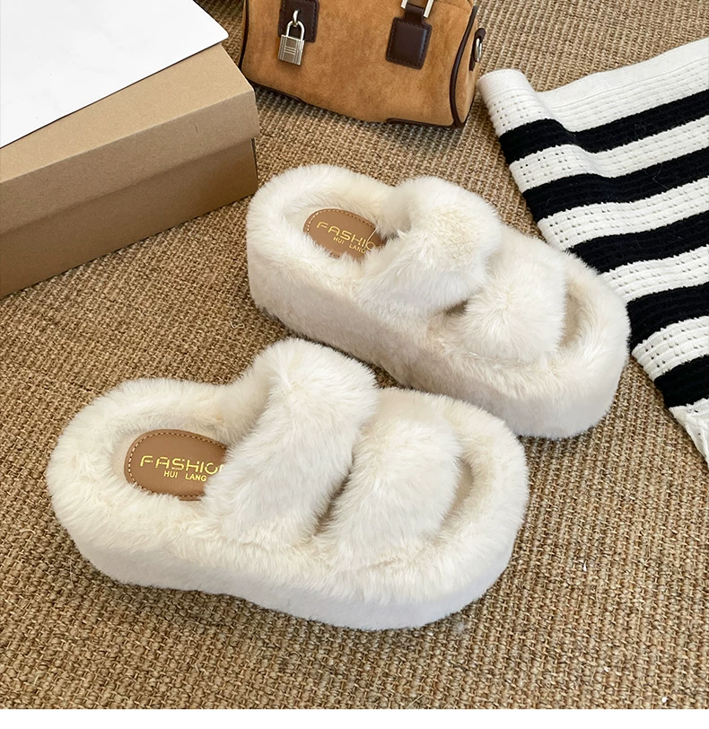 - Dép lông dày đế dày chống trơn kiểu Pháp màu trắng dành cho nữ, thích hợp để mang ngoài trời, dép lười tăng chiều cao đa năng mùa thu đông 2025.