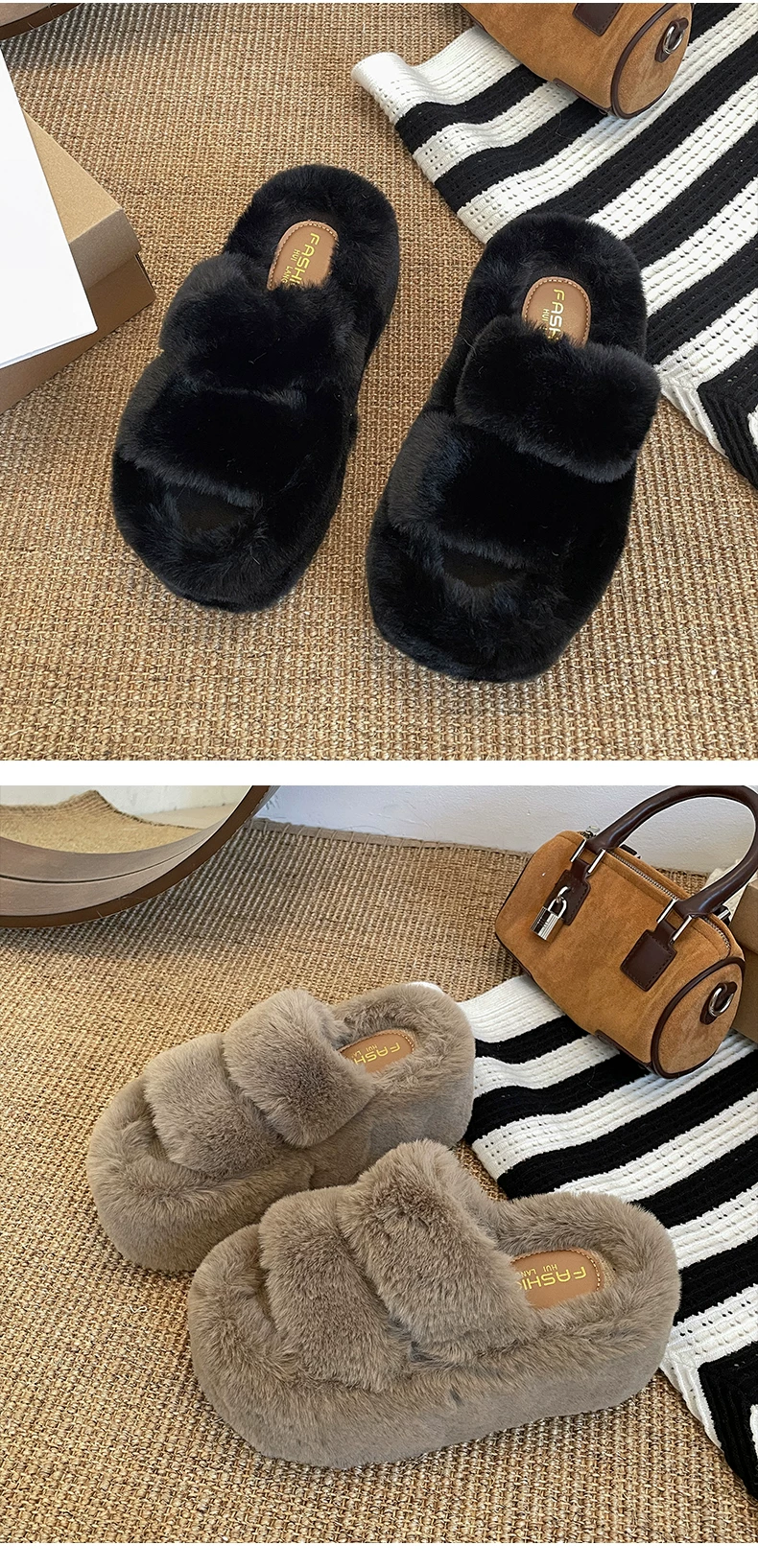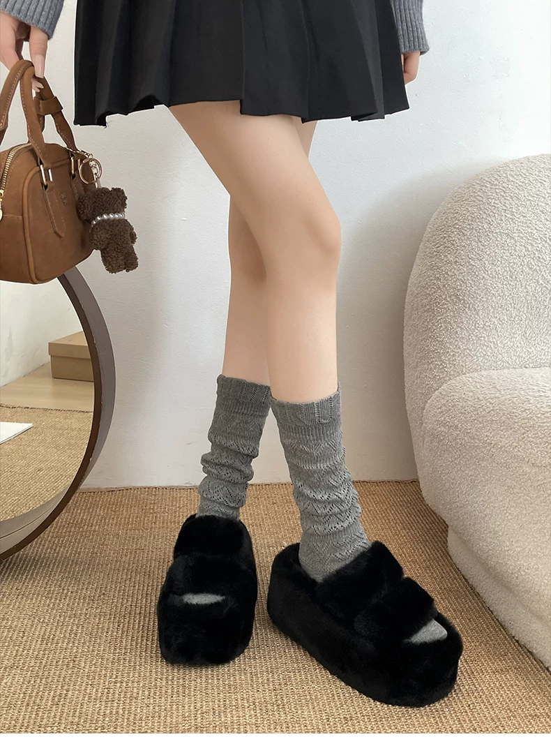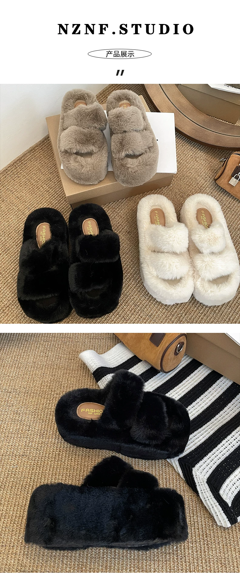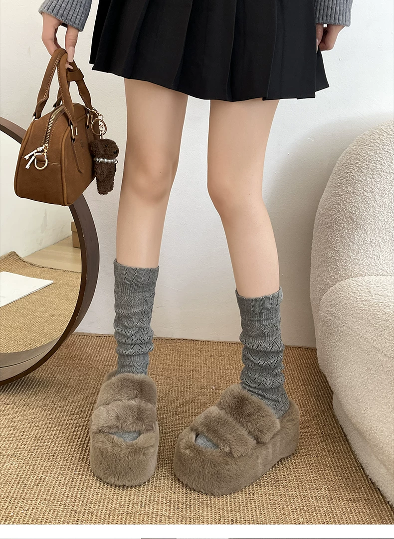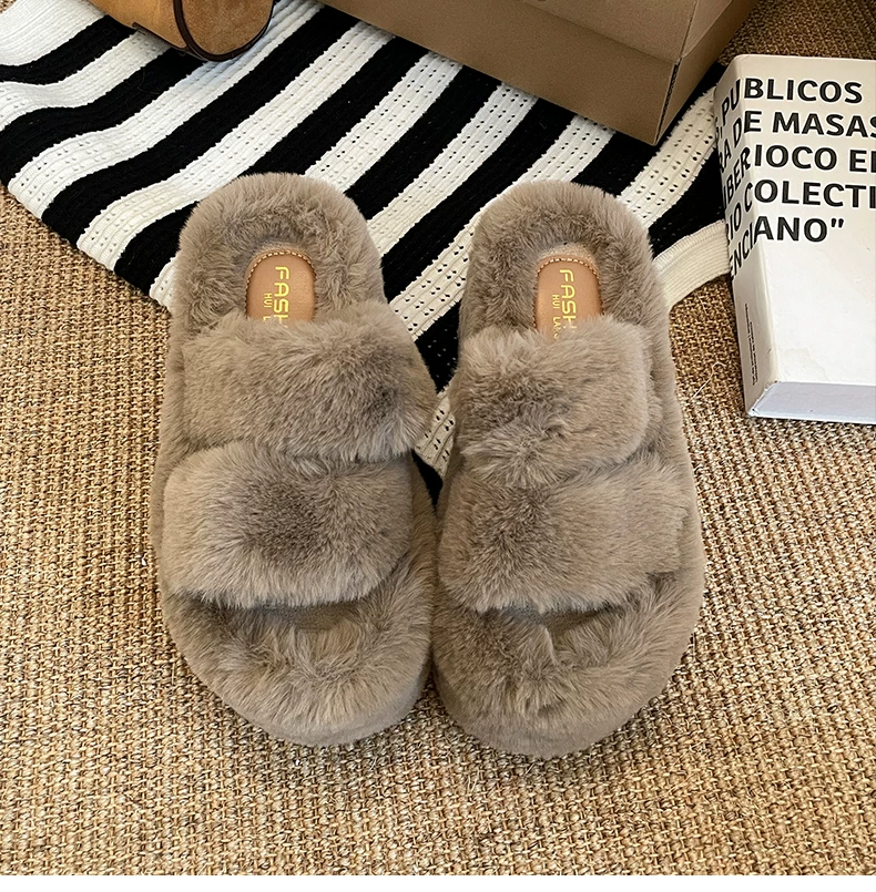 - Dép lông dày đế dày chống trơn kiểu Pháp màu trắng dành cho nữ, thích hợp để mang ngoài trời, dép lười tăng chiều cao đa năng mùa thu đông 2025.