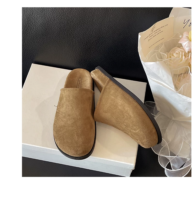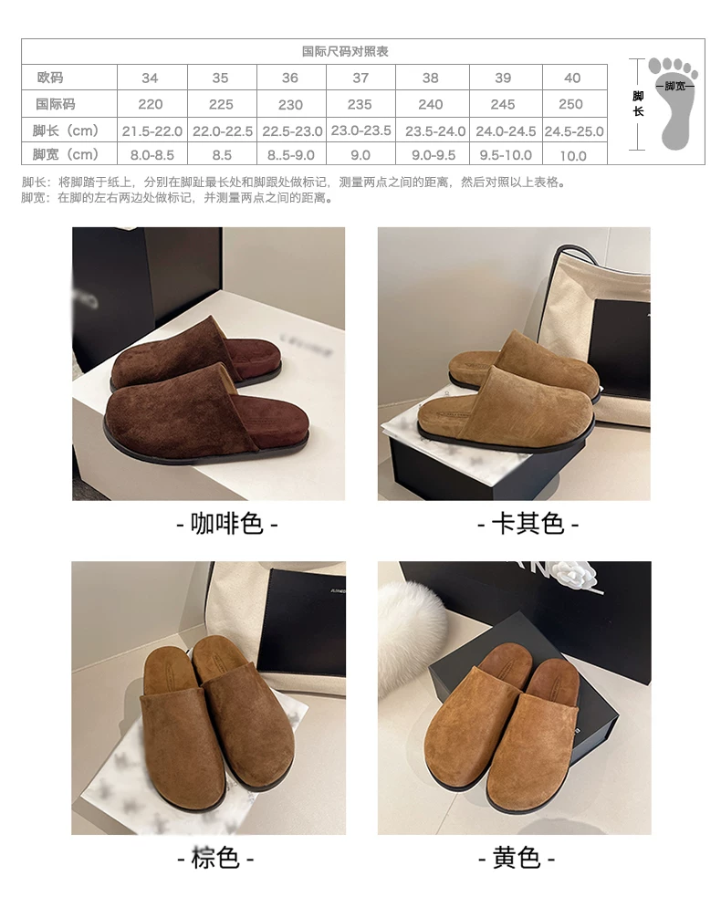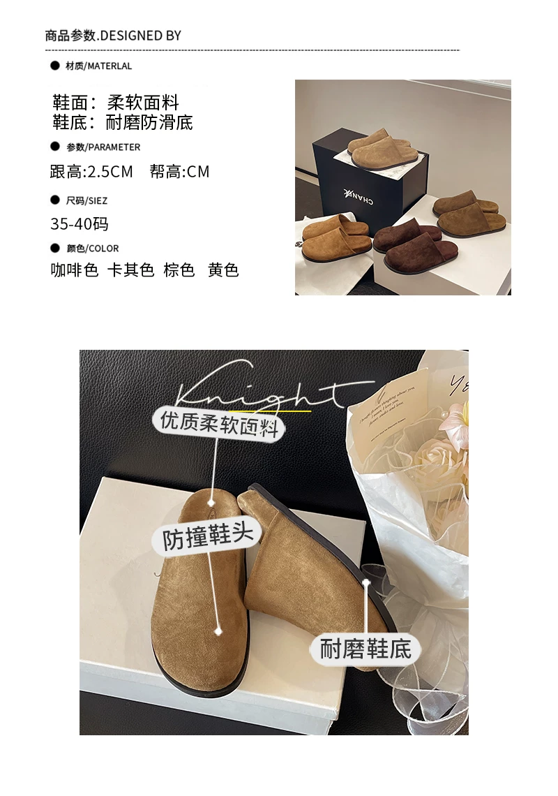 Dép nữ đế dày chống trơn, kiểu cổ điển nổi tiếng trên mạng, kiểu mới mùa thu 2025, thích hợp phối cùng váy, kiểu dép nửa kín kiểu Birkenstock.
