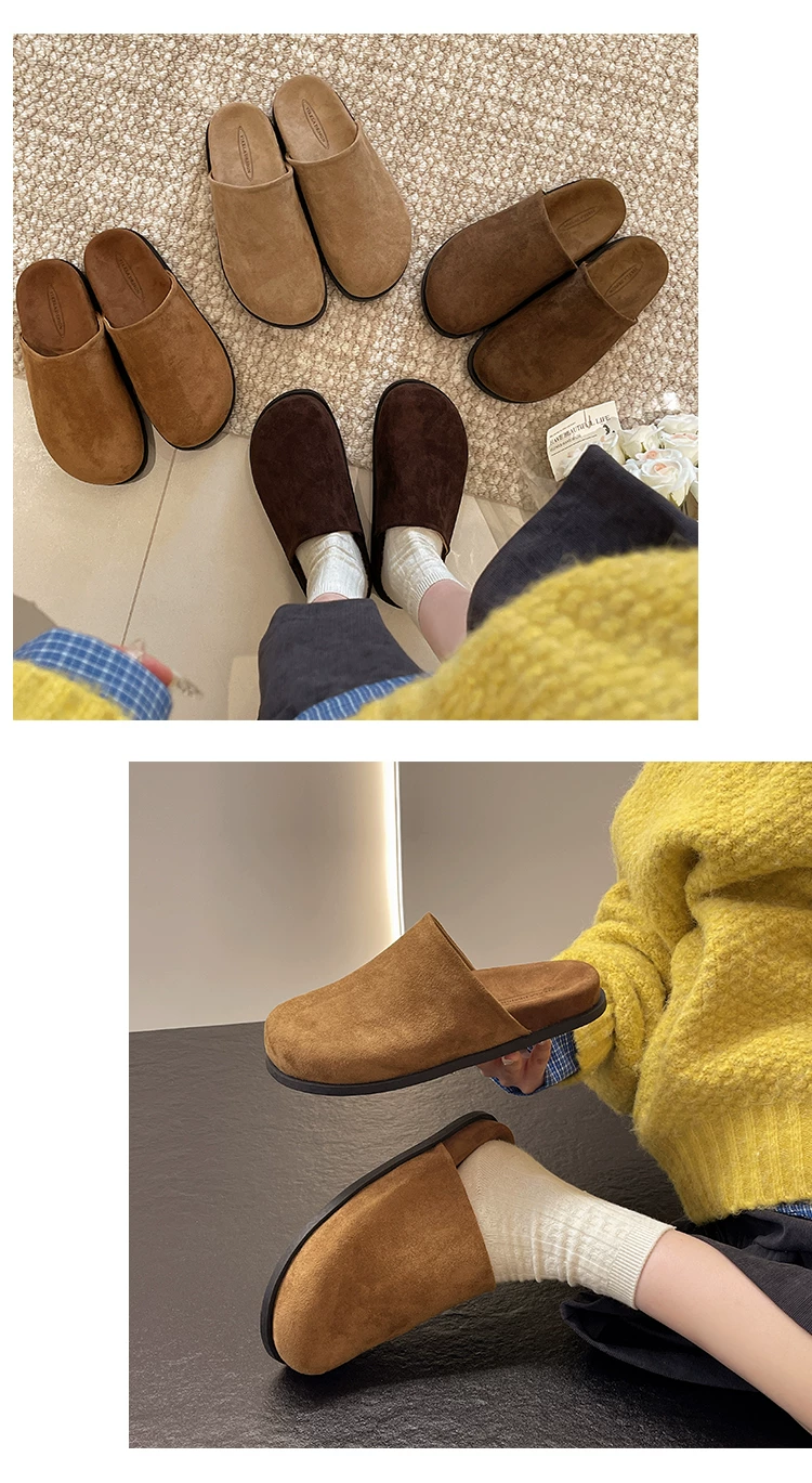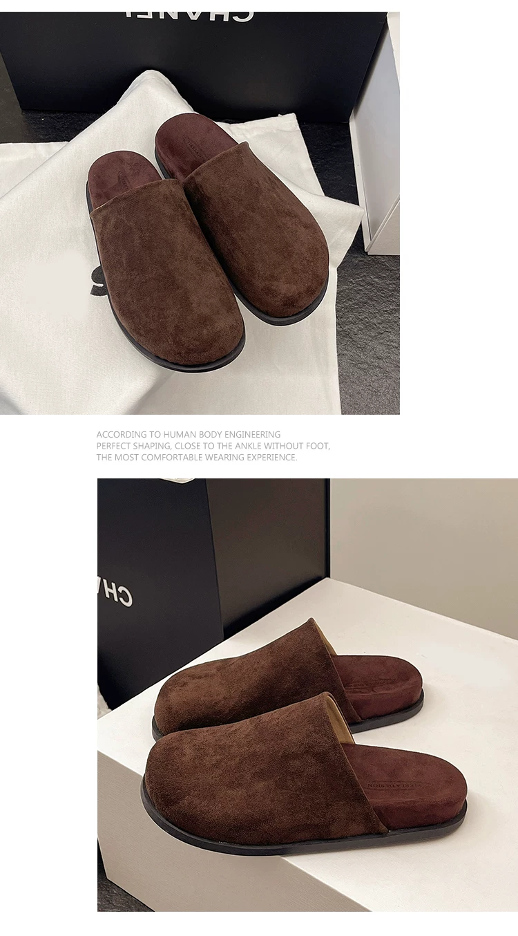 - Dép nữ đế dày chống trơn, kiểu cổ điển nổi tiếng trên mạng, kiểu mới mùa thu 2025, thích hợp phối cùng váy, kiểu dép nửa kín kiểu Birkenstock.