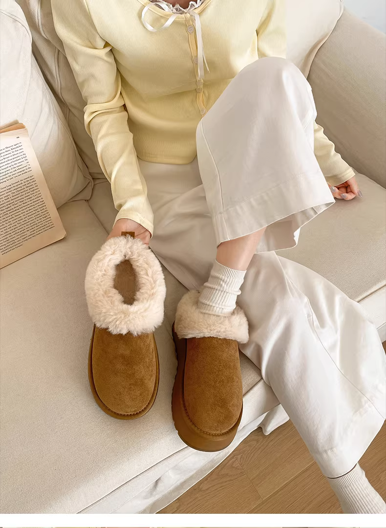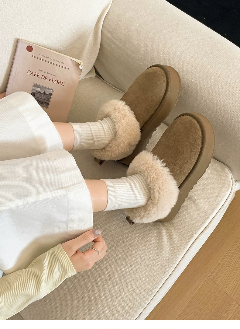 - Dép nửa ống kiểu Birkenstock đế dày lót lông cừu dành cho nữ, mẫu mới thu đông 2025, giữ ấm khi đi ngoài trời, lót lông mềm mại