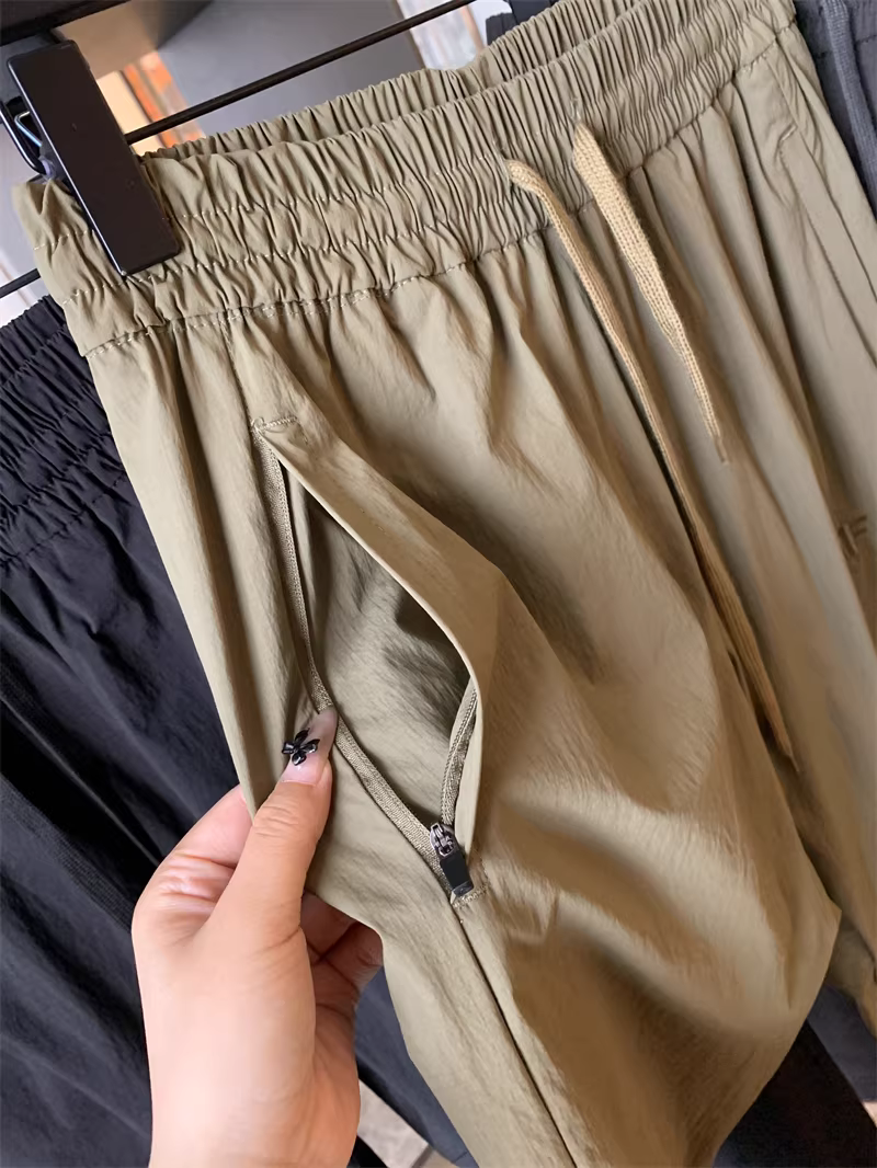 Đồ dùng ngoài trời Don Quixote! Thêu tinh tế! Quần thể thao nam mùa hè có khóa kéo, kiểu dáng lịch sự, thoải mái