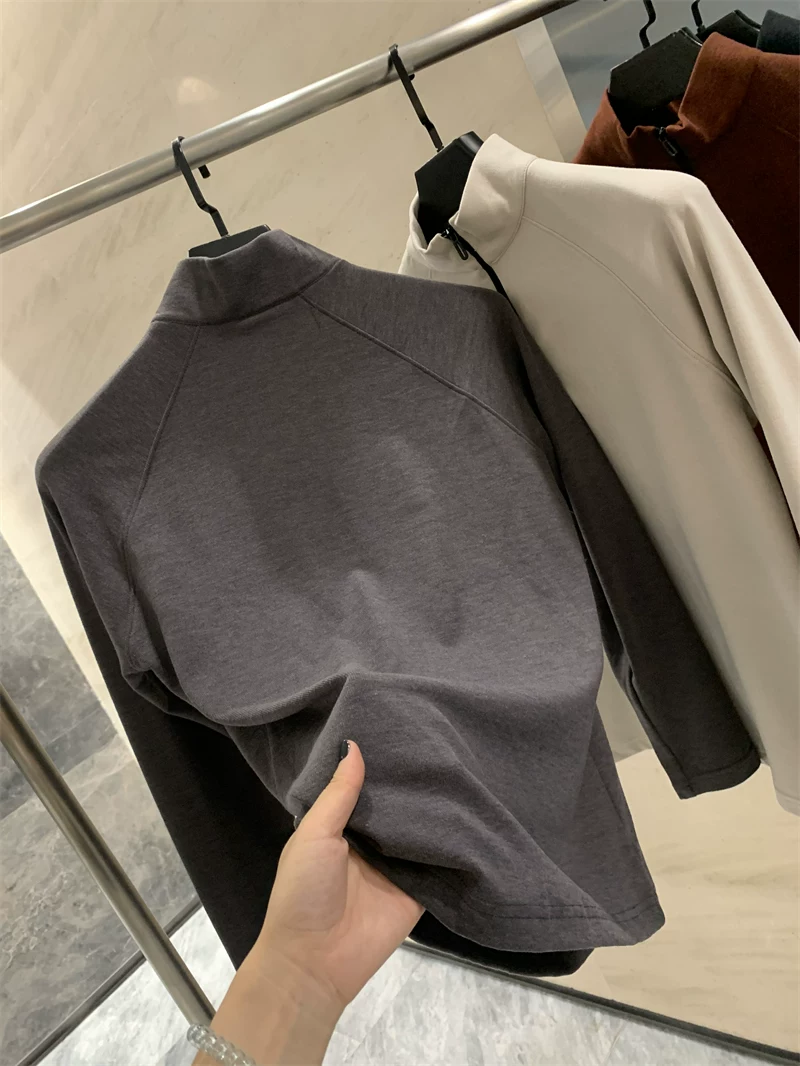 - Đồ dùng ngoài trời Don Quixote! Thoáng khí và nhanh khô! Áo thun nam mùa thu màu trơn cổ nửa mở thể thao ngoài trời thời trang