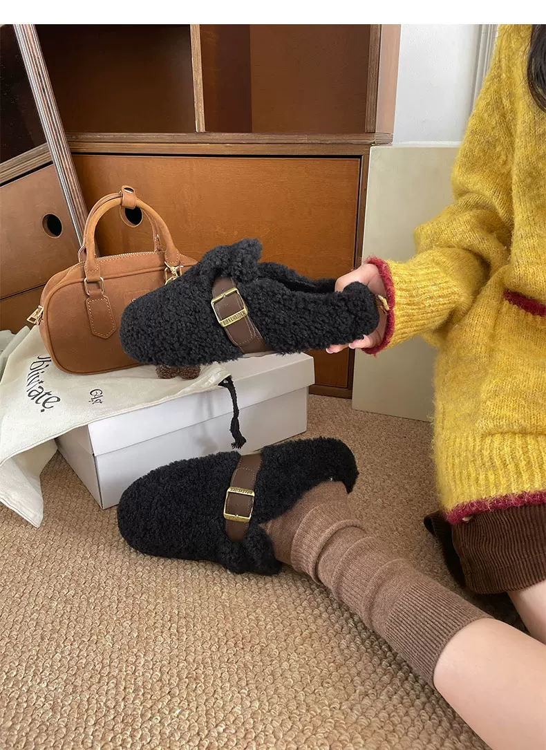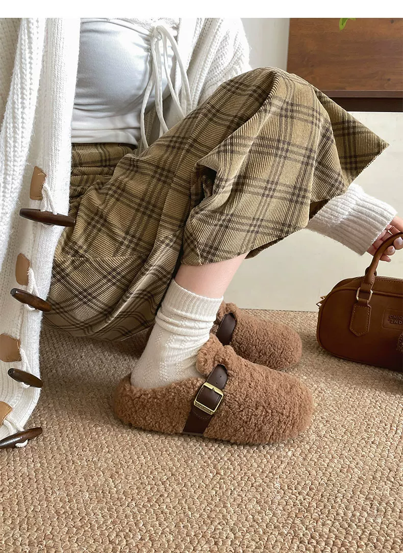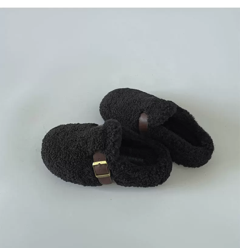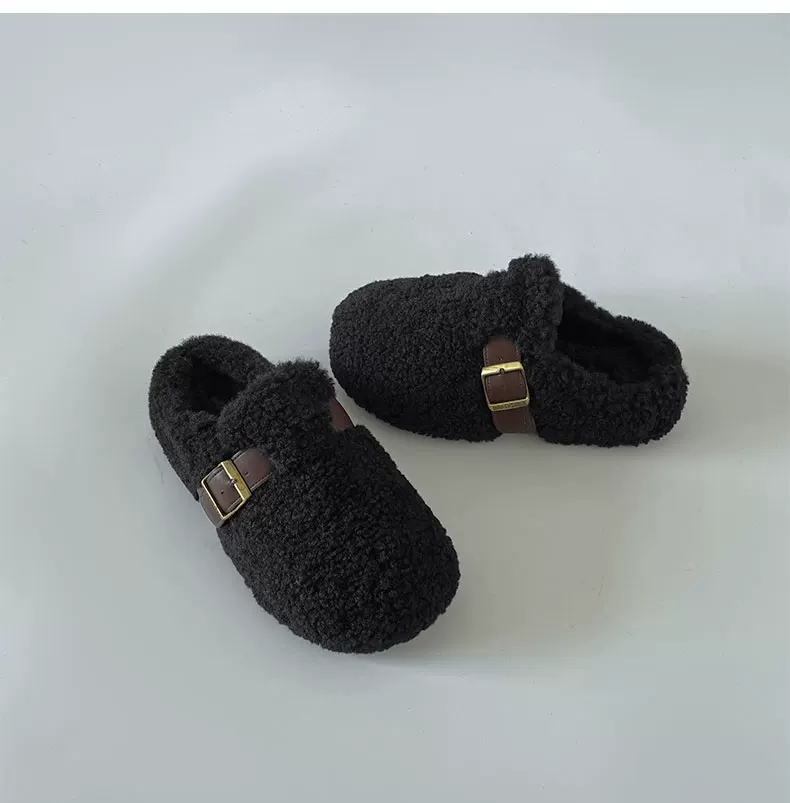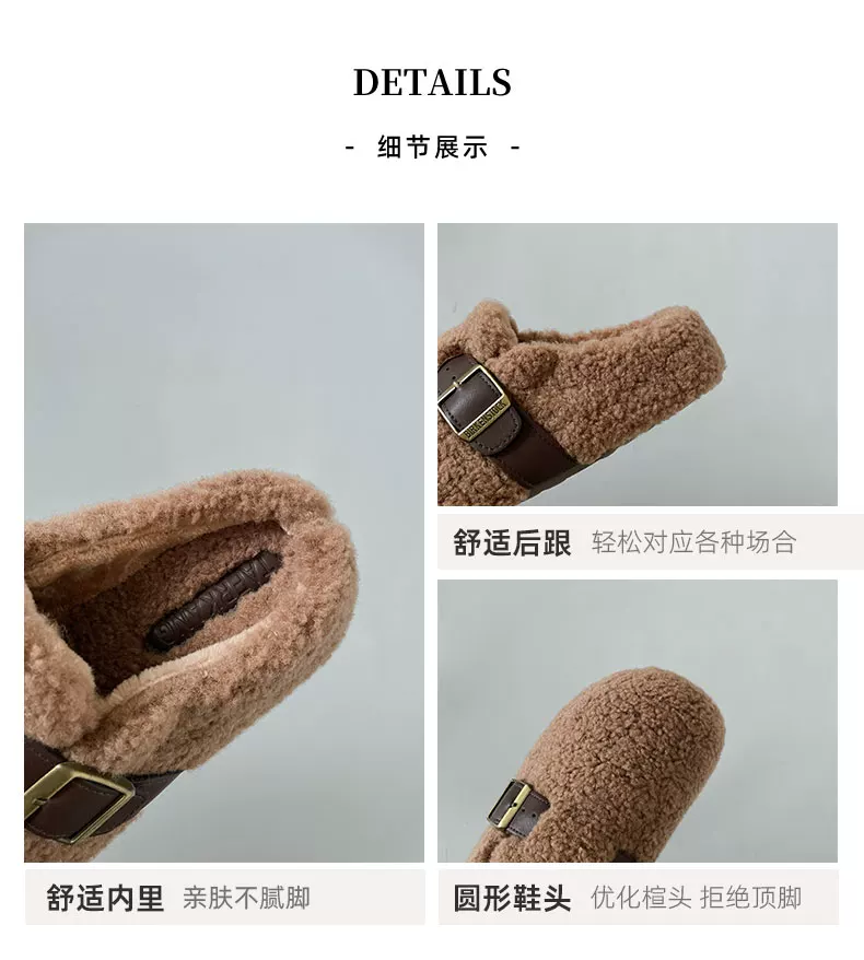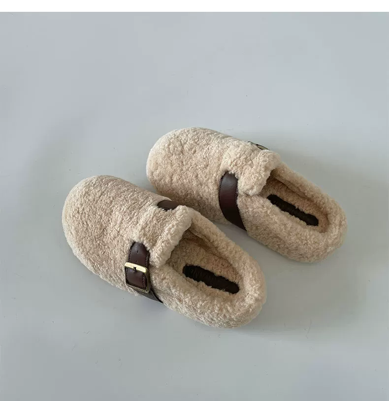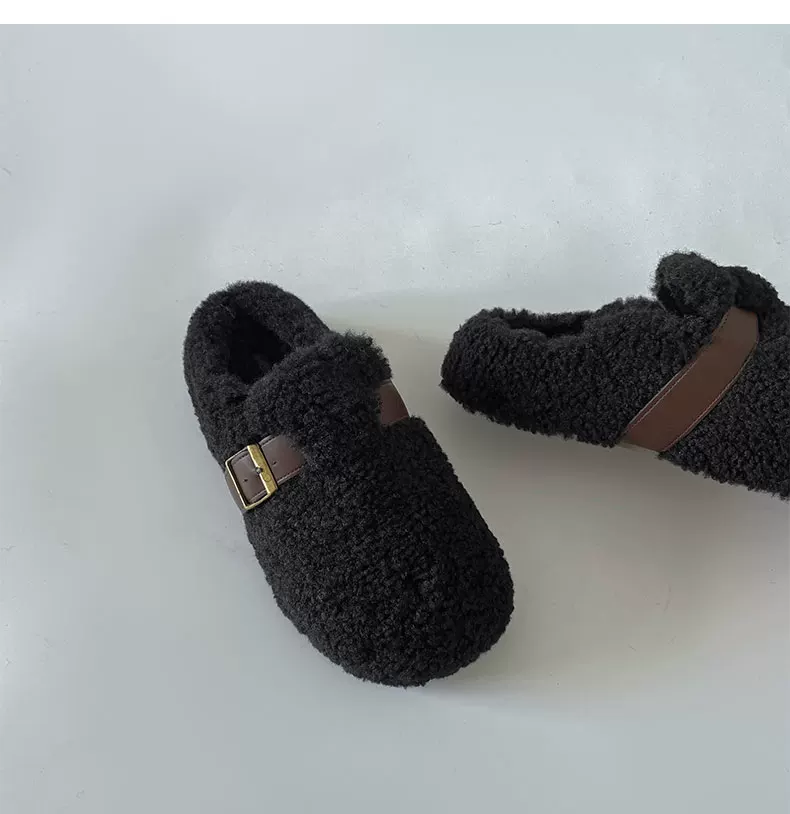 Đôi dép lê nữ đế dày lót lông mềm mại, thích hợp đi ngoài trời, kiểu dáng cổ điển mùa thu đông 2025, kiểu Birkenstock, chất liệu cotton.