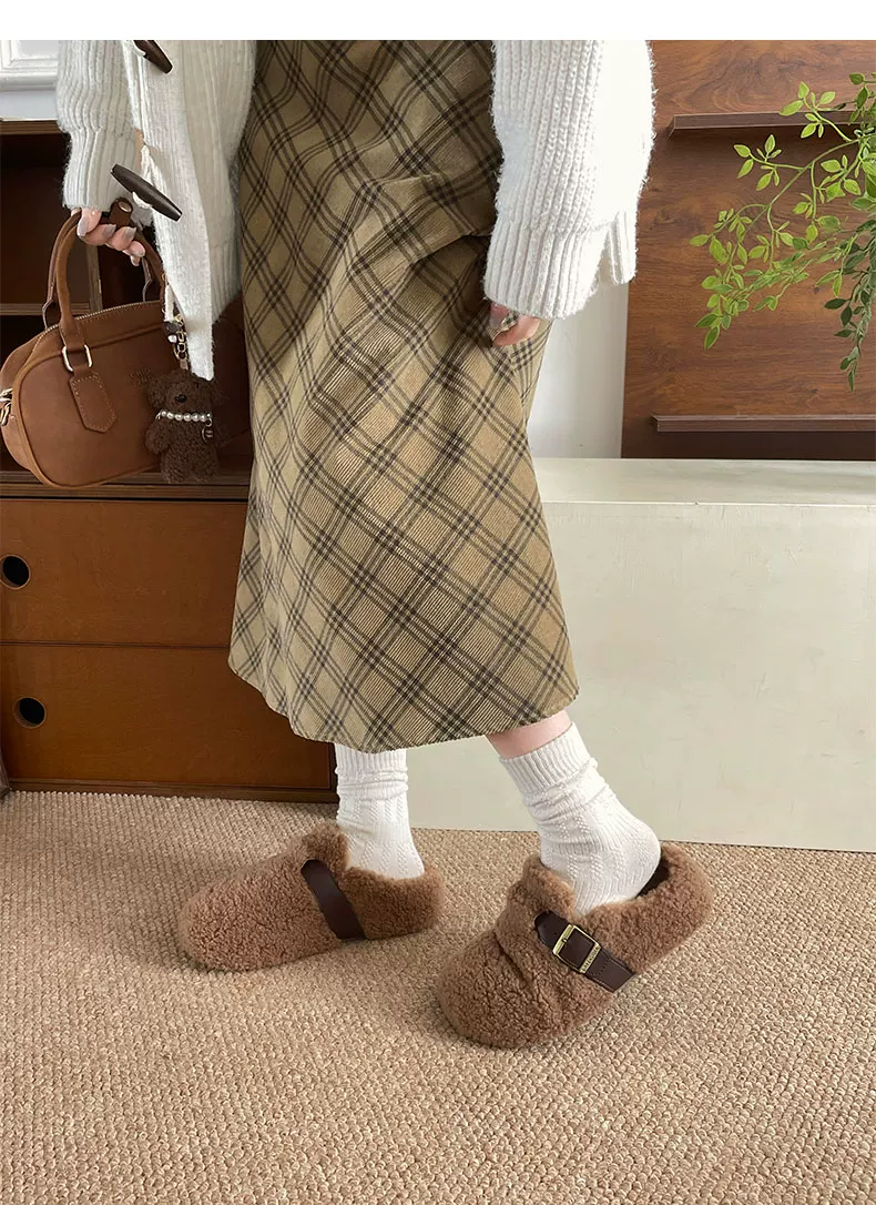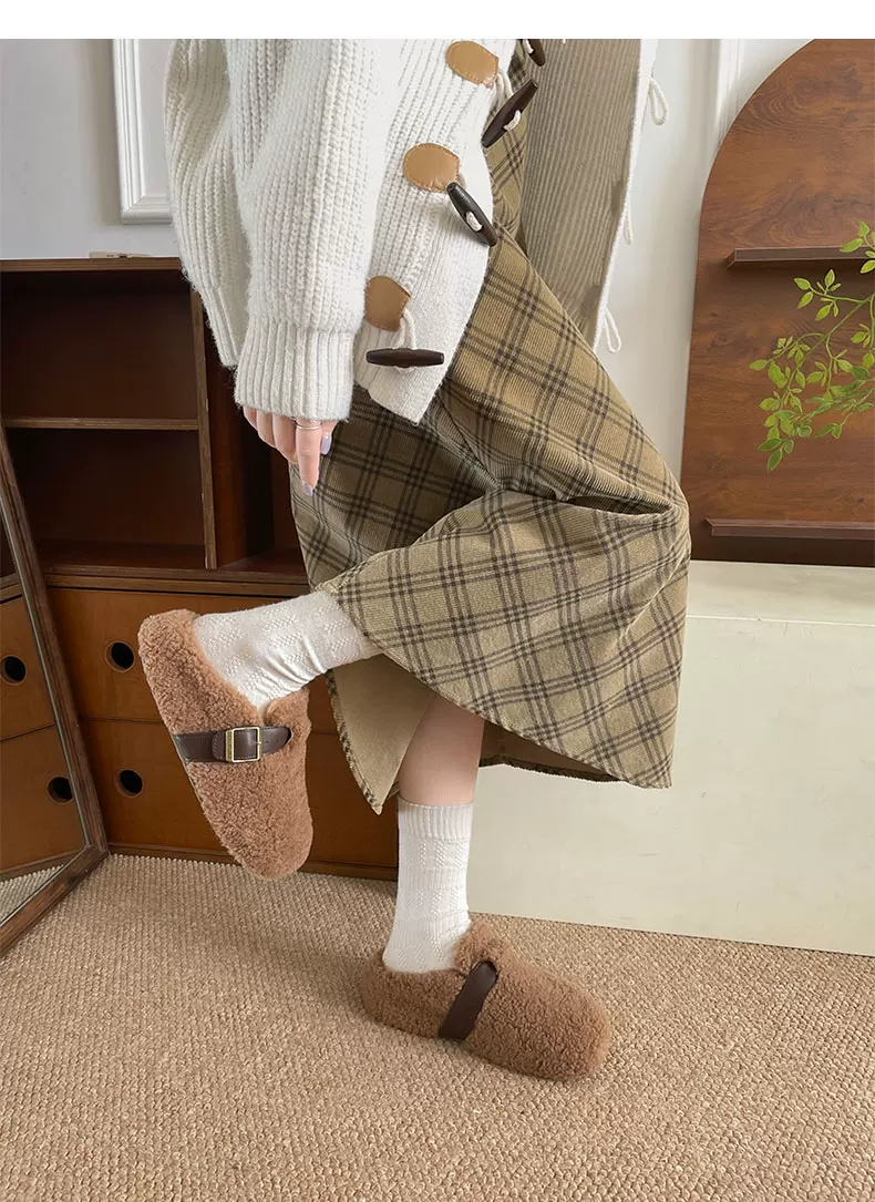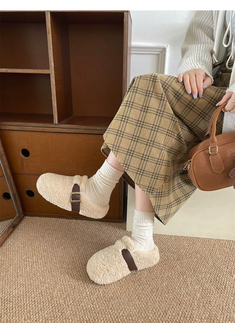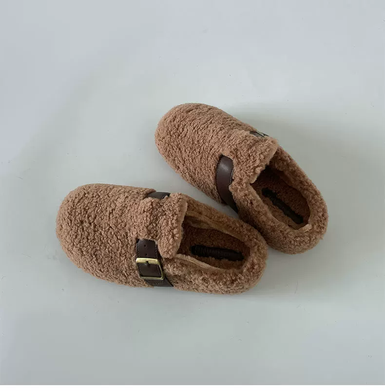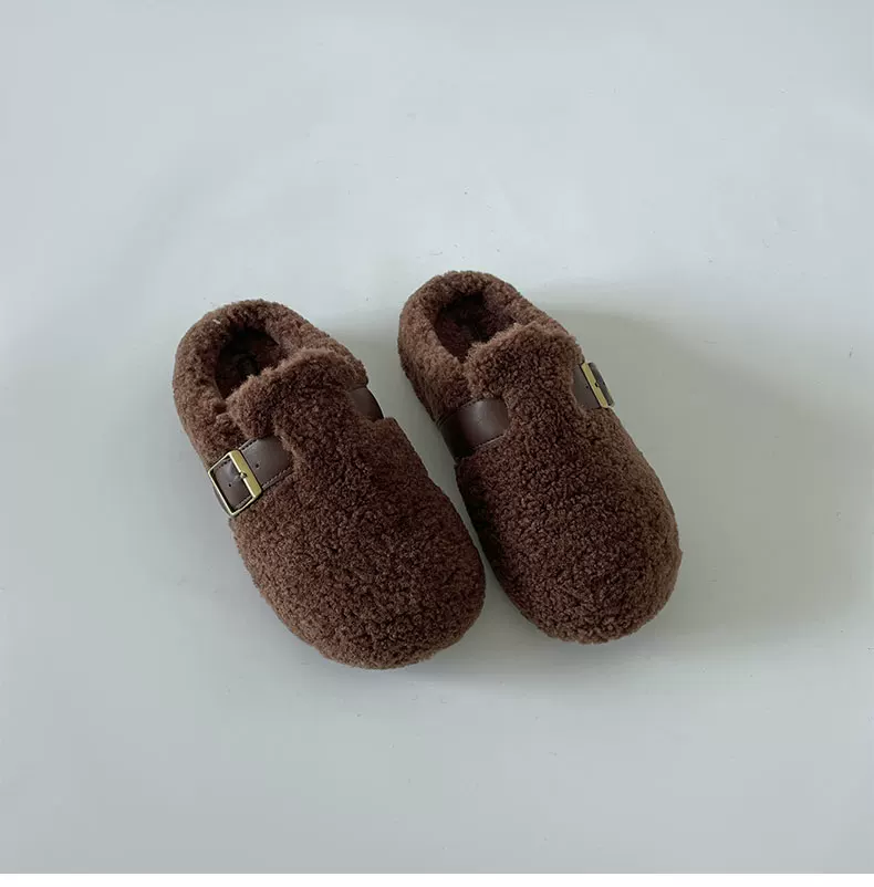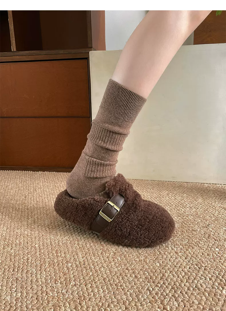 Đôi dép lê nữ đế dày lót lông mềm mại, thích hợp đi ngoài trời, kiểu dáng cổ điển mùa thu đông 2025, kiểu Birkenstock, chất liệu cotton.