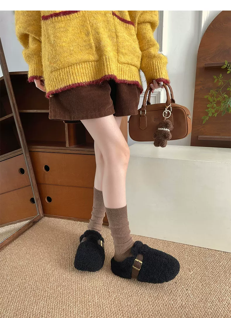 - Đôi dép lê nữ đế dày lót lông mềm mại, thích hợp đi ngoài trời, kiểu dáng cổ điển mùa thu đông 2025, kiểu Birkenstock, chất liệu cotton.