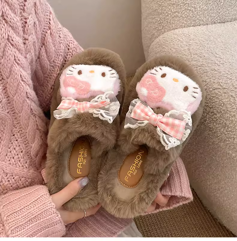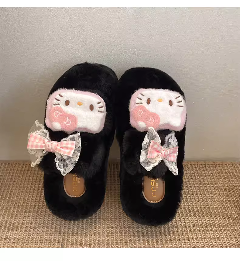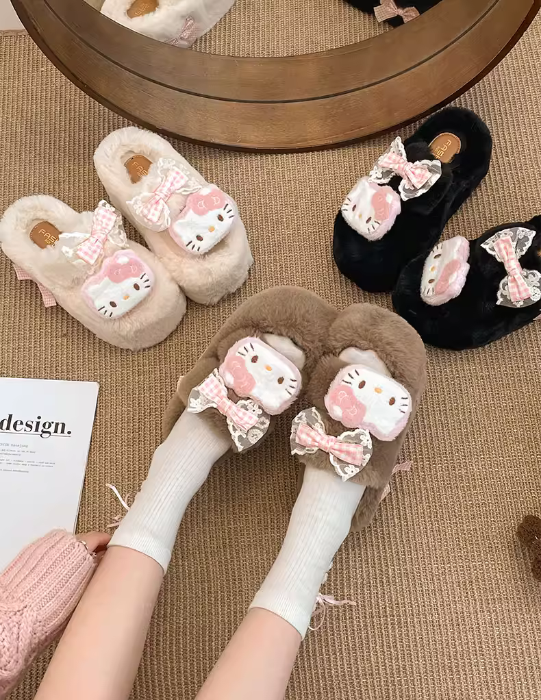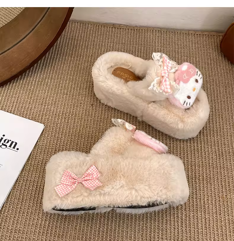 Đôi dép lông dày đế cao cấp màu trắng phổ biến dành cho nữ, thích hợp mang đi ngoài trời, kiểu dáng thu đông 2025 mới, dép bông dễ thương phối cùng váy.