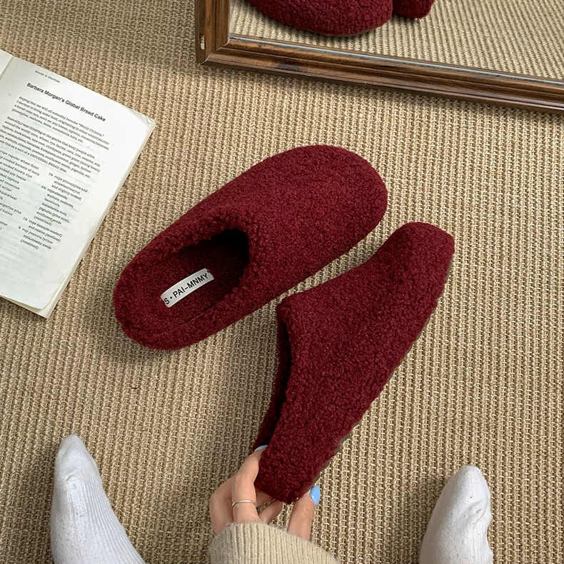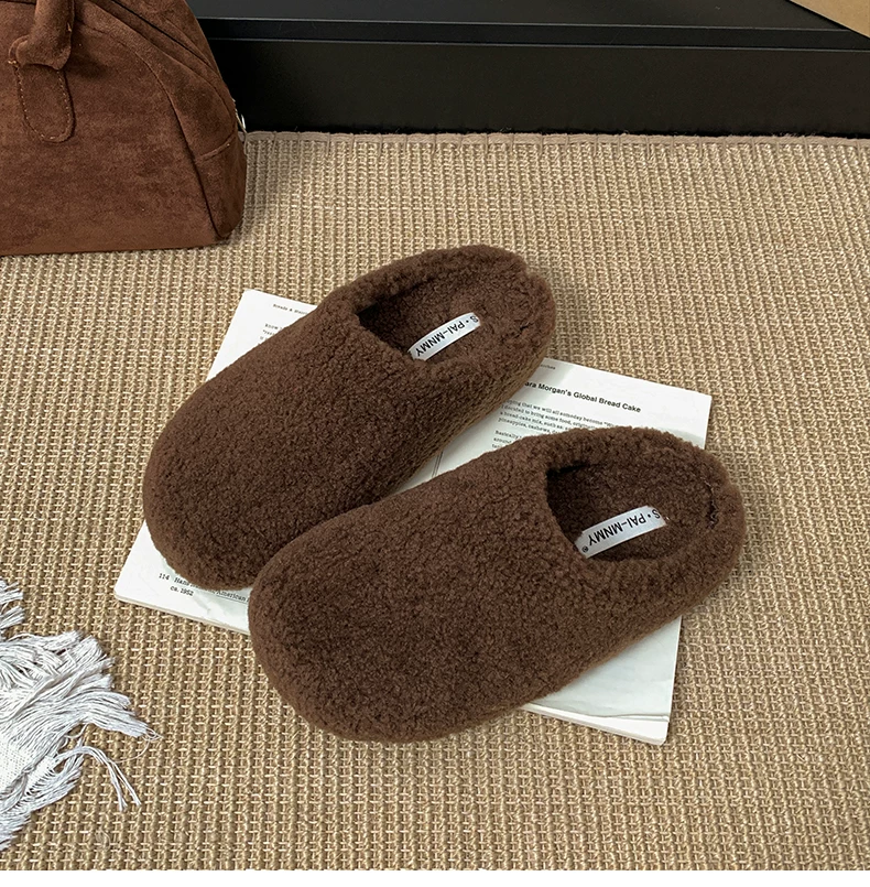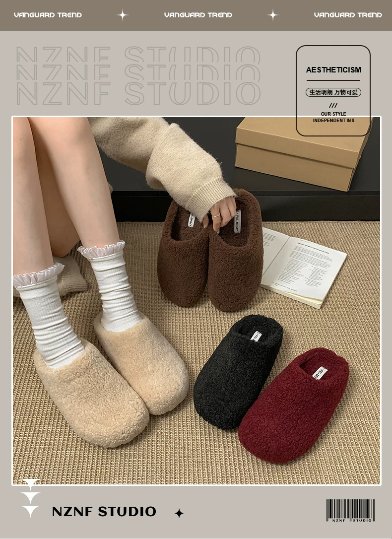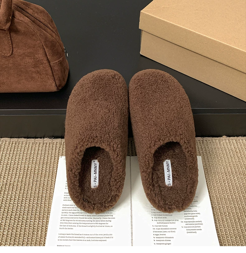 Đôi dép lông dày đế chống trơn kiểu retro dành cho nữ, mặc ngoài mùa đông 2025, đa năng, tăng chiều cao, giữ ấm, chất liệu cotton, bảo vệ ngón chân.