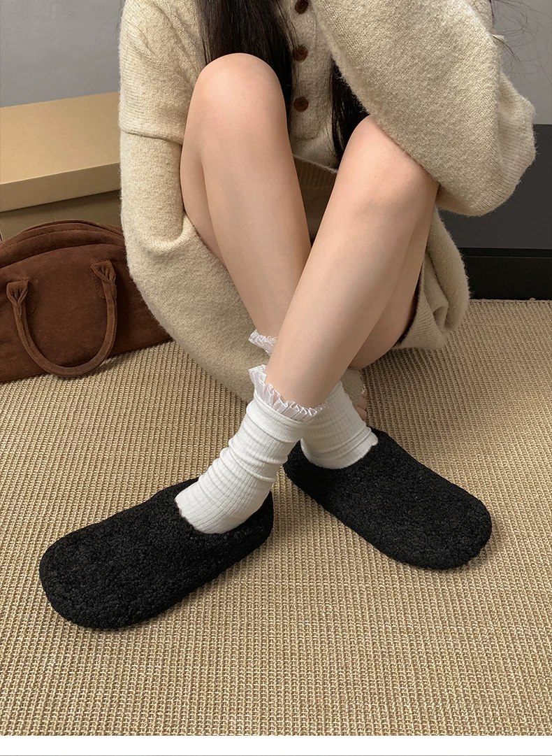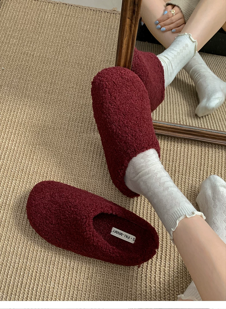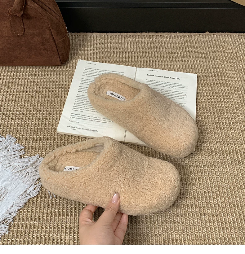- Đôi dép lông dày đế chống trơn kiểu retro dành cho nữ, mặc ngoài mùa đông 2025, đa năng, tăng chiều cao, giữ ấm, chất liệu cotton, bảo vệ ngón chân.