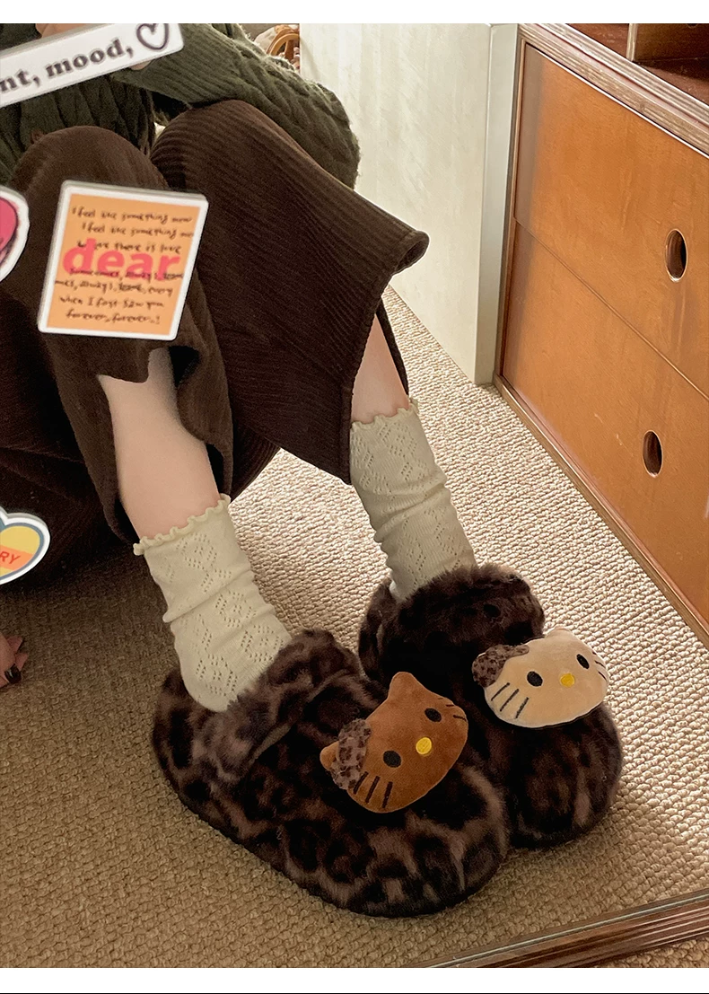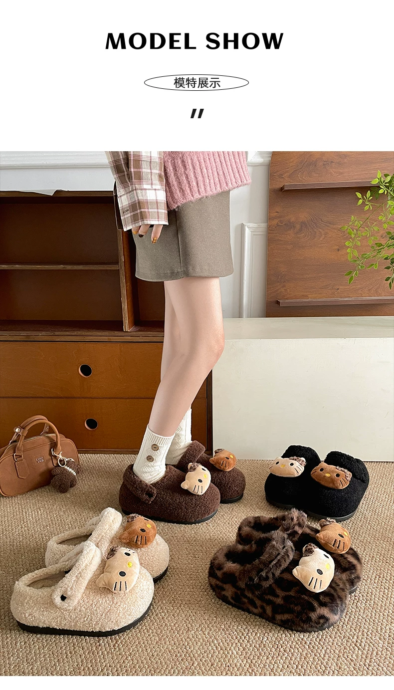 - Đôi dép lông dày đế dày màu đen hoạt hình dễ thương dành cho nữ, thích hợp để mang ngoài trời, dép bông ấm áp mùa đông mới năm 2025, có thể mang hai kiểu.