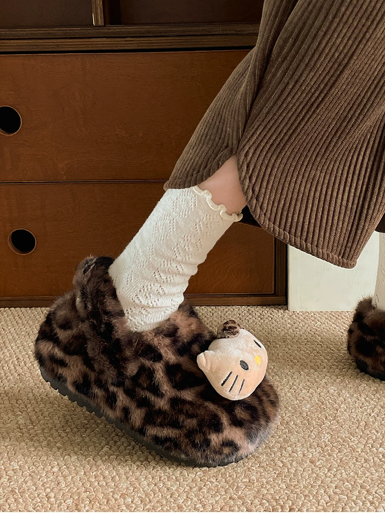 Đôi dép lông dày đế dày màu đen hoạt hình dễ thương dành cho nữ, thích hợp để mang ngoài trời, dép bông ấm áp mùa đông mới năm 2025, có thể mang hai kiểu.