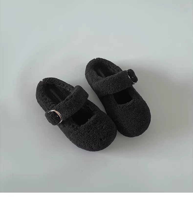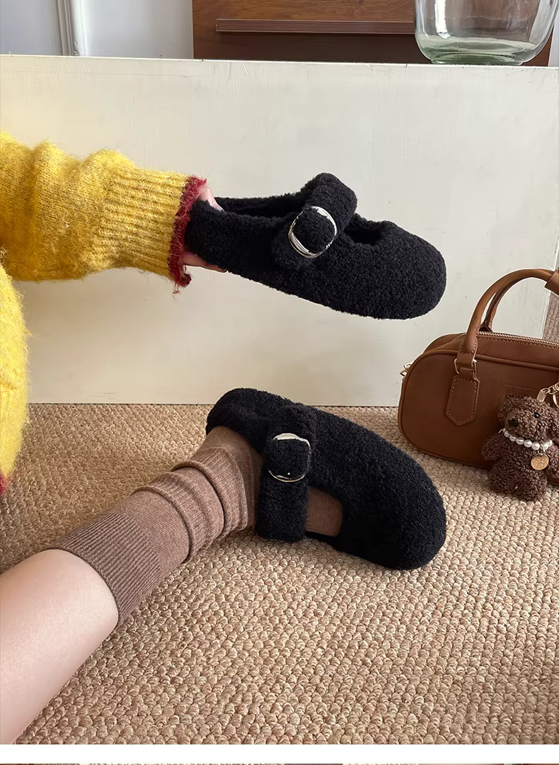- Đôi dép lông dày kiểu Pháp Nanzai Nanfang màu đen dành cho nữ, mẫu mới mùa đông 2025, giữ ấm khi đi ngoài trời, chất liệu bông mềm mại.