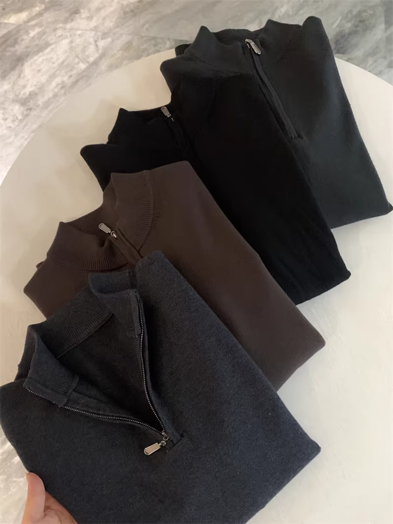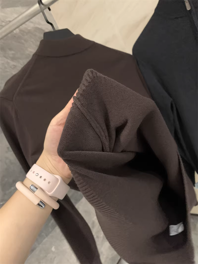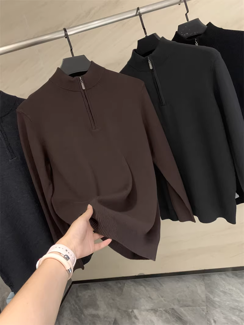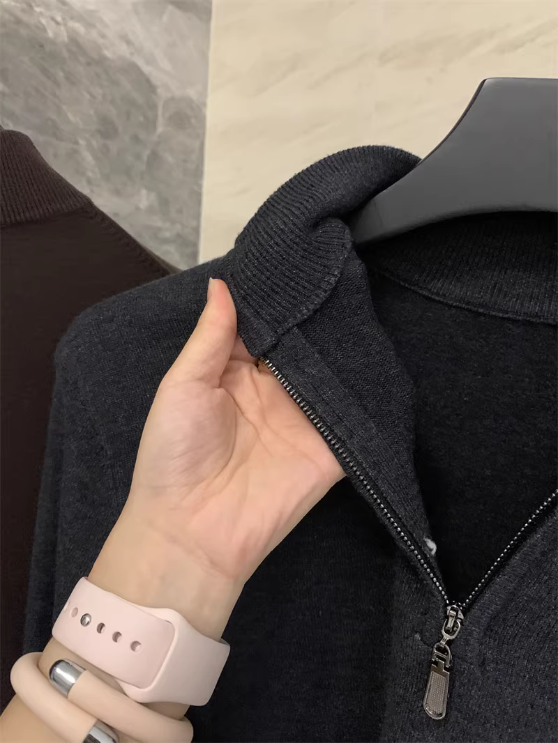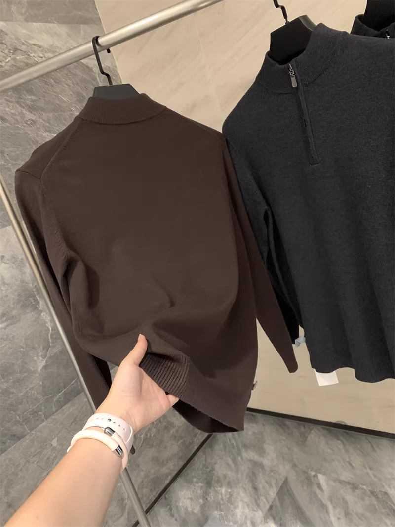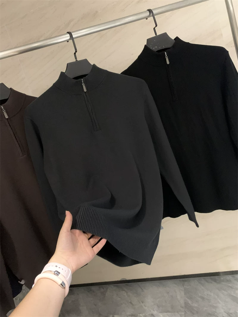 Đơn đặt hàng của công ty Don Quixote! Chất liệu pha Lyocell! Áo len nam màu trơn nửa khóa kéo mùa thu, kiểu dáng thời thượng.