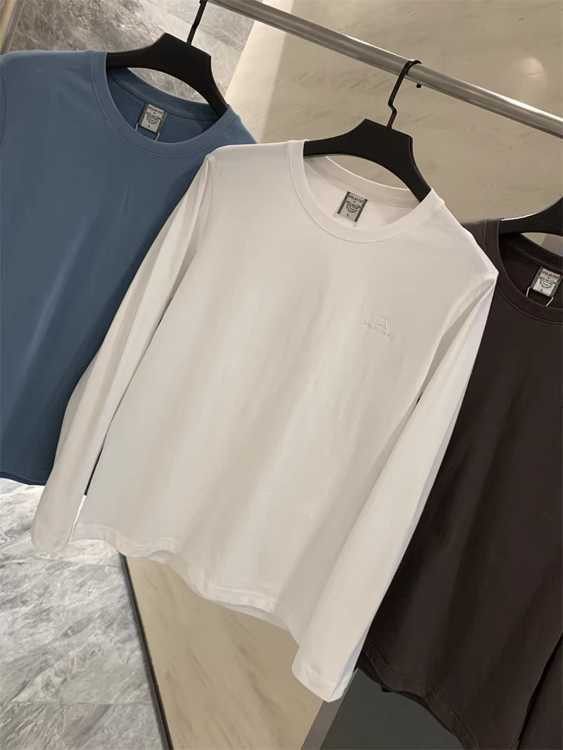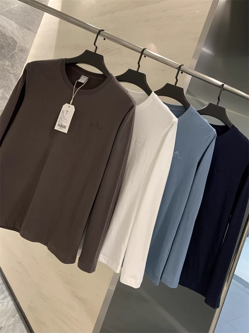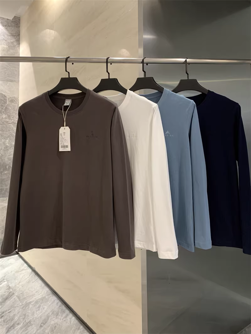 - Đơn đặt hàng của công ty Don Quixote ODM! 100% cotton! Áo thun nam cổ tròn tay dài màu trơn cổ điển, chất liệu lót cơ bản.