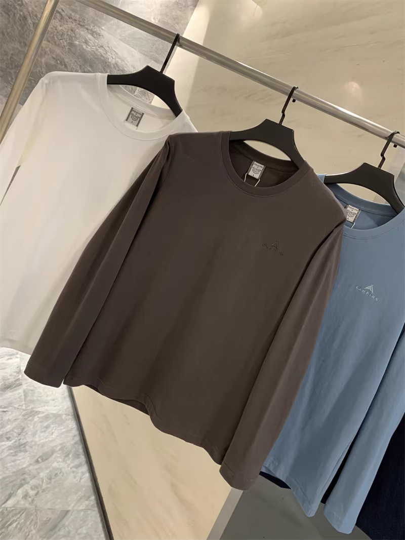 Đơn đặt hàng của công ty Don Quixote ODM! 100% cotton! Áo thun nam cổ tròn tay dài màu trơn cổ điển, chất liệu lót cơ bản.