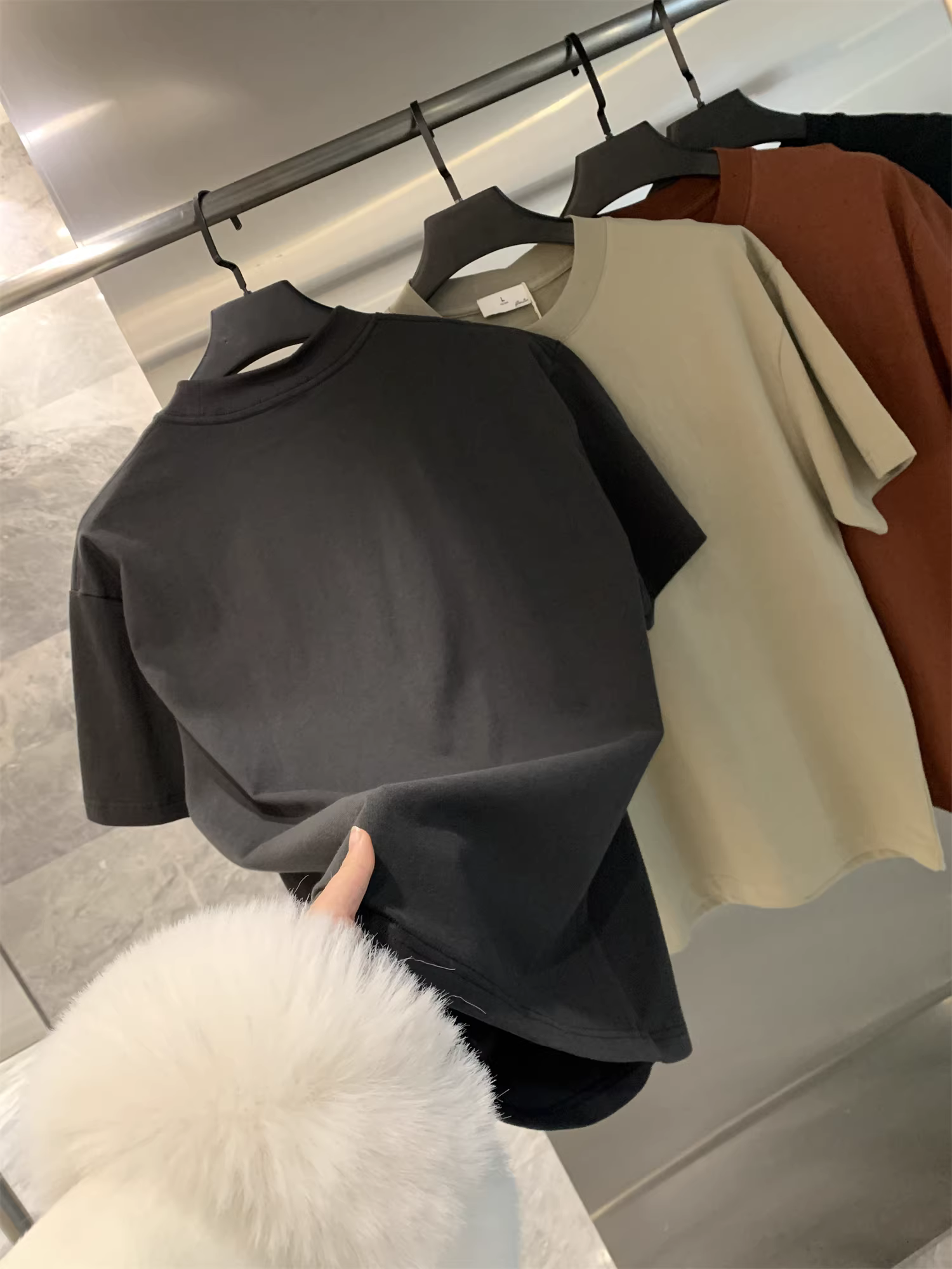 Đơn đặt hàng của công ty Don Quixote ODM! 100% cotton! Áo thun ngắn tay cổ tròn đa năng, màu trơn, dòng màu Melard dành cho cặp đôi.