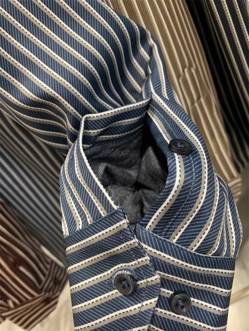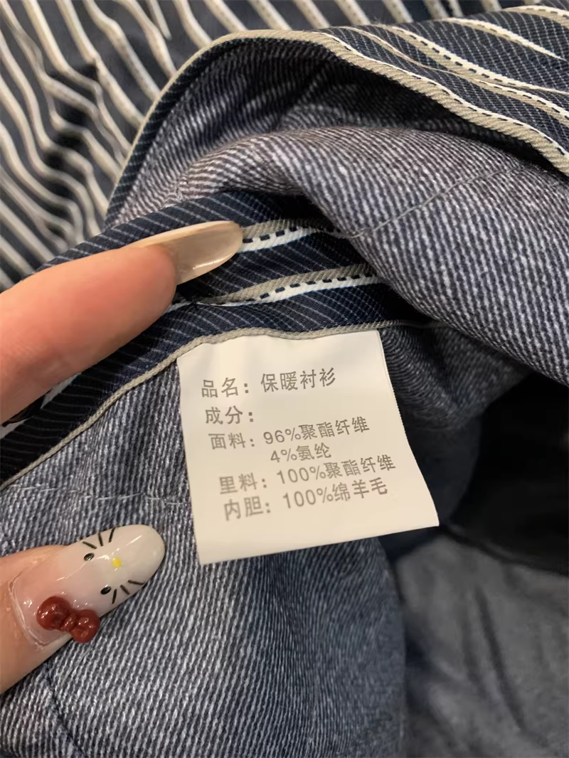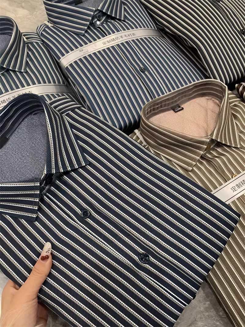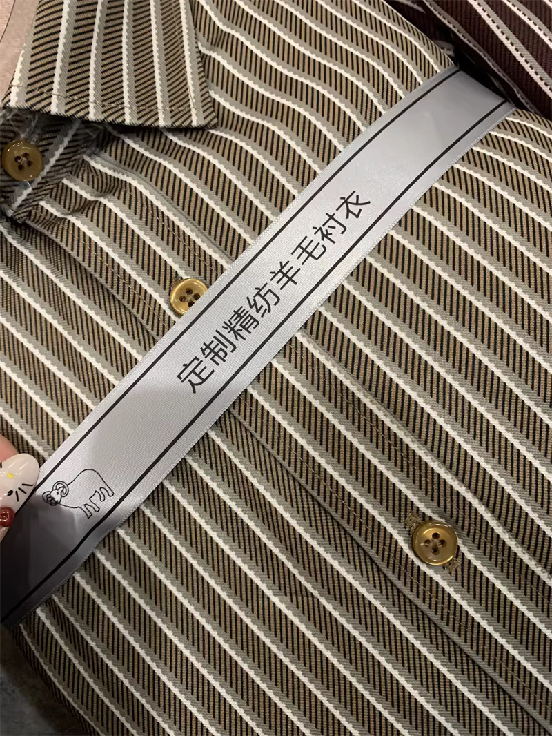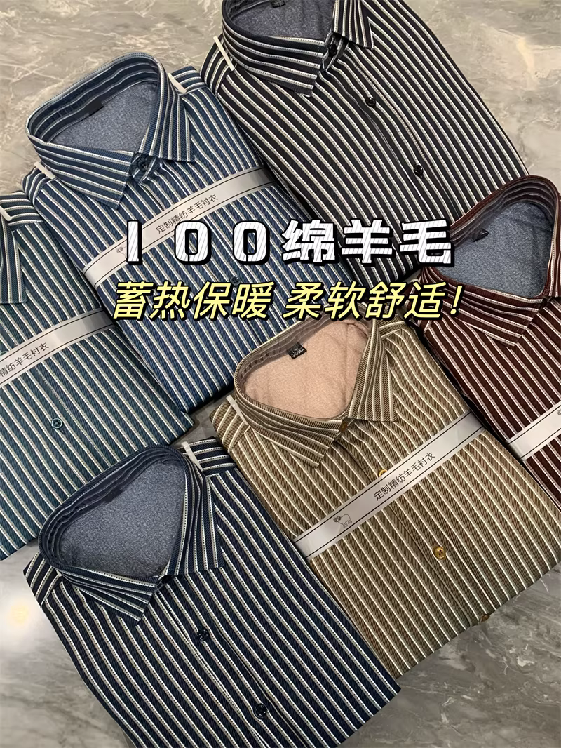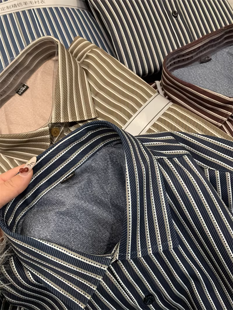 - Đơn đặt hàng của công ty Don Quixote ODM! Áo sơ mi nam dài tay dày dặn, ấm áp, kẻ sọc dọc, chất liệu len cừu.