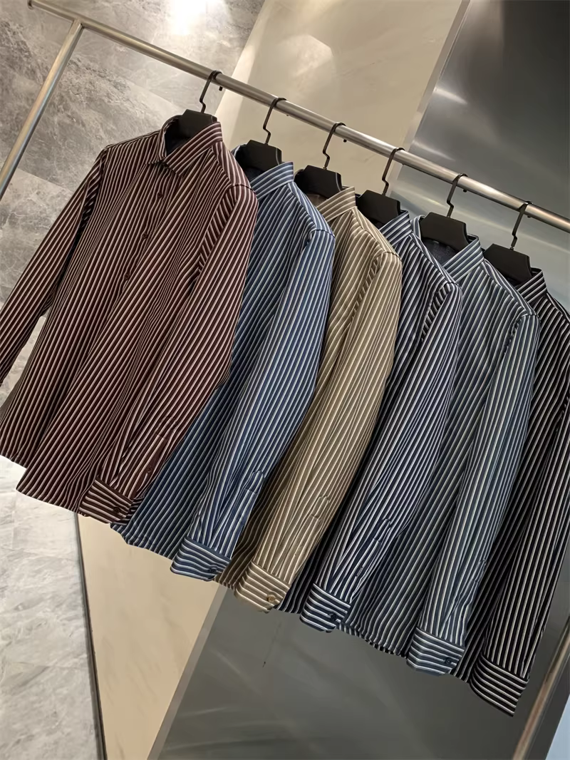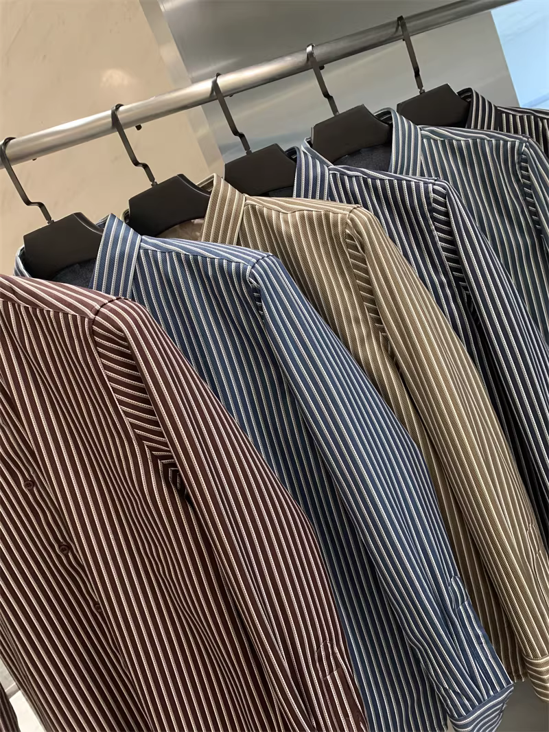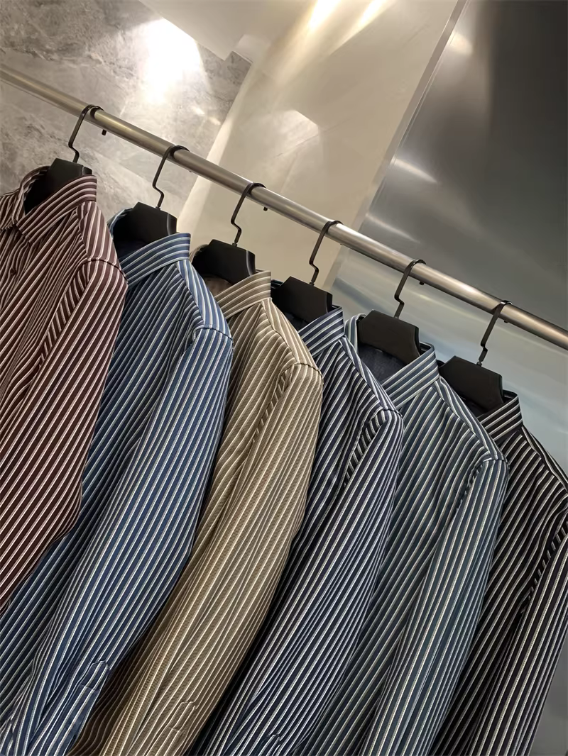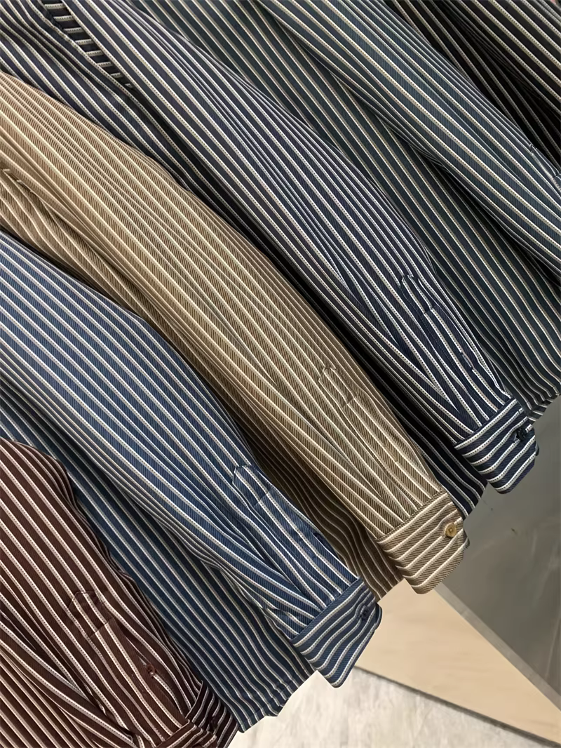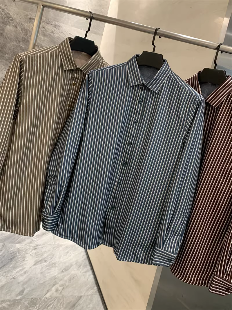 - Đơn đặt hàng của công ty Don Quixote ODM! Áo sơ mi nam dài tay dày dặn, ấm áp, kẻ sọc dọc, chất liệu len cừu.