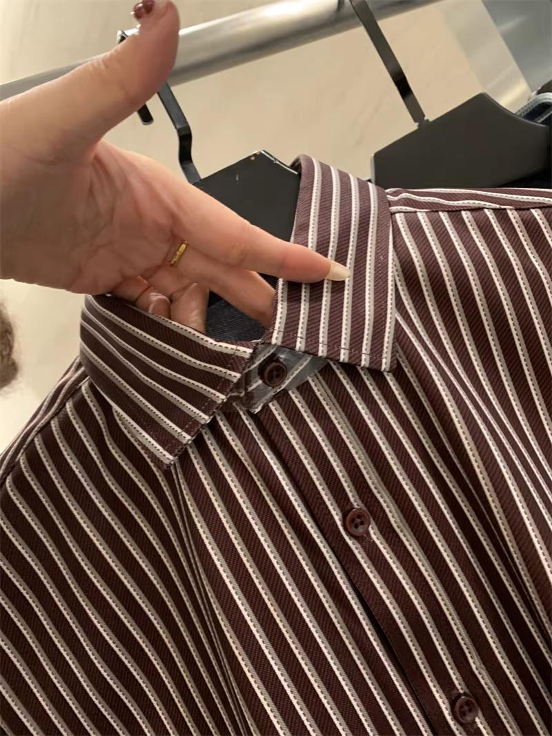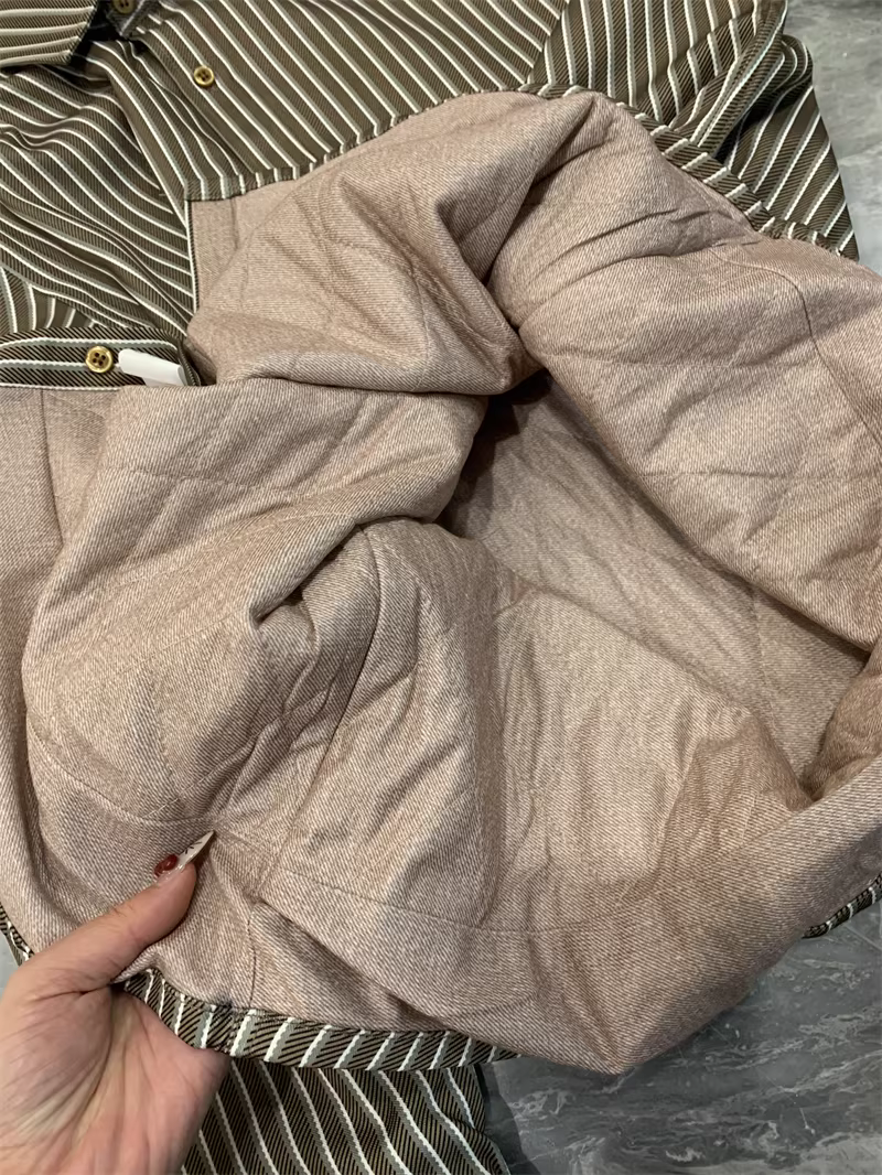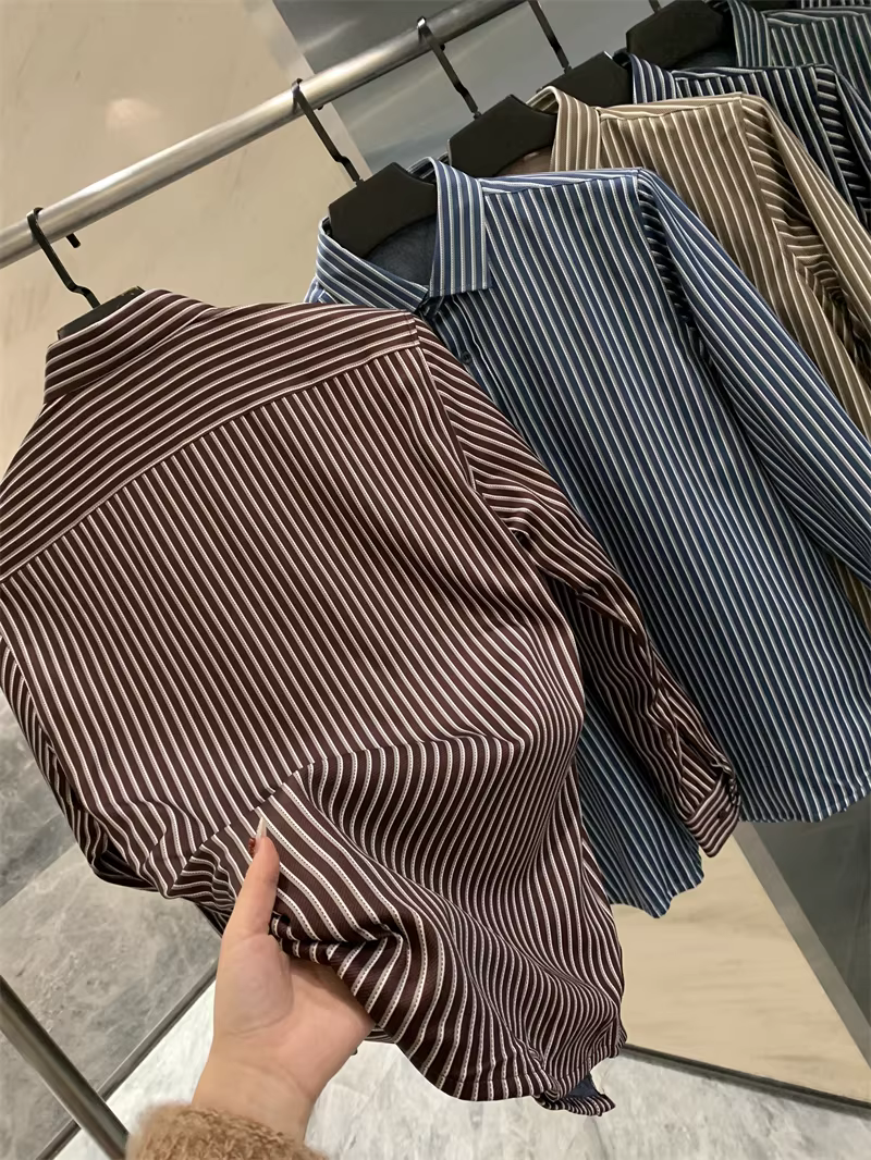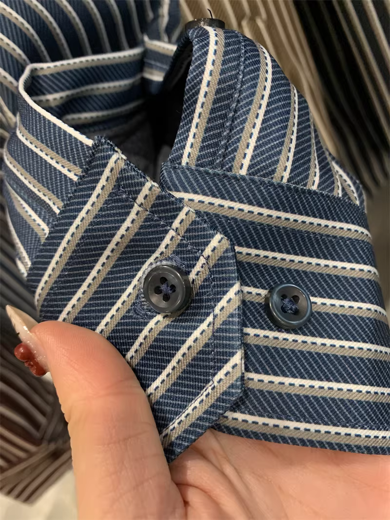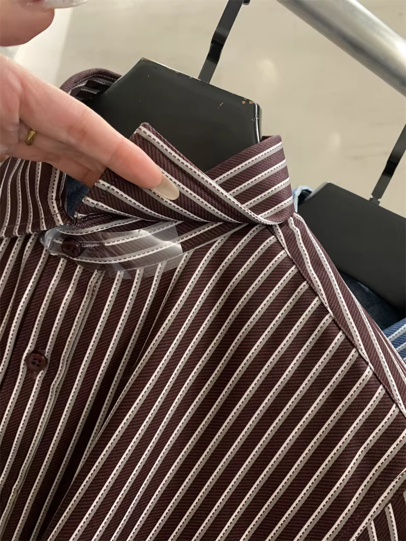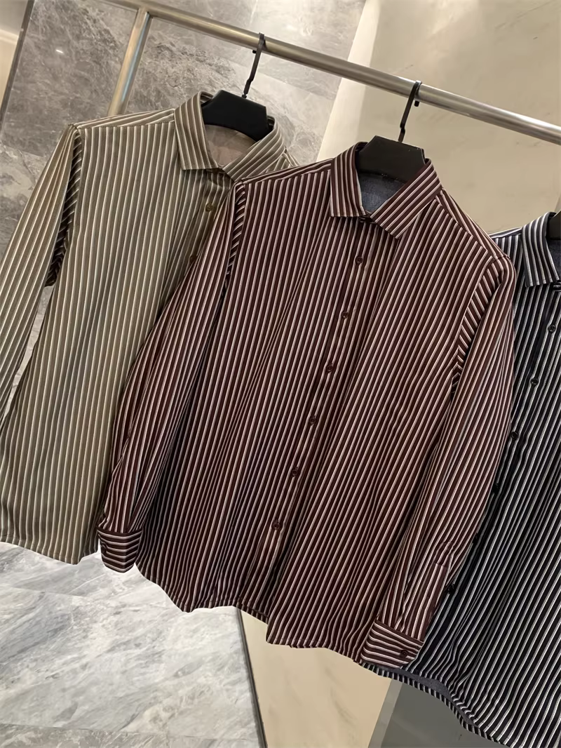 - Đơn đặt hàng của công ty Don Quixote ODM! Áo sơ mi nam dài tay dày dặn, ấm áp, kẻ sọc dọc, chất liệu len cừu.