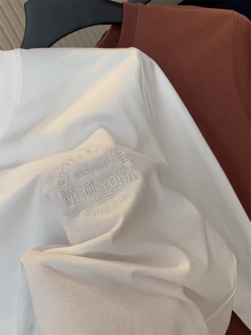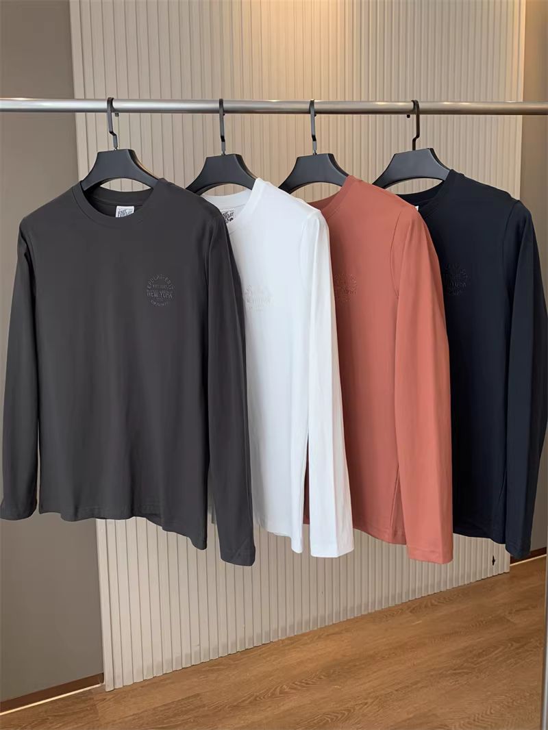 Đơn đặt hàng của công ty Don Quixote ODM! Áo thun dài tay chất liệu cotton nguyên chất, cổ tròn, co giãn, thêu, đã qua xử lý làm mềm, dùng làm lớp lót cho nam.