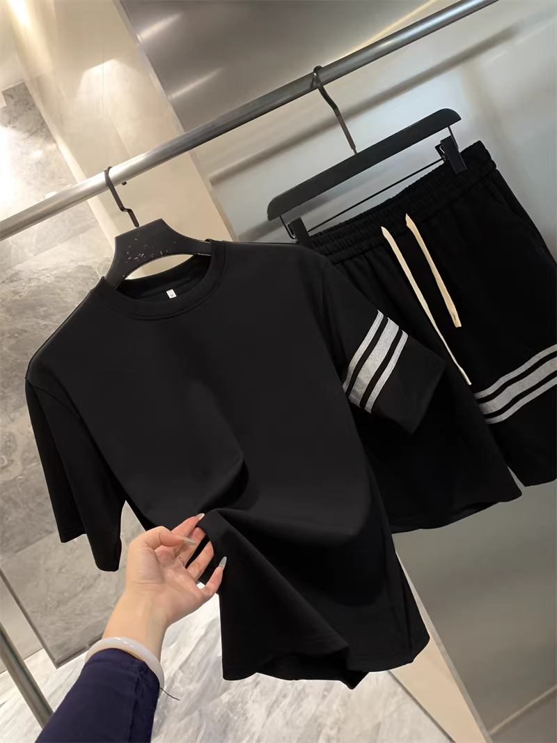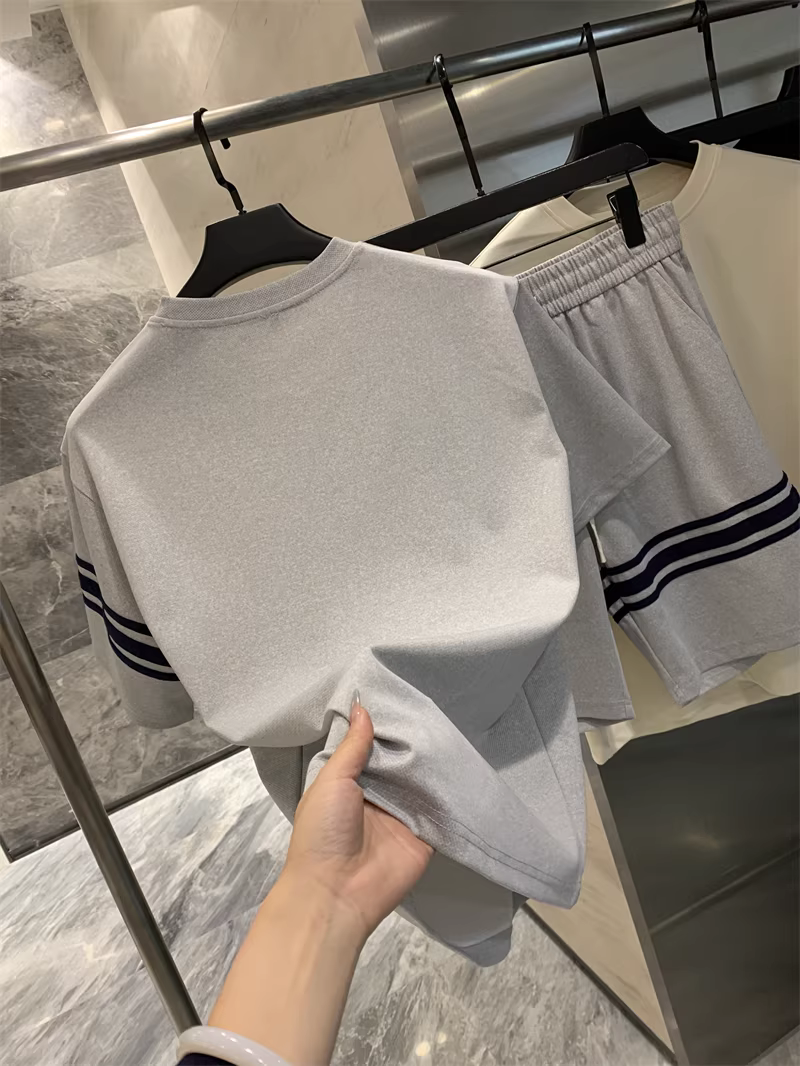 Đơn đặt hàng của công ty Don Quixote ODM! Bộ áo ngắn tay + quần đùi! Bộ đồ hai mảnh mùa hè thoáng khí, thân thiện với da, phong cách thường ngày dành cho nam.