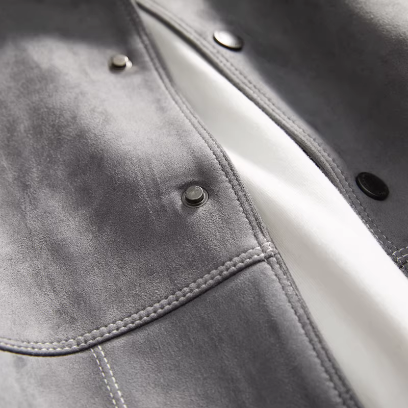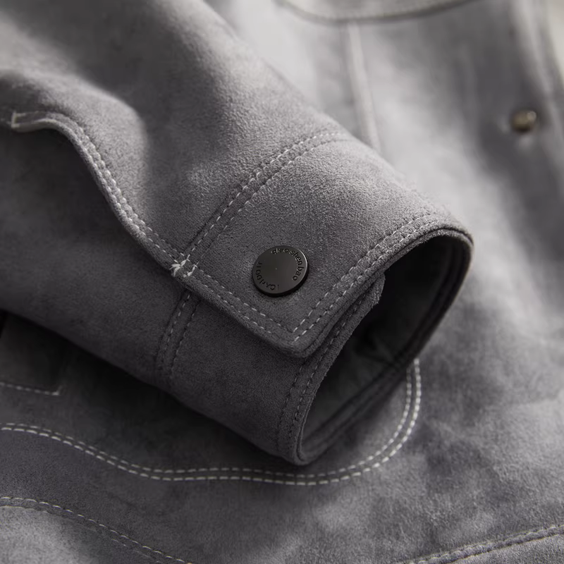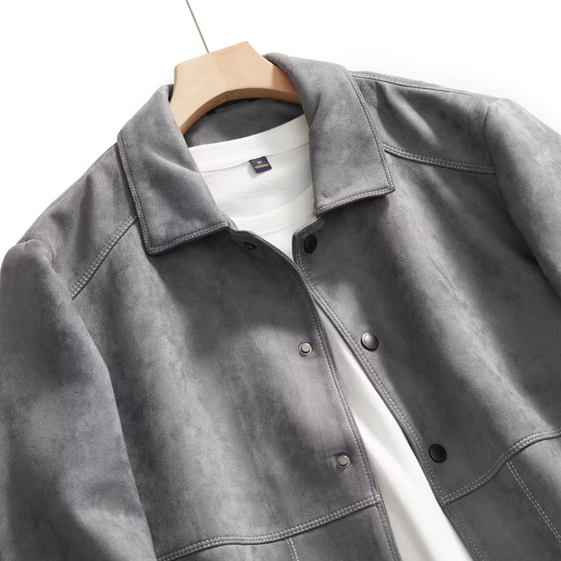 Đơn đặt hàng của công ty Don Quixote ODM! Chất liệu da lộn cao cấp! Áo khoác nam dáng thẳng, cổ trụ, phong cách thường ngày mùa xuân.