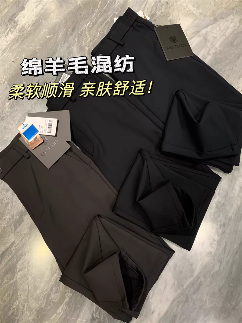 - Đơn đặt hàng của công ty Don Quixote ODM! Chất liệu len pha! Quần âu nam ống đứng đa năng, lưng thun, mùa thu đông.