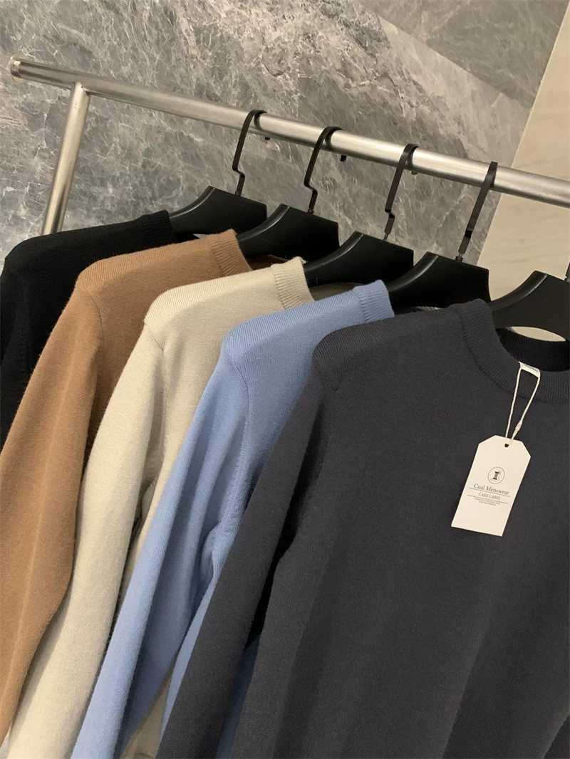 Đơn đặt hàng của công ty Don Quixote ODM! Kết hợp chất liệu! Áo len dệt kim màu trơn đa năng, phong cách thu đông dành cho nam.