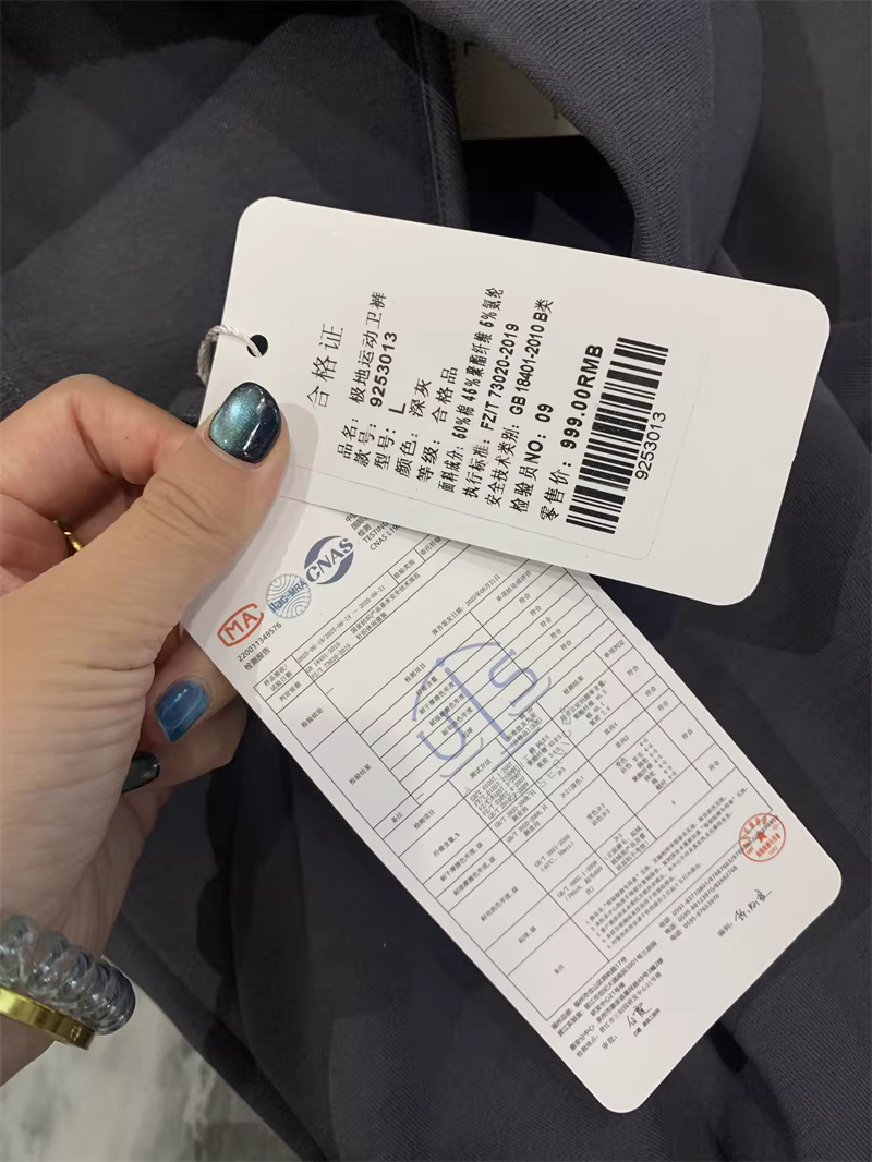 | L | 腰围77.5 | 臀围106 | 脚口围34.6 | 裤长99 |