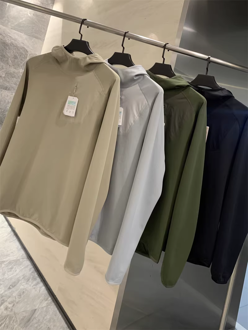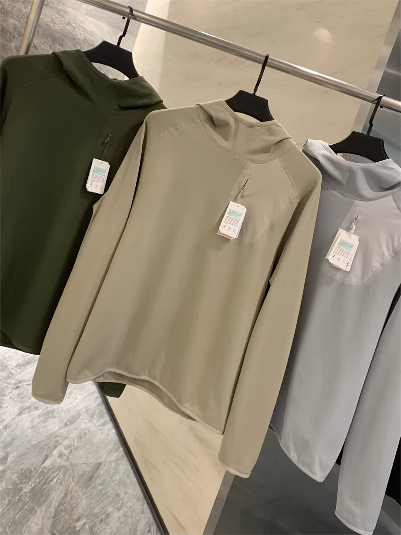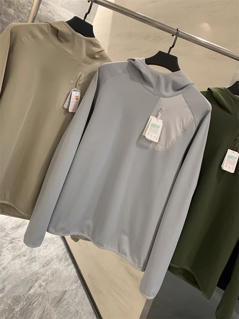 Đơn đặt hàng của công ty Don Quixote ODM! May đo 3D! Túi dán! Áo thun thể thao dài tay có mũ trùm đầu cổ cao