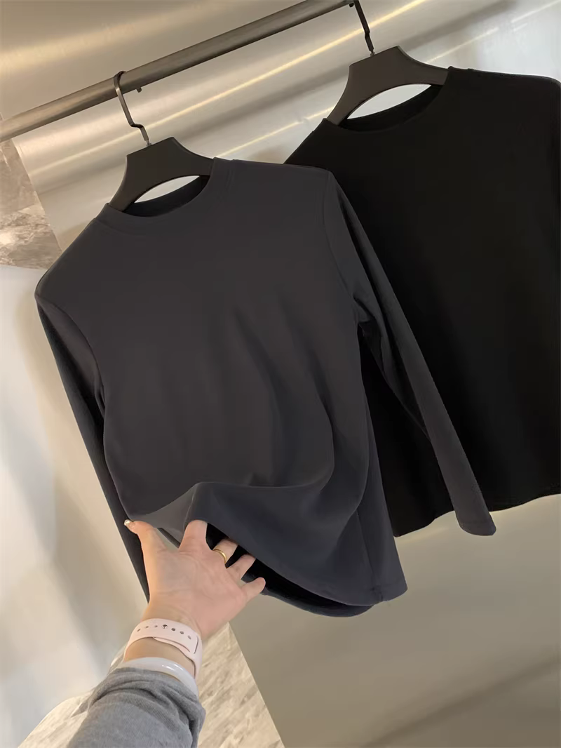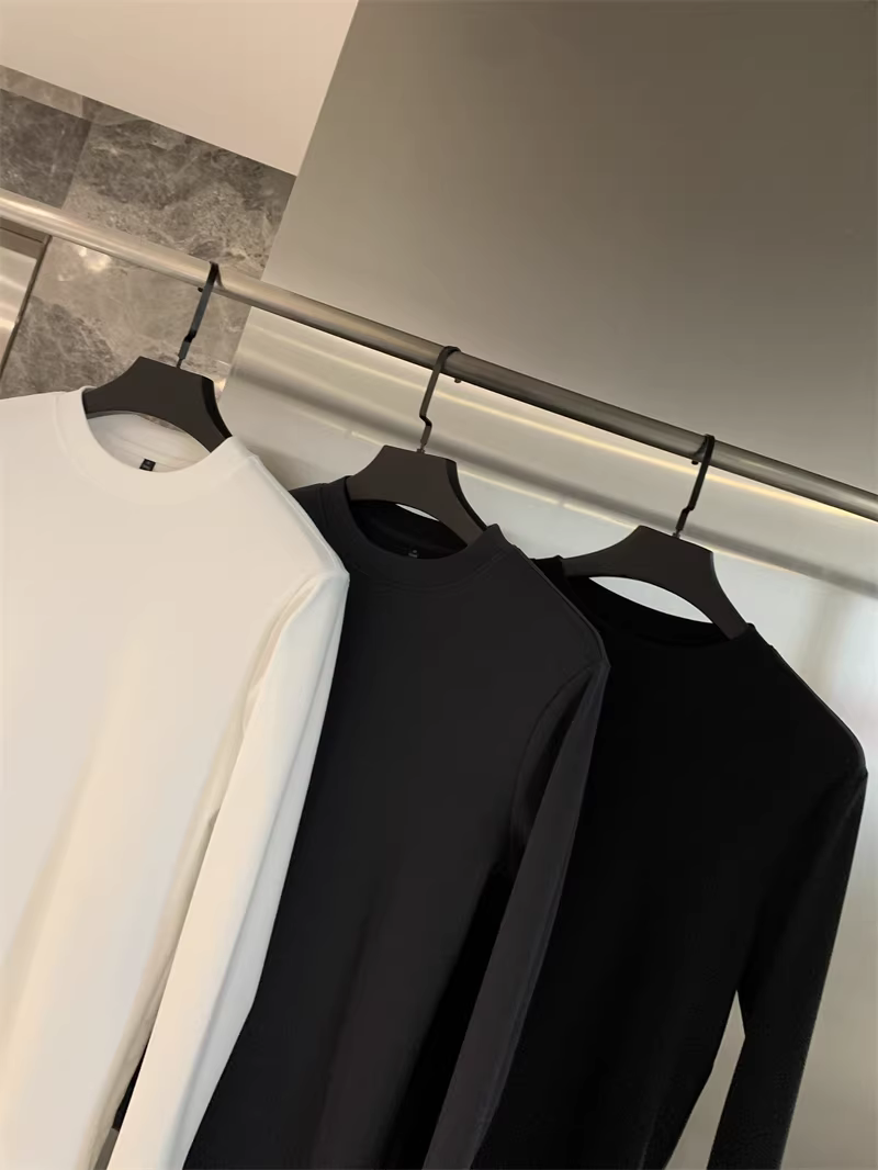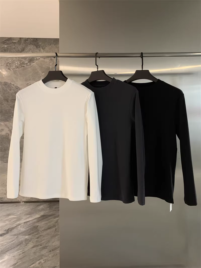 Đơn đặt hàng của công ty Don Quixote ODM! Mềm mại và thân thiện với làn da! Áo thun nam cổ tròn trơn màu co giãn mùa thu đông.