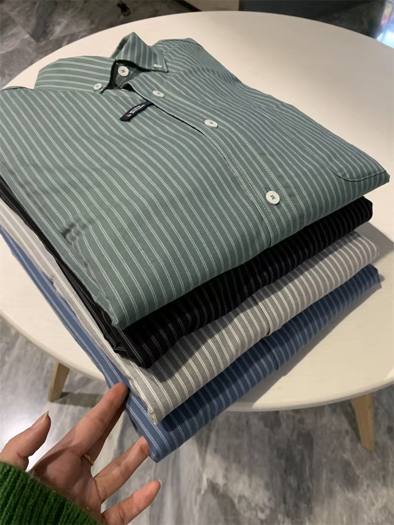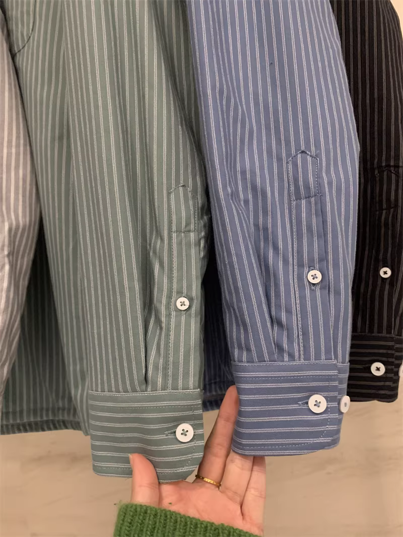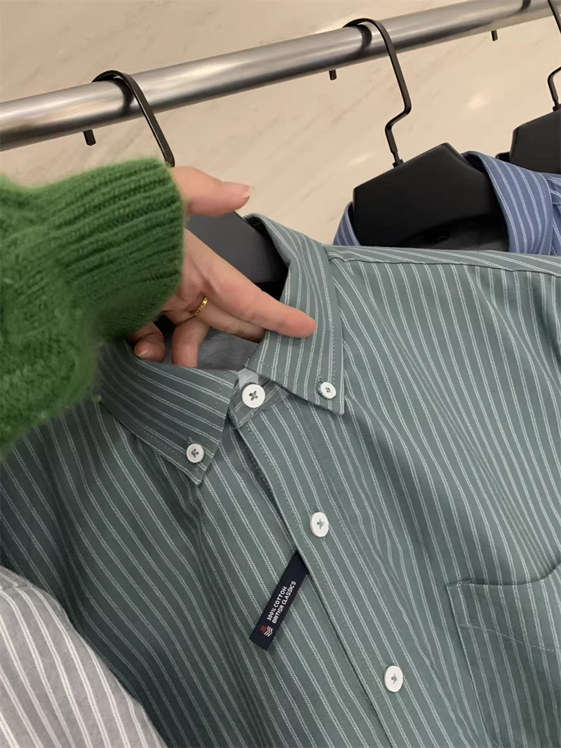 - Đơn đặt hàng của công ty Don Quixote ODM! Quần áo may sẵn đã được giặt sạch! Áo sơ mi dài tay kẻ sọc dày dặn, lót lông cừu, cổ trụ, thời trang mùa thu đông.