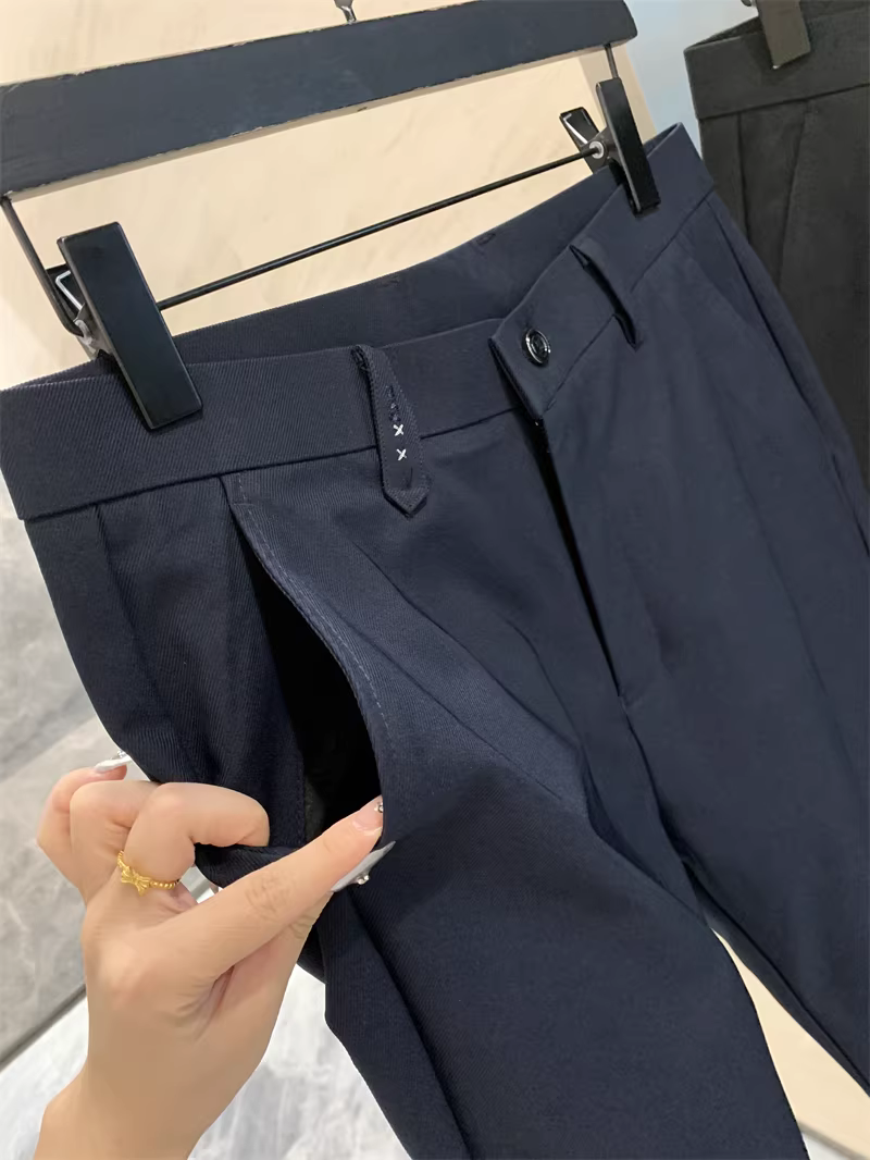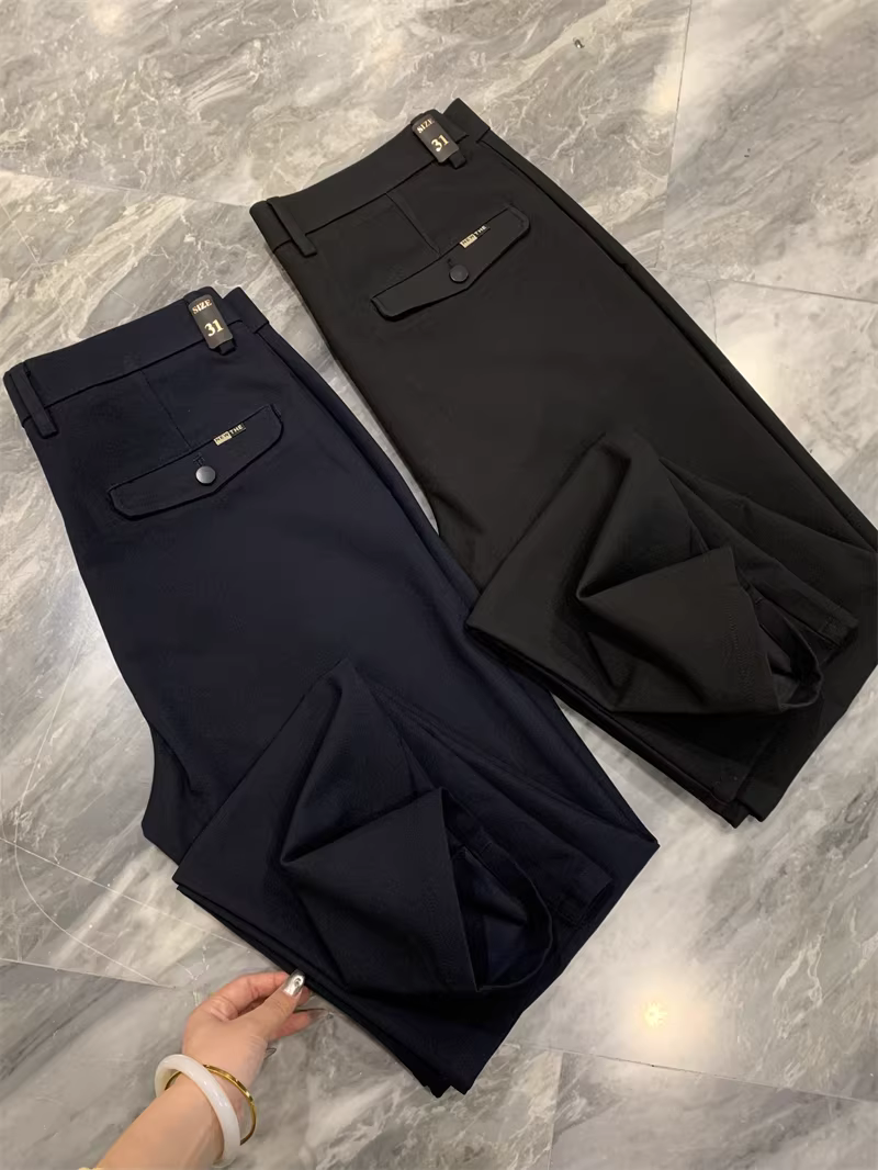 Đơn đặt hàng của công ty Don Quixote ODM! Quần vải mềm mại! Quần âu nam ống đứng chất liệu co giãn cao, thoáng khí, thích hợp cho mùa xuân và mùa thu.