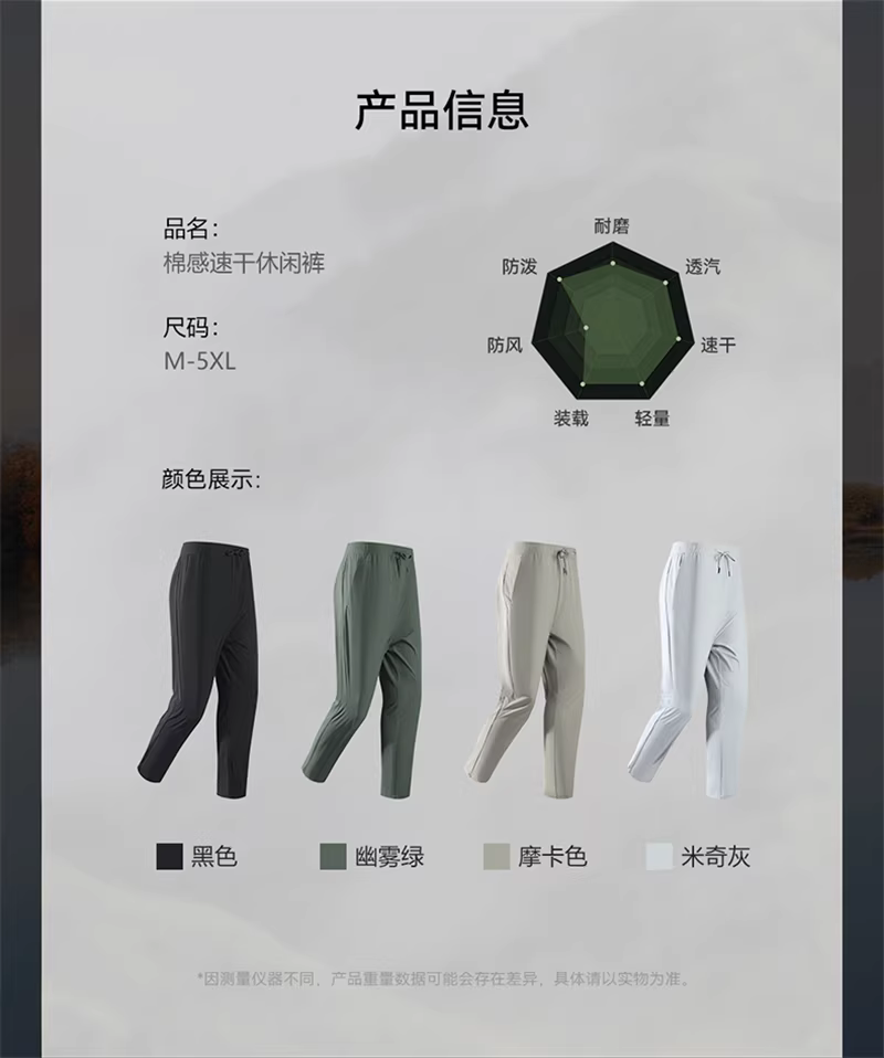 | XL | 腰围80.5 | 臀围108 | 脚口围35 | 裤长99 |