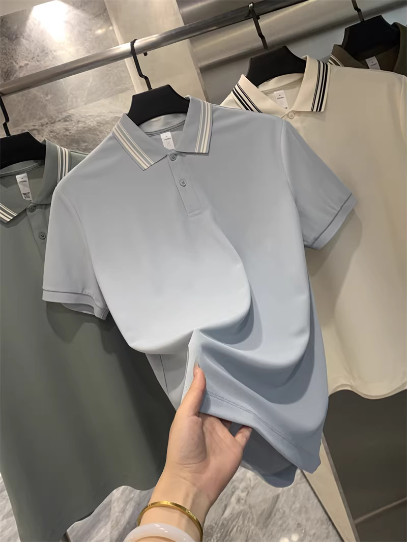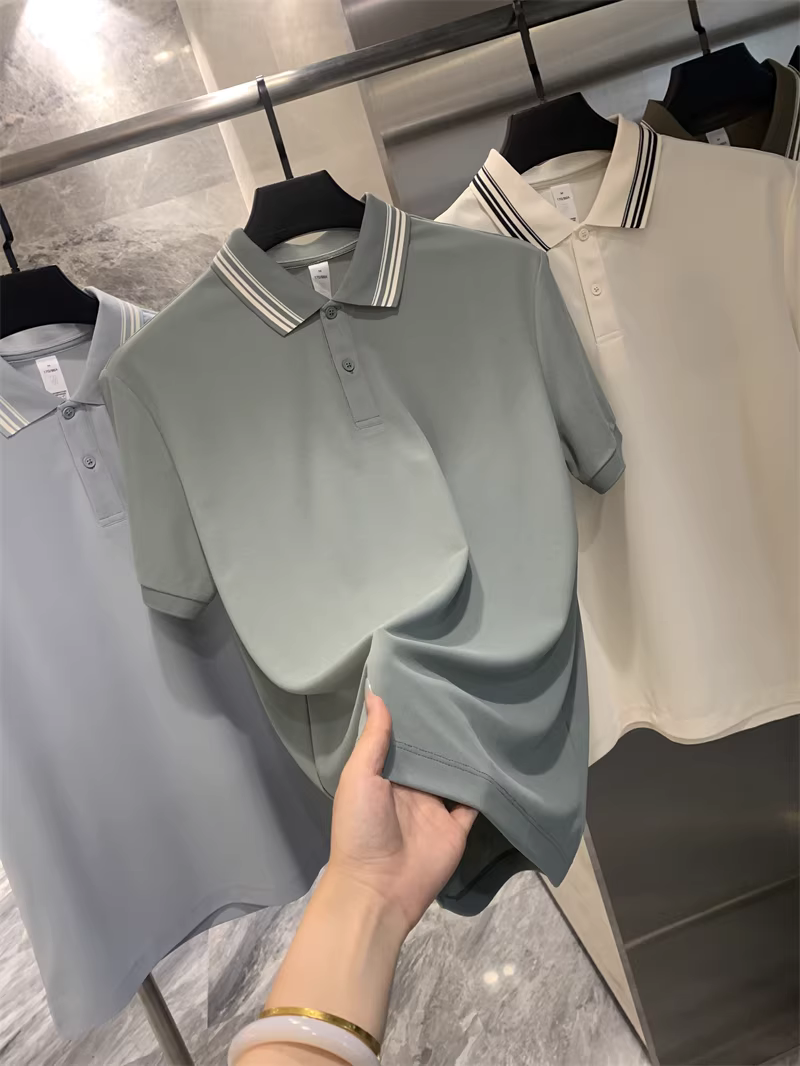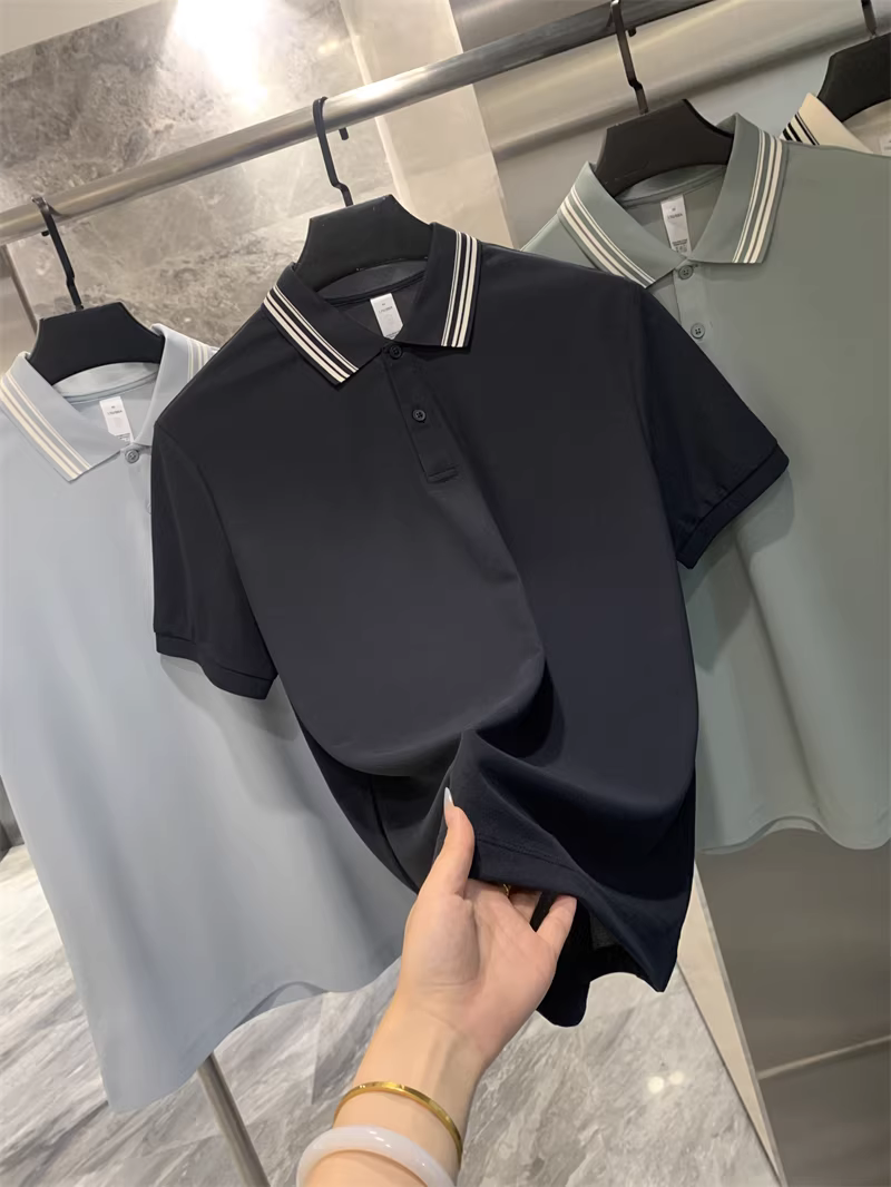 - Đơn đặt hàng của công ty Don Quixote ODM! Vải pique liền mạch! Áo polo nam mùa hè chất liệu thoáng mát, màu trơn, đa năng, tay ngắn.