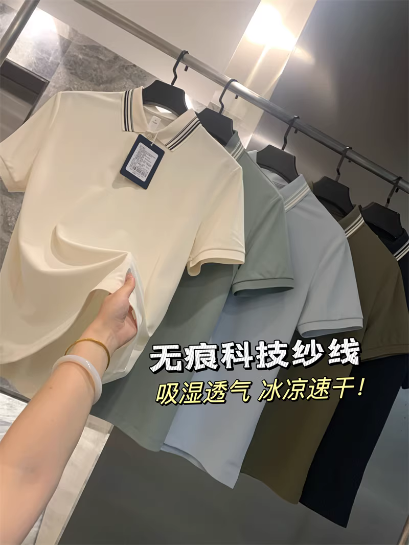 Đơn đặt hàng của công ty Don Quixote ODM! Vải pique liền mạch! Áo polo nam mùa hè chất liệu thoáng mát, màu trơn, đa năng, tay ngắn.