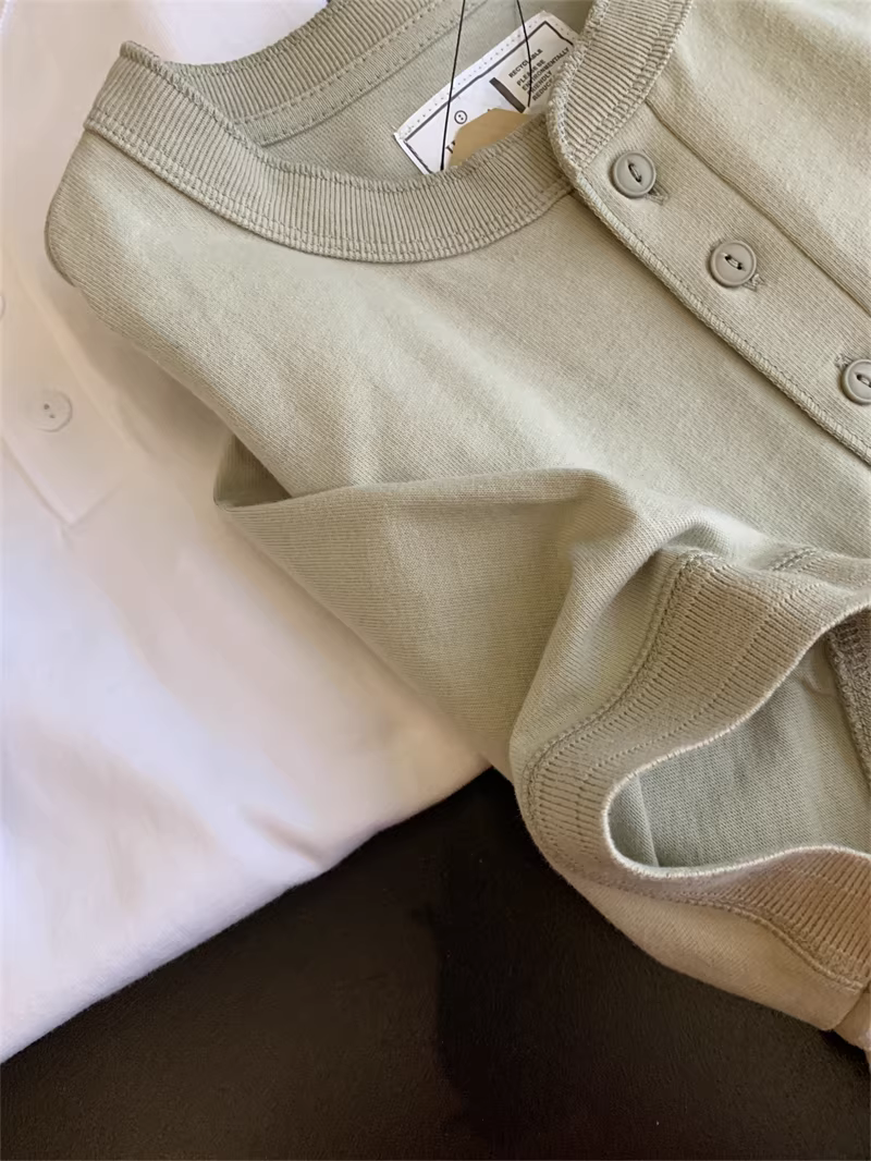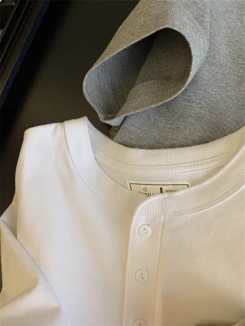 - Đơn đặt hàng của Don Quixote Company! Áo thun ngắn tay màu trơn, chất liệu cotton nguyên chất, cổ Henry, dáng rộng và đa năng, kiểu dáng mùa hè mới.