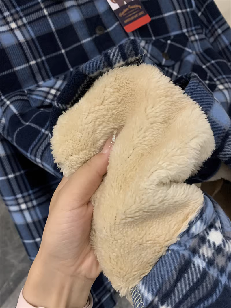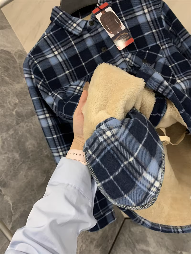 Đơn đặt hàng Don Quixote tại Bắc Mỹ! Áo khoác kẻ ca rô ấm áp, lót lông cừu và dày dặn! Áo khoác len cừu ấm áp, kiểu dáng thường ngày.